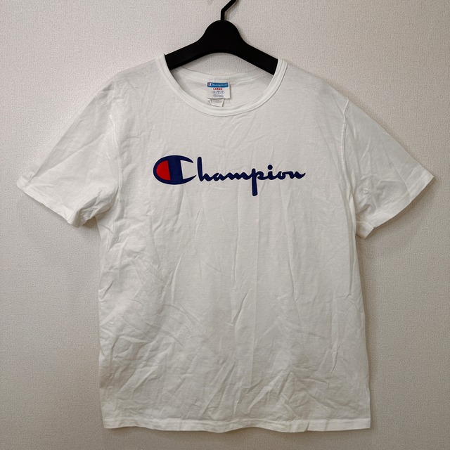 Champion ビッグロゴ Tシャツ ホワイト Lサイズ 日本XL相当 半袖 白 刺繍ロゴ