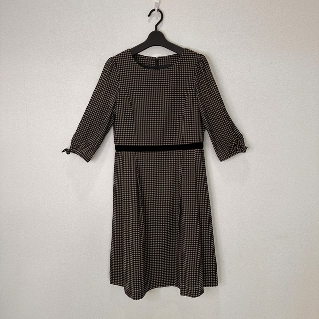 管理番号:Y11-023#てまいらずアパレル商品一覧 【商品名】 scrapple from the apple グレンチェック柄 ワンピース 9号 Mサイズ相当 【商品概要】 scrapple from the apple の、クラシカルなグレンチェック柄のワンピースです。 ウエスト部分のベロア調の切り替えがアクセントになっており、七分袖とAラインのシルエットが上品な印象です。 お出かけやオフィスカジュアルなど、様々なシーンで活躍します。 裏地付きで、素材表示によるとフロッキープリント加工が施されています( 【ブランド名】 scrapple from the apple 【サイズ】 9号 (Mサイズ相当) 【寸法(cm)】 着丈: 86 身幅: 43×2 肩幅: 34 袖丈: 38 袖口: 10 裾幅: 68 ※素人の採寸のため、誤差が生じる場合がございます。 【注意事項】 シミ/汚れ: なし 破損: なし 商品タグ: なし ※状態は写真を見てご判断ください。 目立った傷や汚れはありませんが、中古品にご理解いただける方のみご購入をお願いいたします。 色移り・色落ち、フロッキープリントは永久的なものではない旨がタグに記載されていますので、お取り扱いにはご注意ください。 黒とベージュのチェック柄、七分袖のひざ丈ワンピース。 - 色: 黒とベージュのチェック柄 - 袖のスタイル: 七分袖 - ウエストデザイン: 黒のリボンベルト付き - スカートの長さ: ひざ丈 - 素材: 柔らかい生地 - 袖のディテール: ゴム入りの袖口 ご覧いただきありがとうございます。