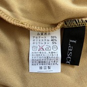 落ち着いたマスタードイエローのようなカラーで、シンプルながらも上品な雰囲気があります。全体的に細かいリブ編み(またはリブ調の織り)になっており、伸縮性のある素材(ポリウレタン5%)が含まれているため、着心地が良いです。