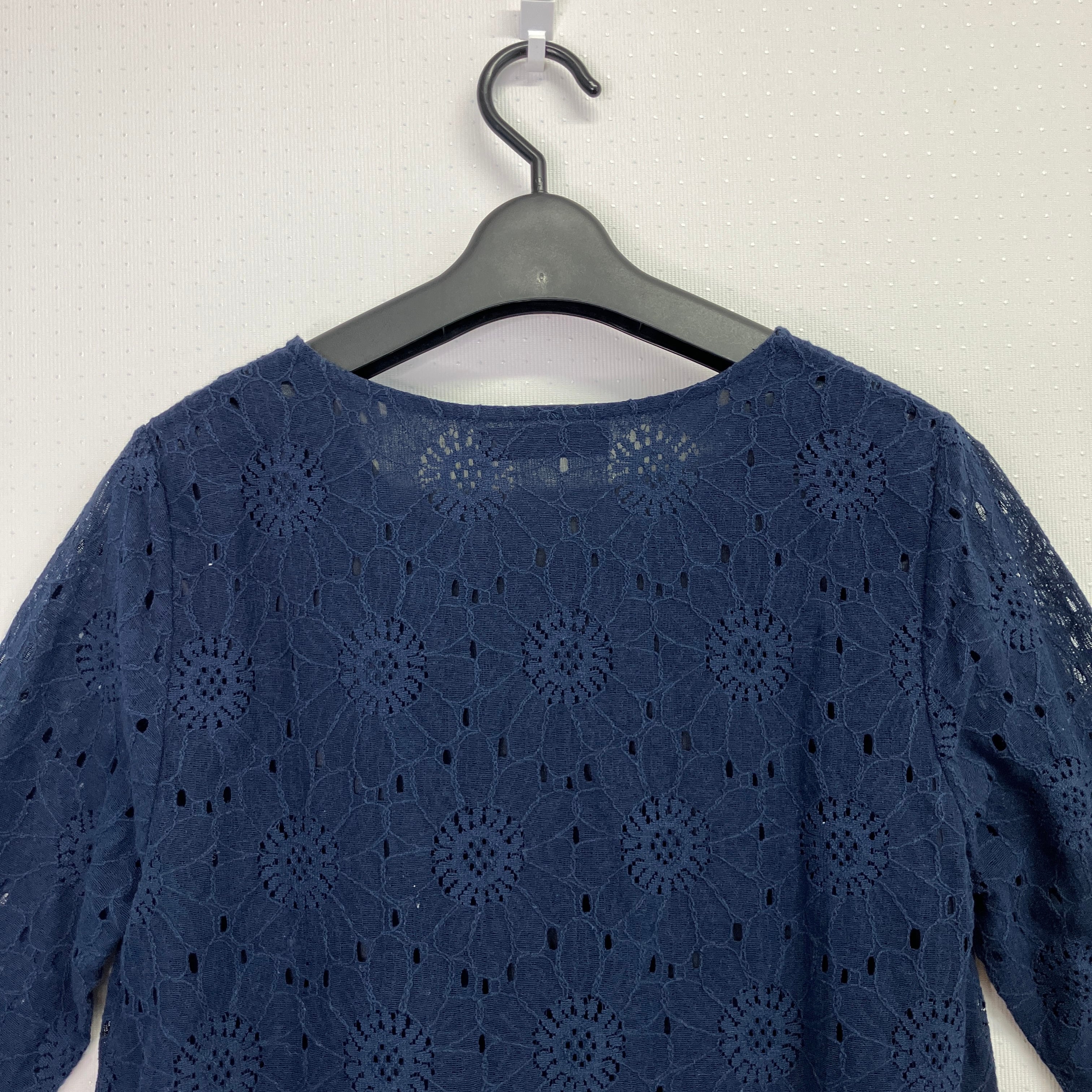 Lunaria 総レース ビジューネック 7分袖 チュニック/ブラウス 濃紺 M