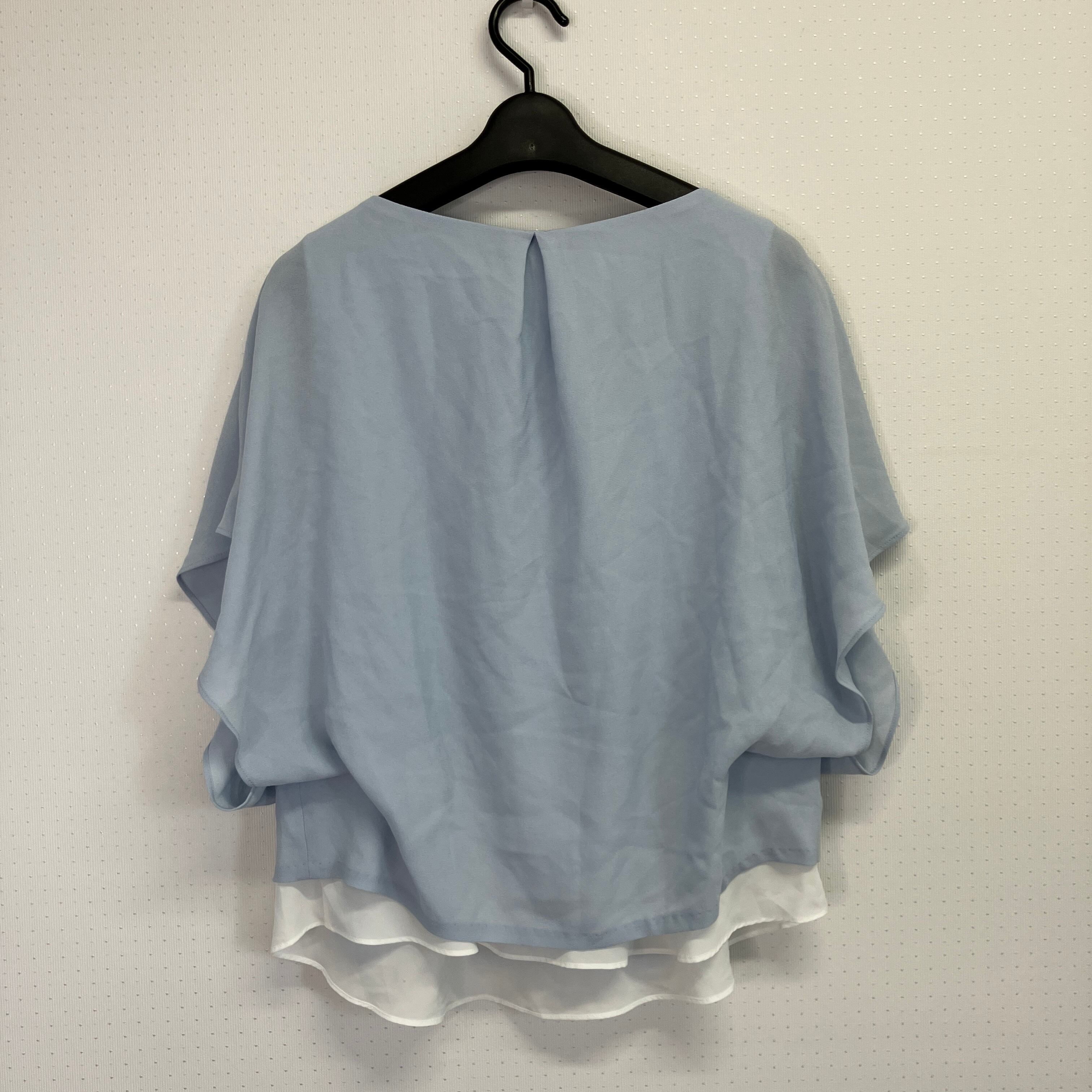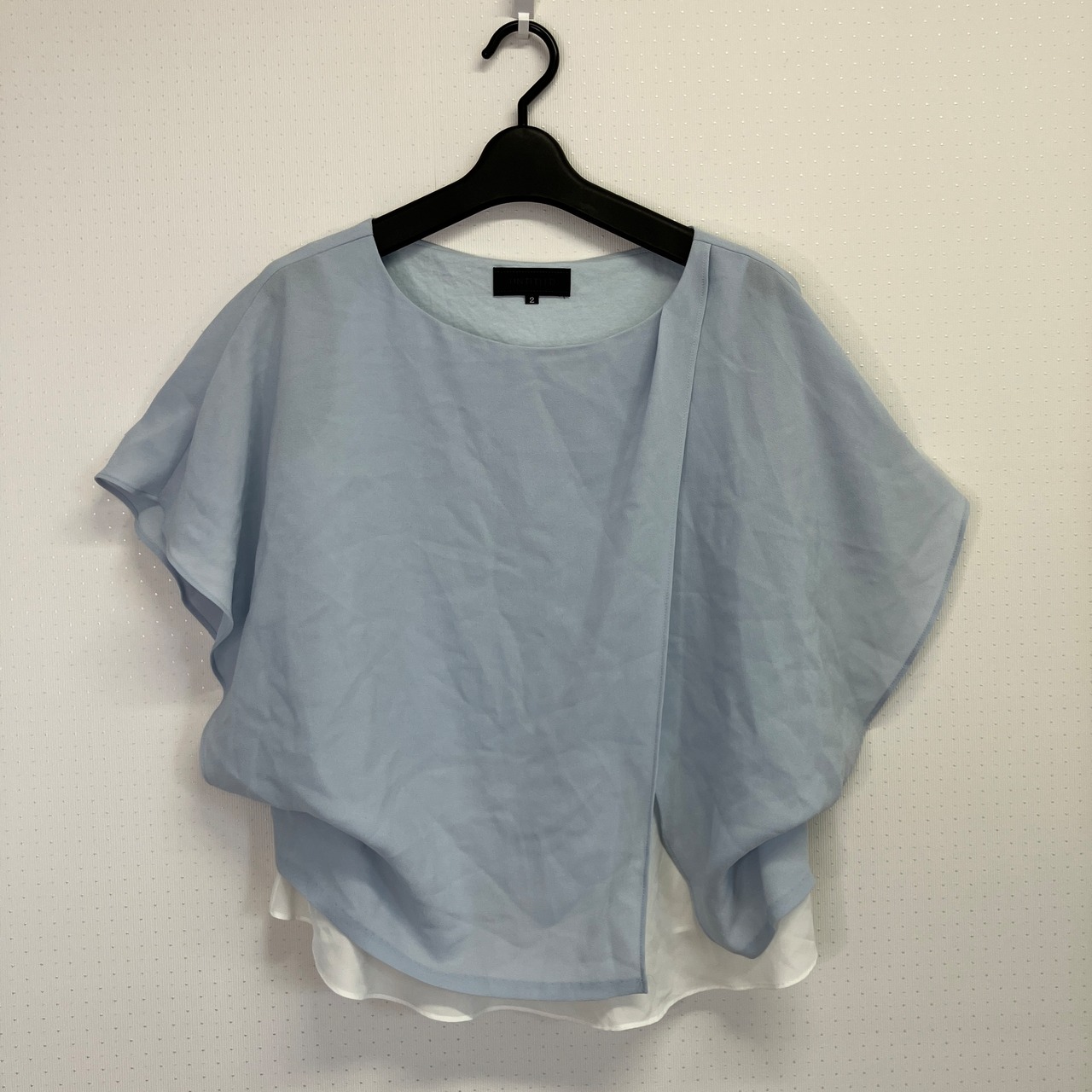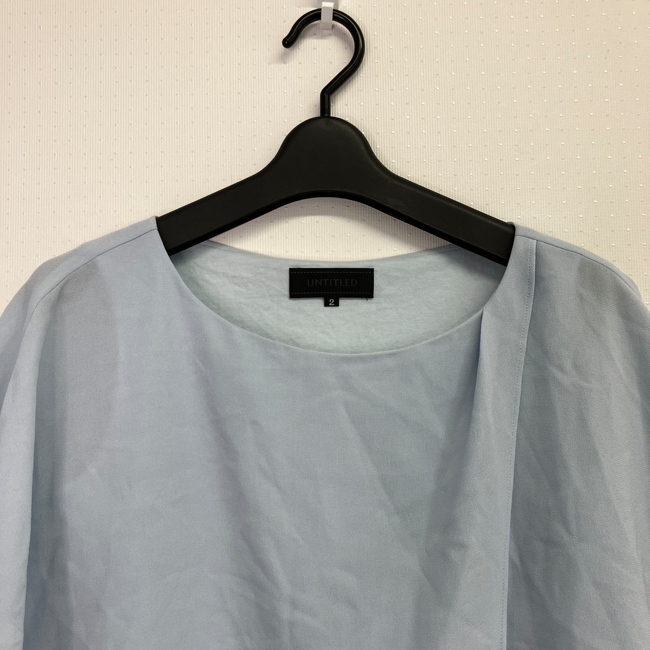 UNTITLED (アンタイトル) ドレープデザイン ドルマンスリーブブラウス 水色x白 サイズ2