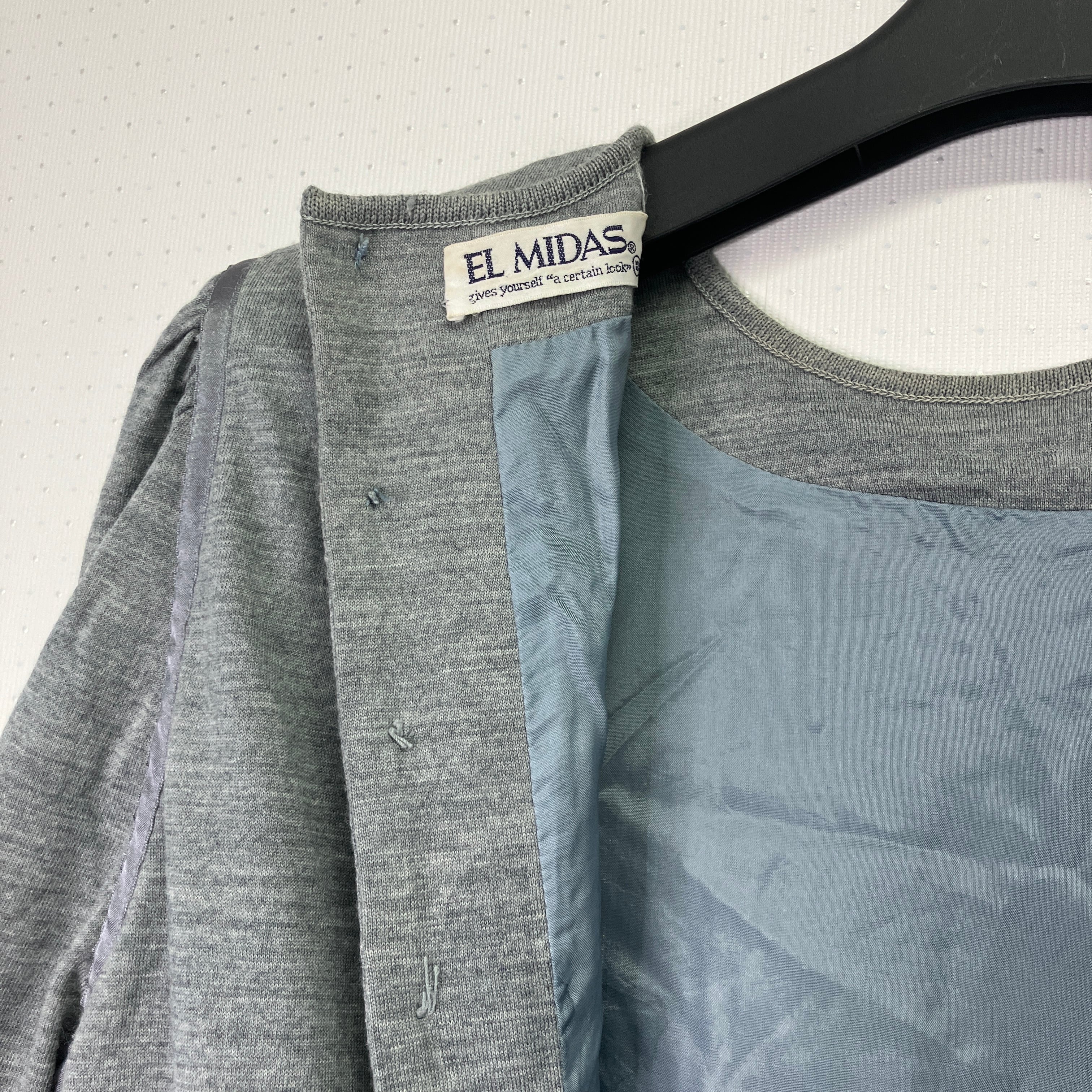 ※状態は写真を見てご判断ください。EL MIDASのグレーのカットソーワンピース、ボタン付きでスリットあり。