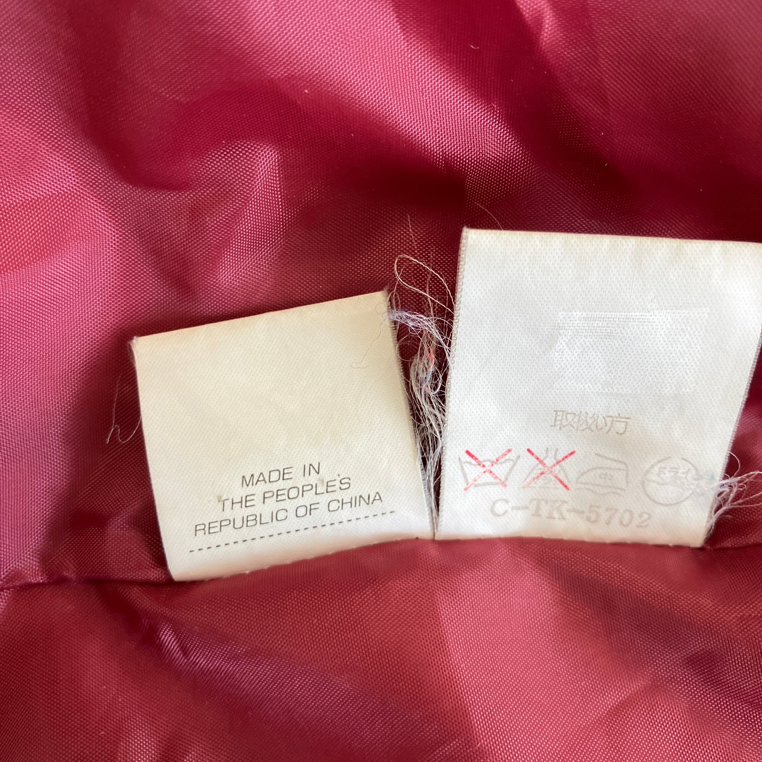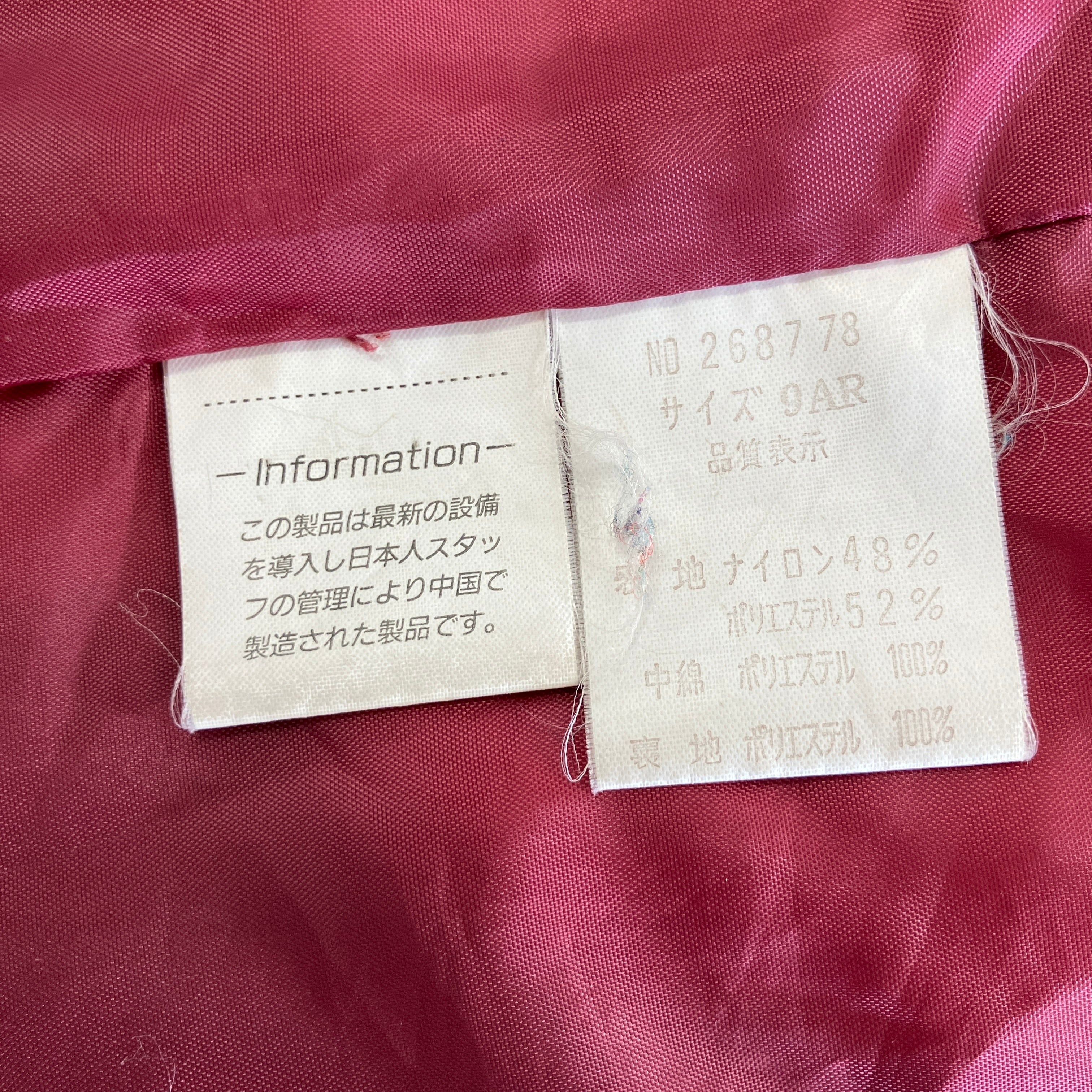 品質表示:表地はナイロン48%、ポリエステル52%、中綿と裏地はポリエステル100%。
