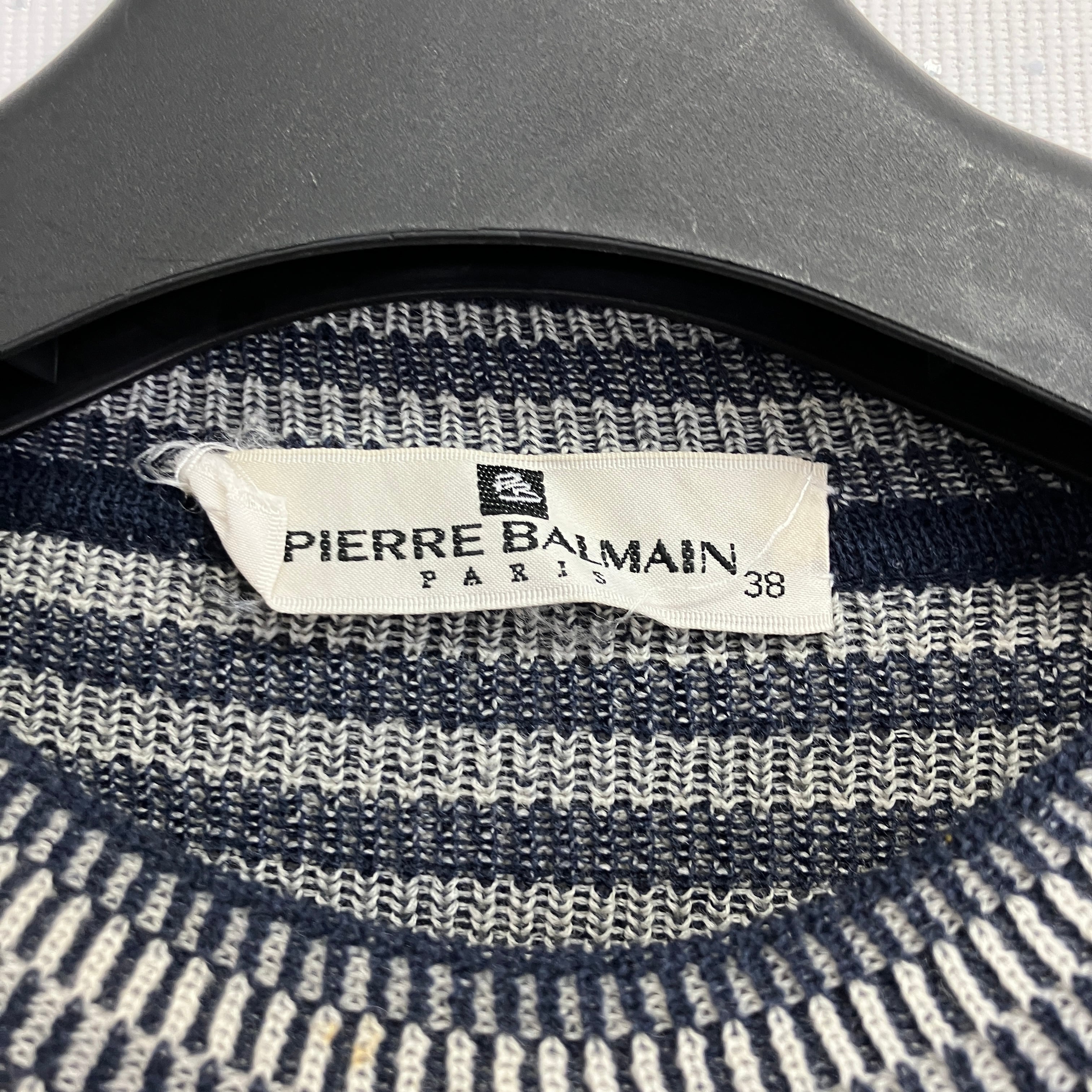 PIERRE BALMAIN (ピエール バルマン) 半袖ニットプルオーバー 38サイズ ボーダー 肩パッド