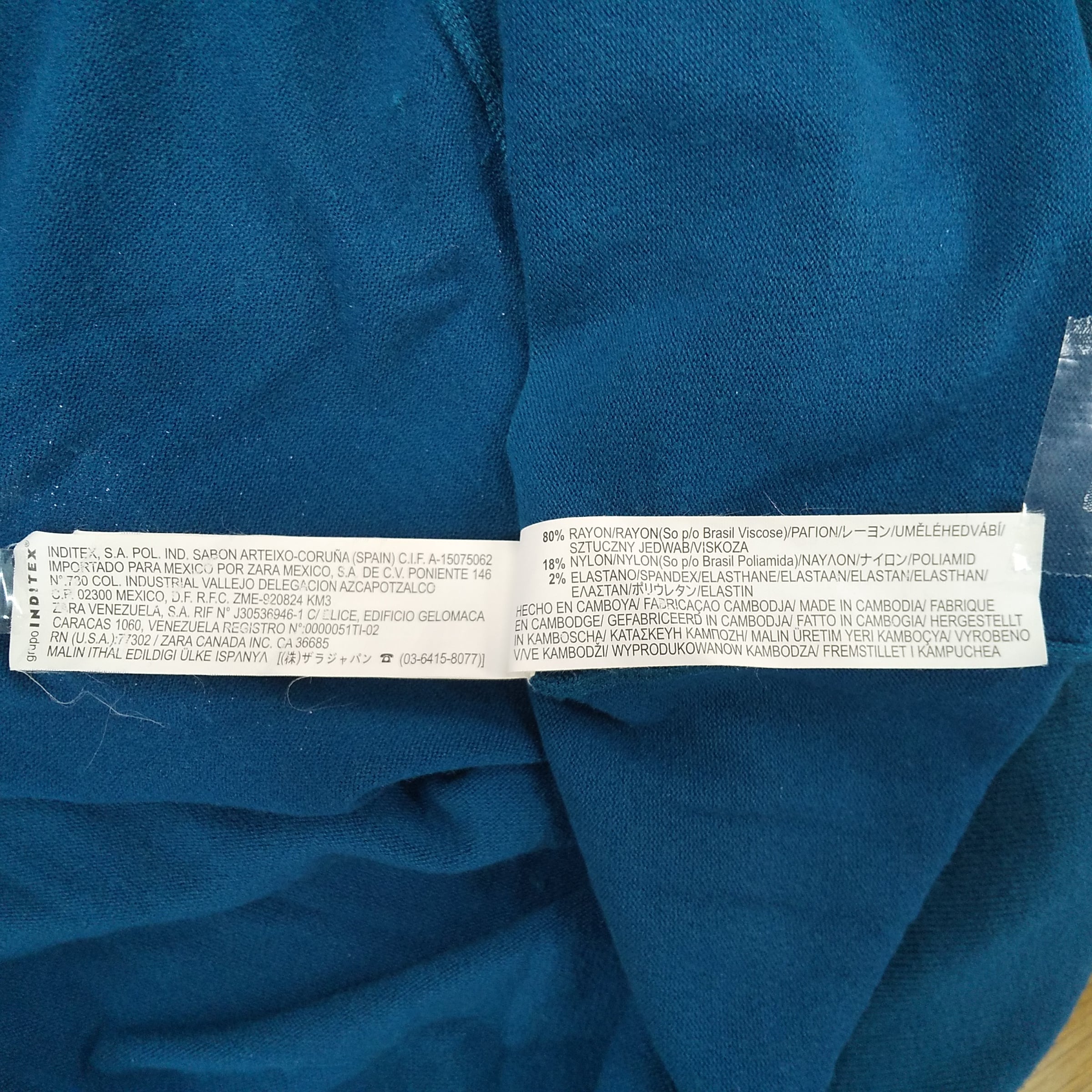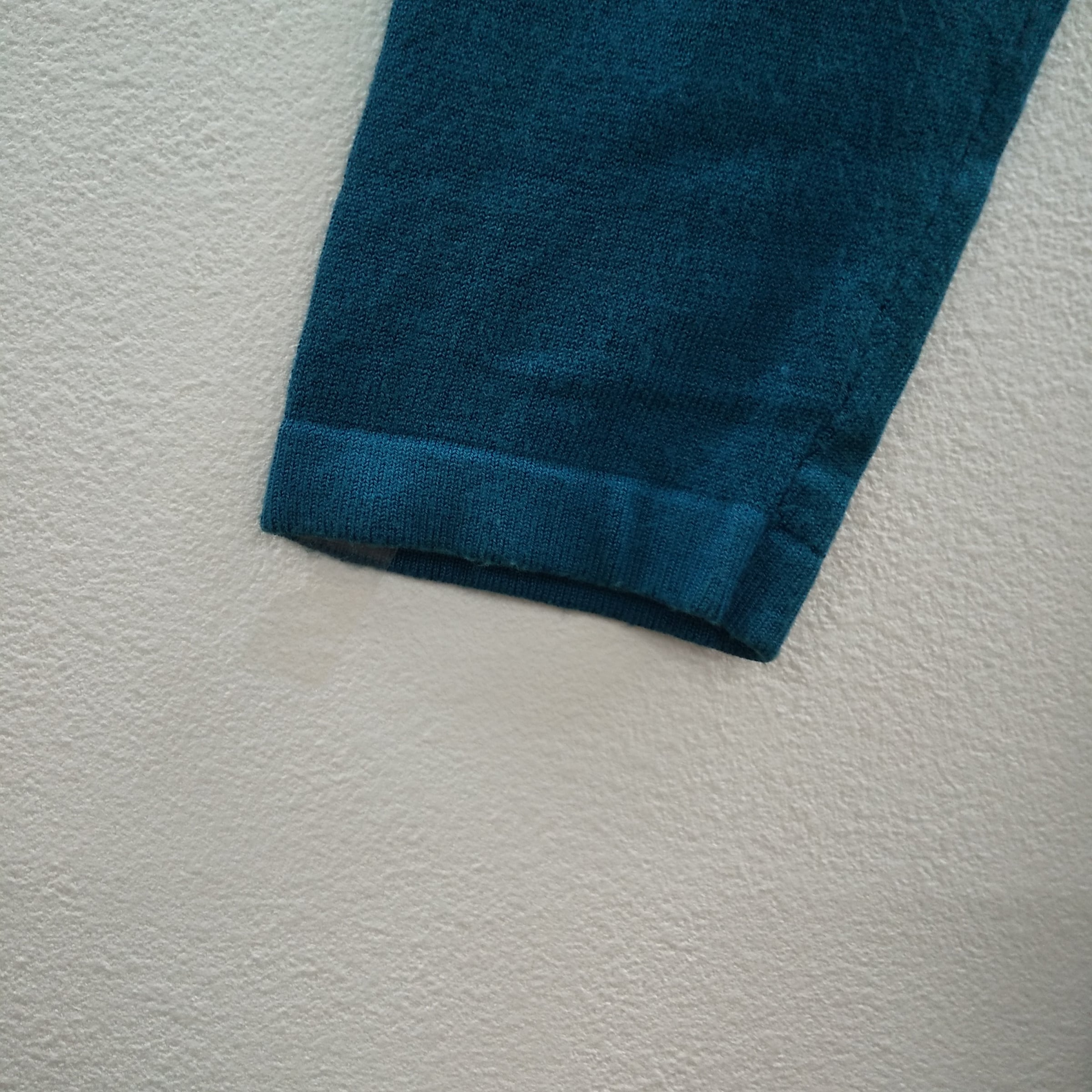 ZARA(ザラ)のニットワンピース。美しいターコイズブルーが目を引く一枚で、柔らかく伸縮性のあるレーヨンベースのニット素材(レーヨン80%、ナイロン18%、スパンデックス2%)を使用しています。しなやかな落ち感があり、体のラインを拾いすぎず、シルエットを美しく見せてくれるデザインです。
