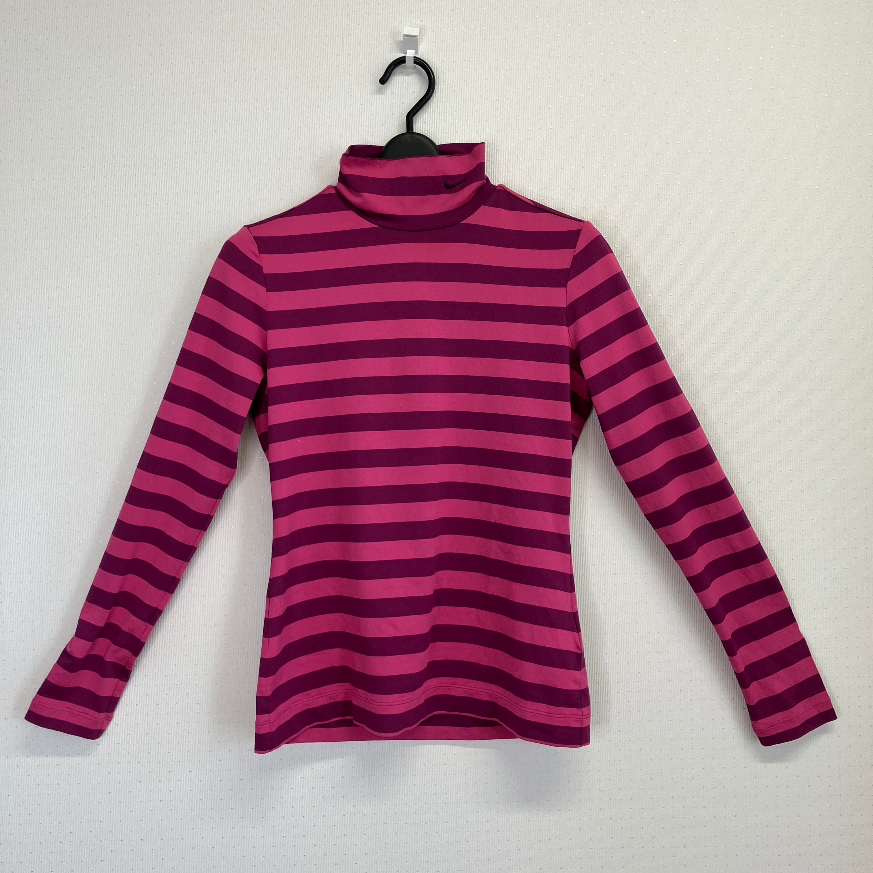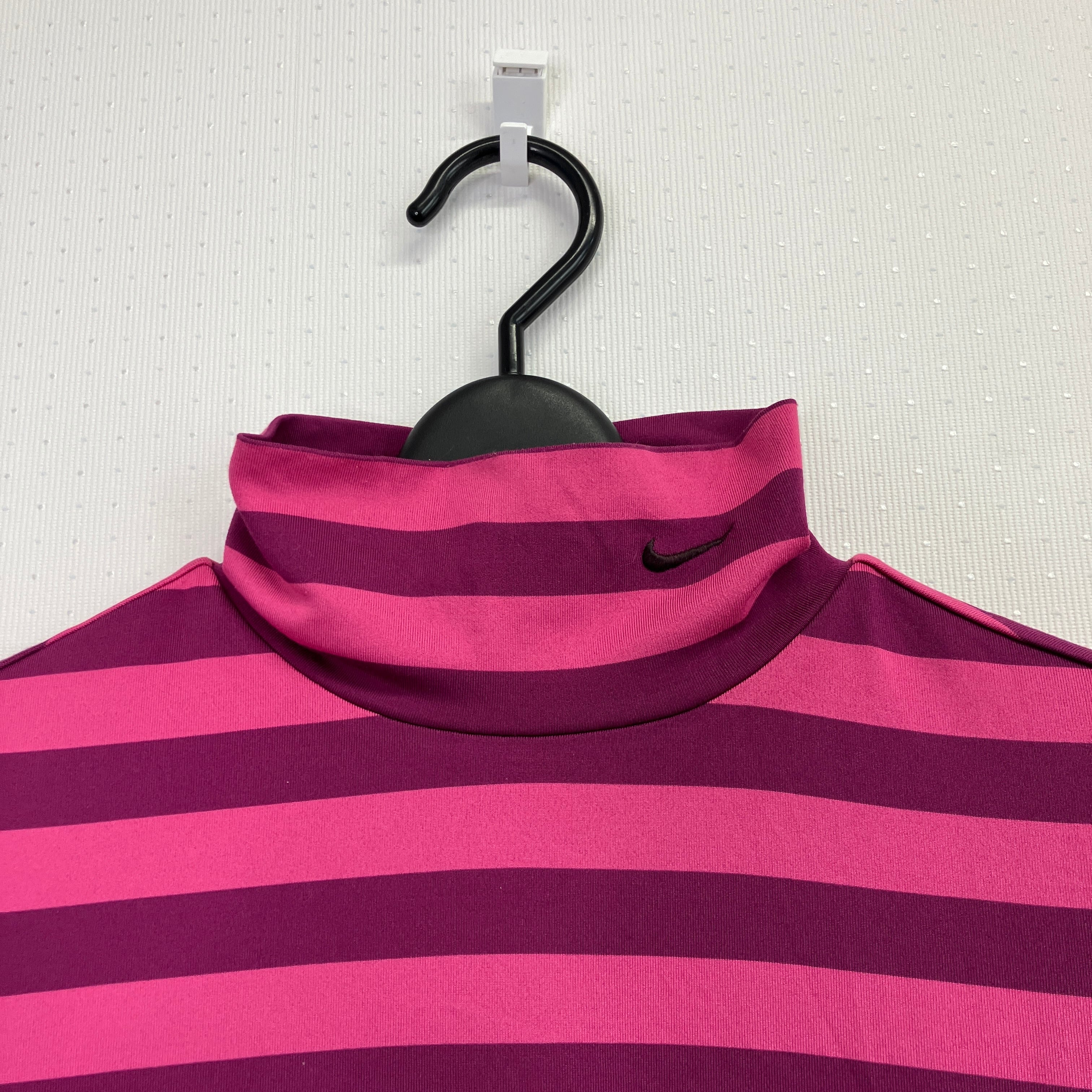 ナイキゴルフのDRI-FIT素材を使用した、ボーダー柄の長袖タートルネック(またはハイネック)シャツです。