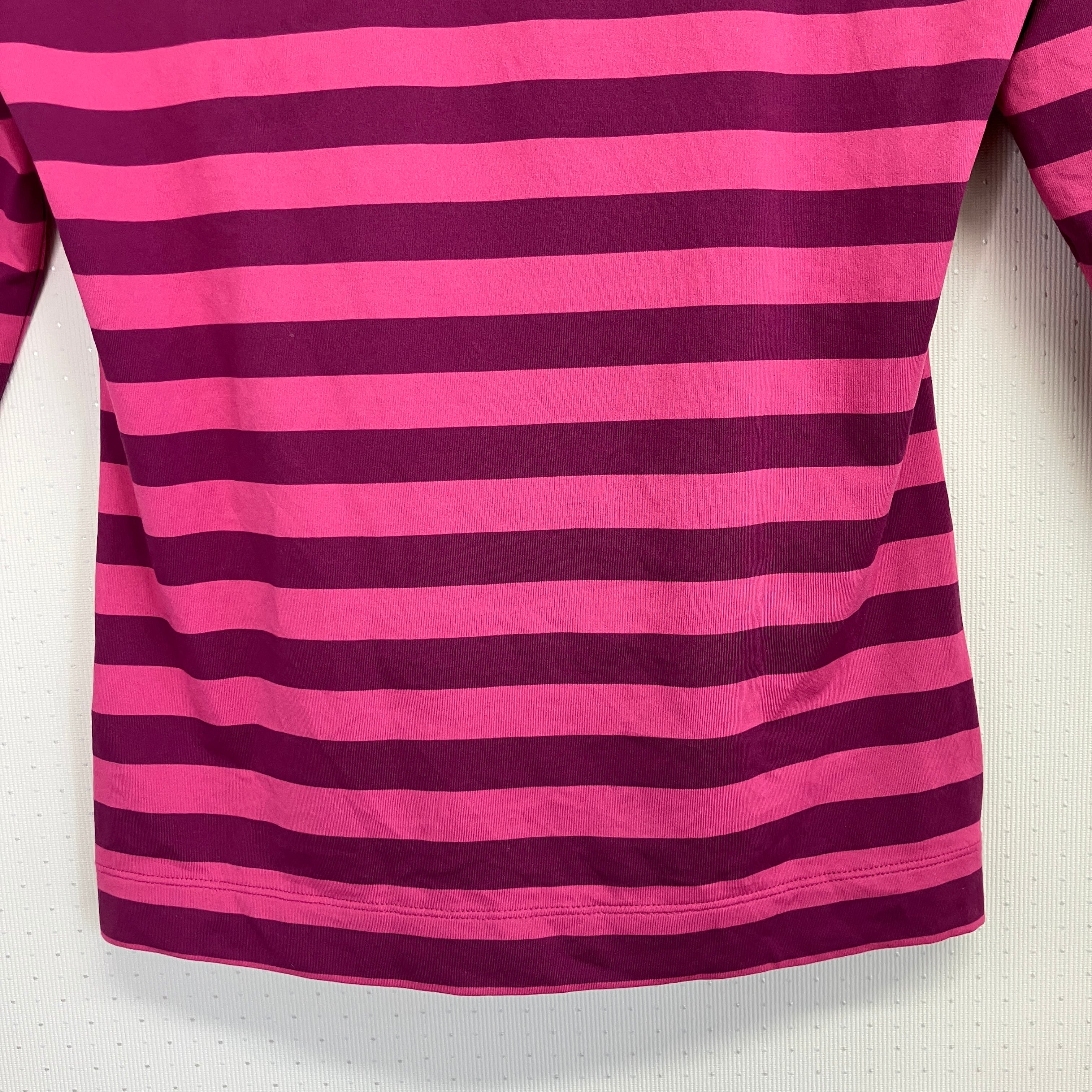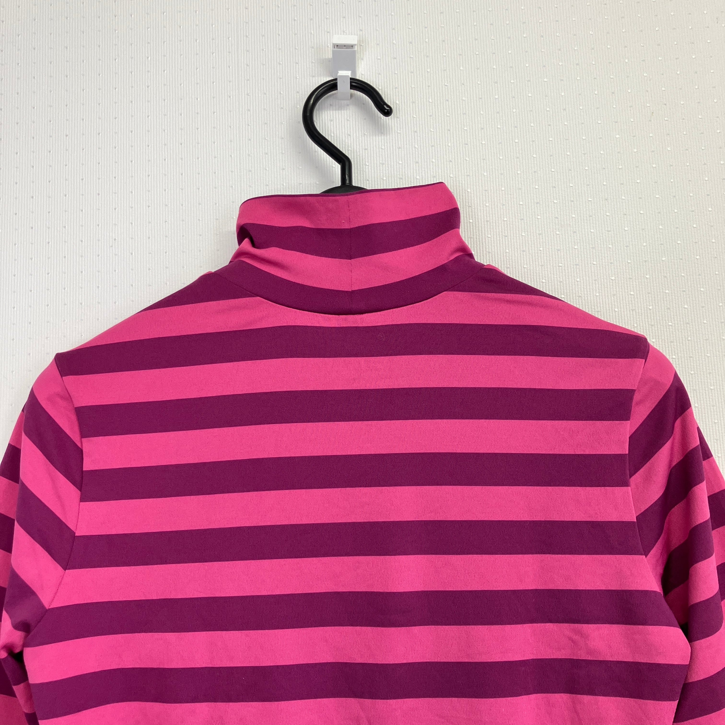 鮮やかなピンクと濃いピンク(パープル系)のボーダーで、ゴルフウェアとしてはもちろん、ランニングやトレーニングなどのスポーツシーン、普段使いのインナーとしても活躍します。