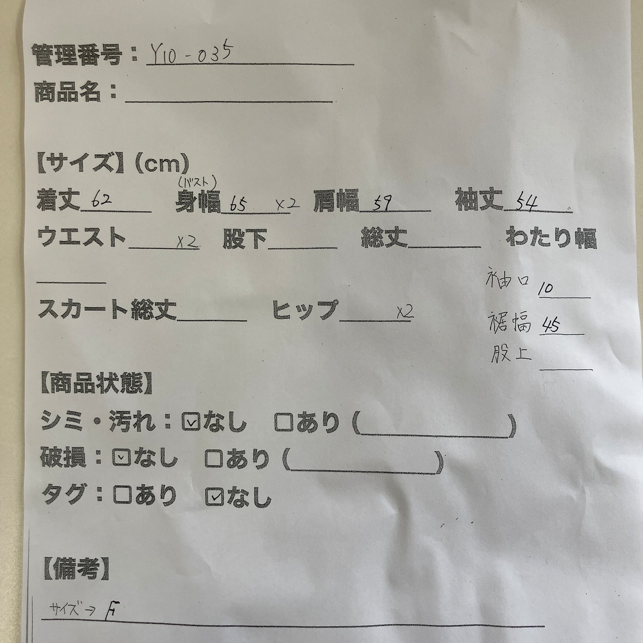 管理番号:Y10-035#てまいらずアパレル商品一覧