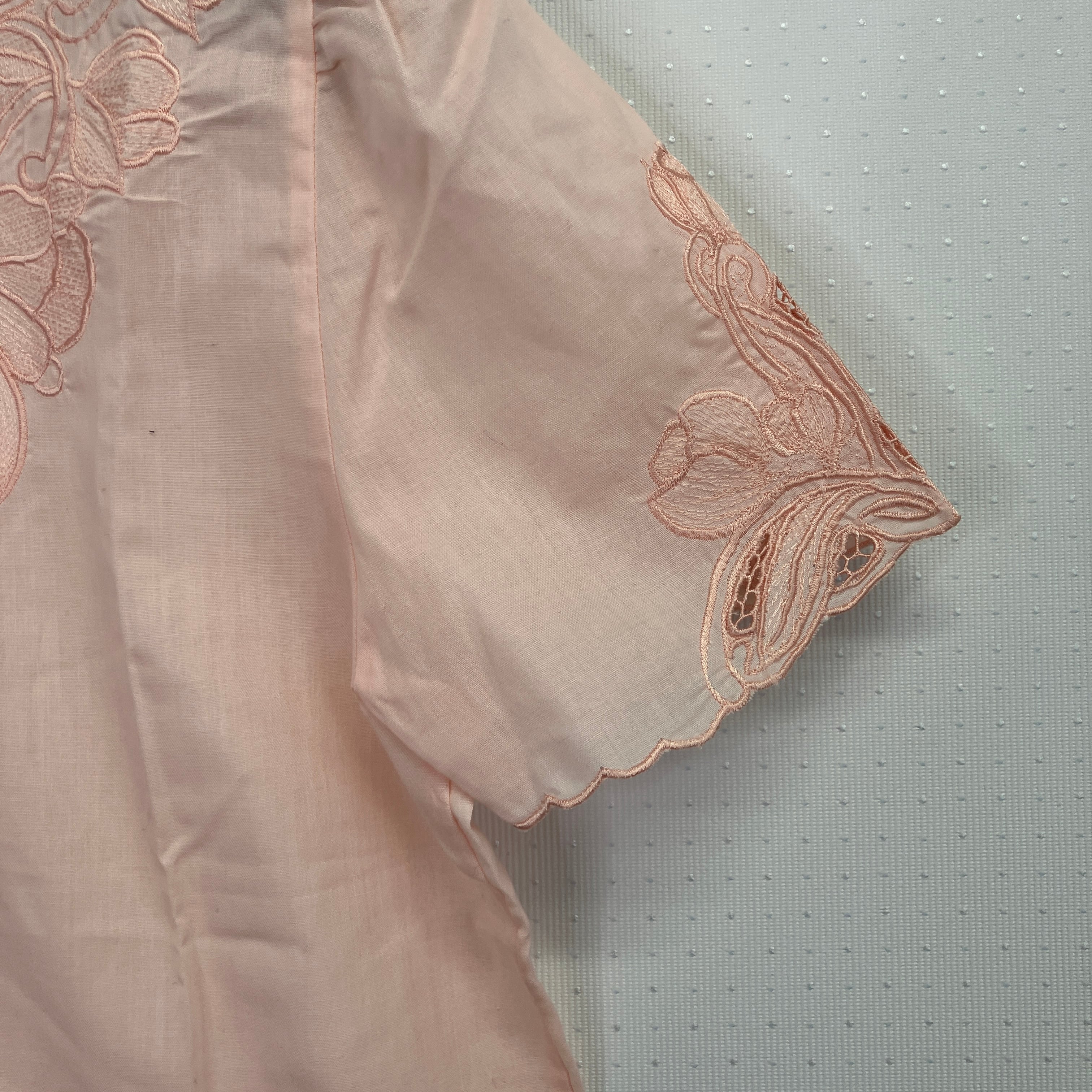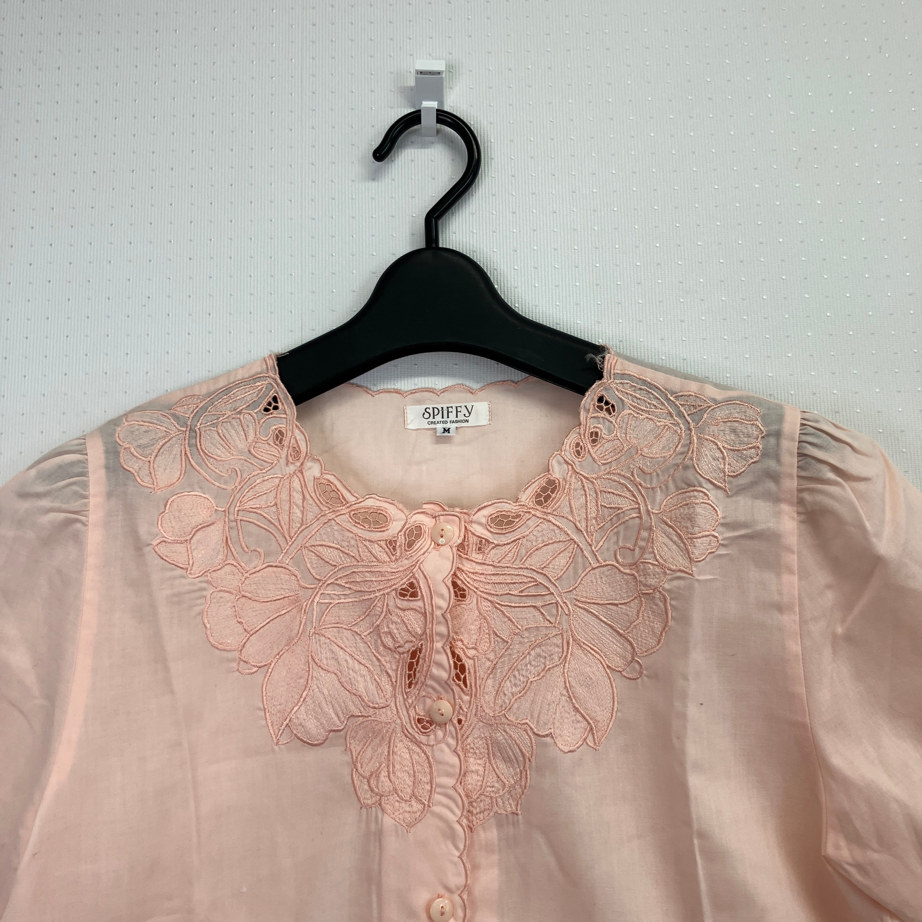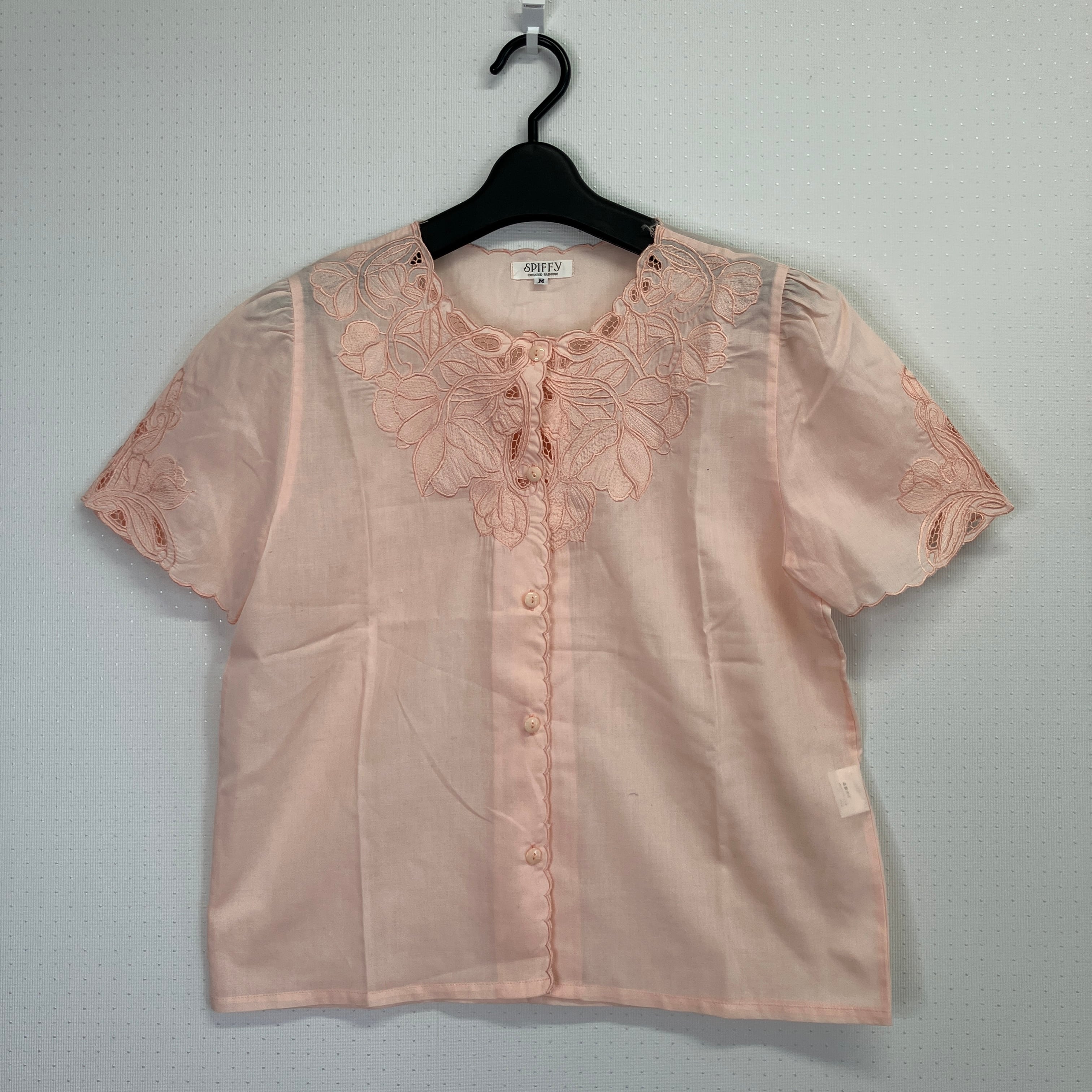 SPIFFY CREATED FASHION レース刺繍 ブラウス Mサイズ 淡いピンク 半袖シャツ