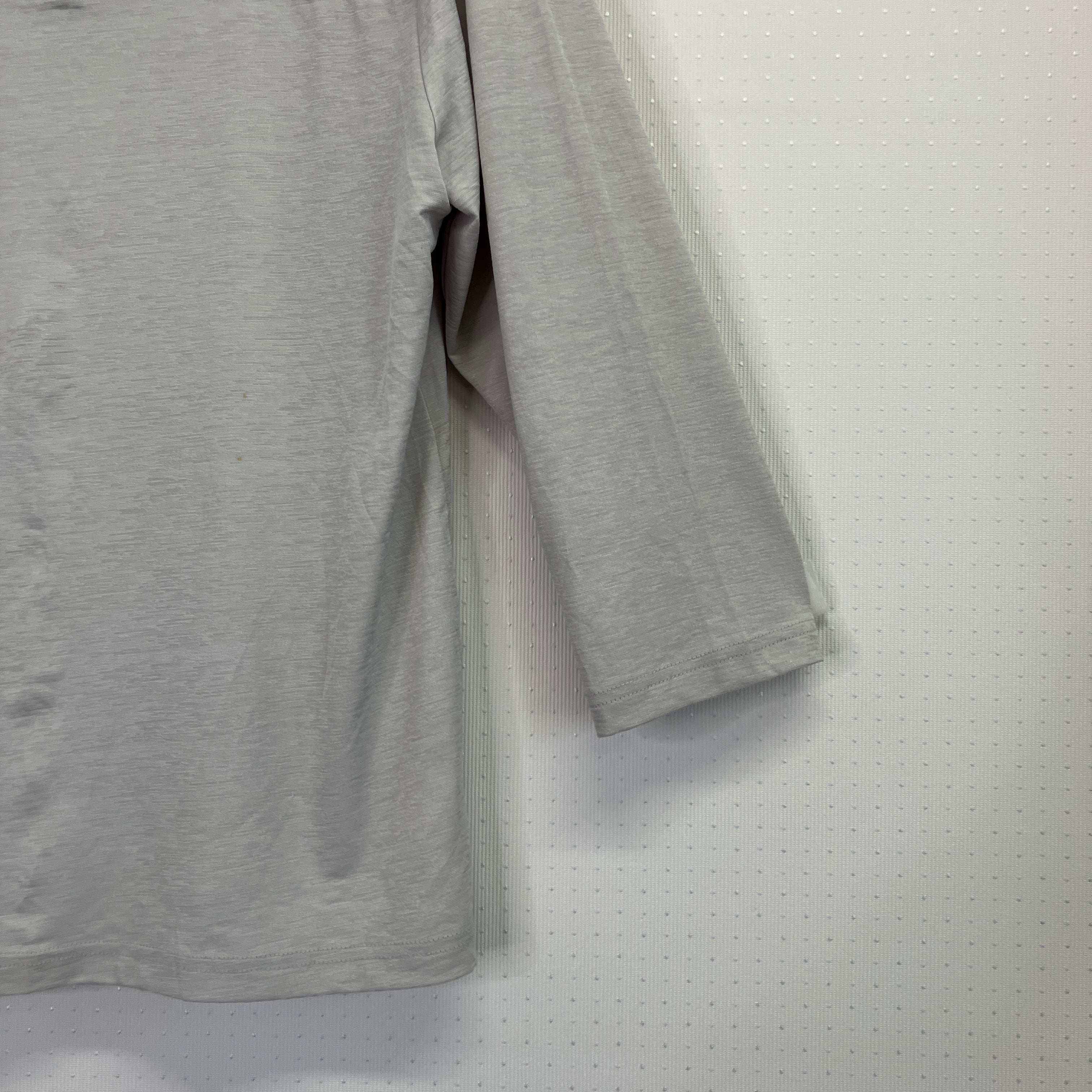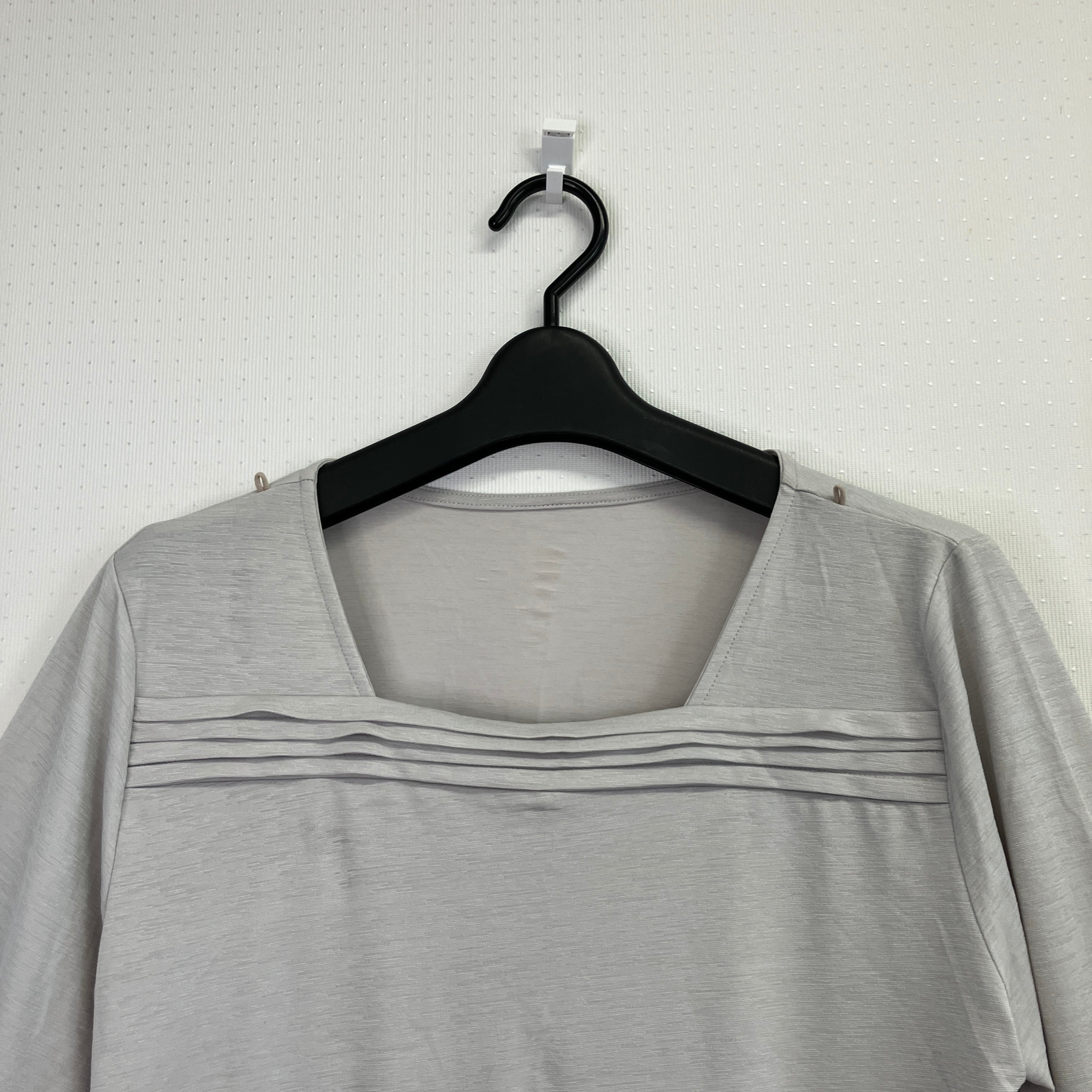 七分袖 スクエアネック カットソー L ライトグレー ピンタック 光沢 ストレッチ