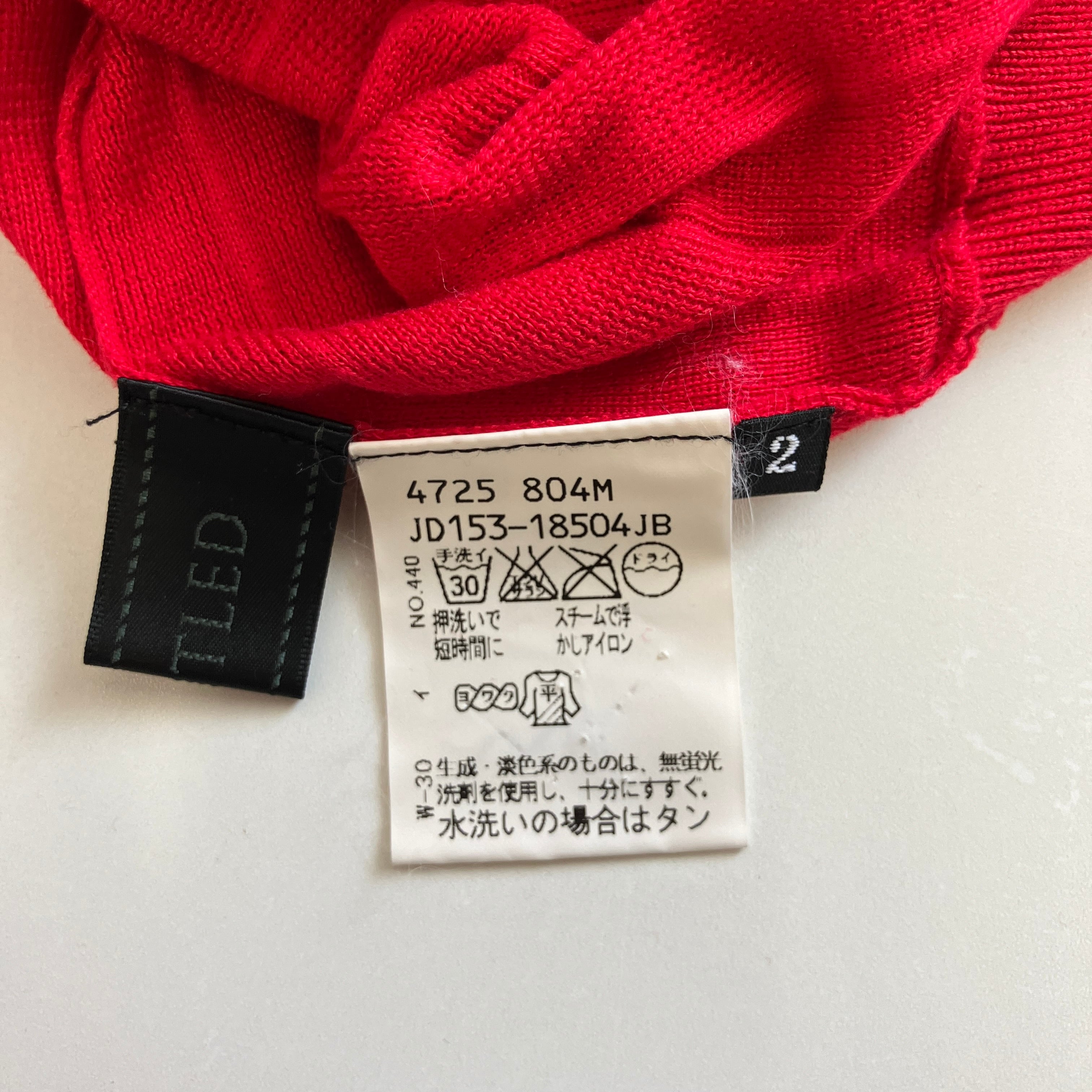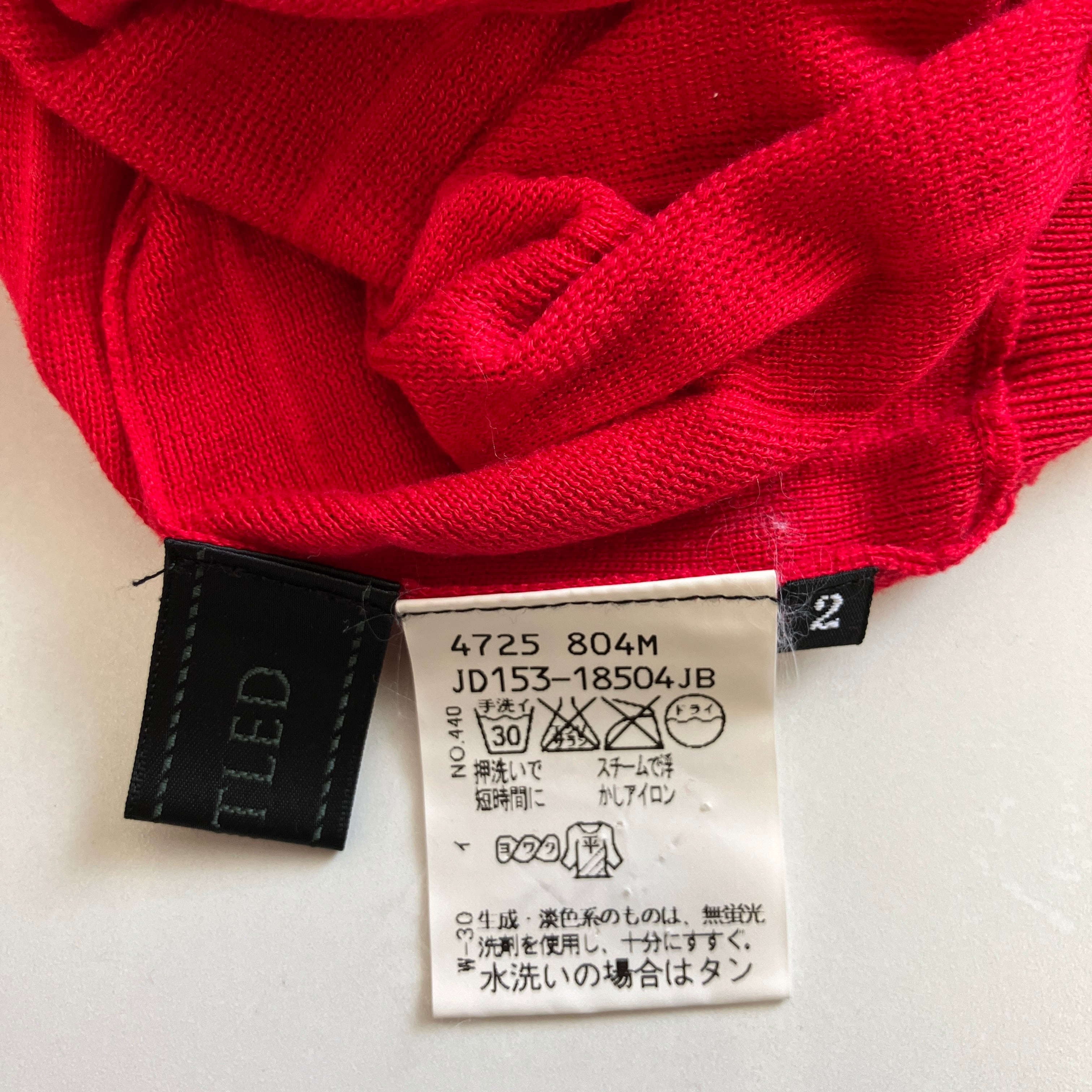 UNTITLED WORLDブランド タートルネック風 ノースリーブニット 赤 プリーツ風デザイン サイズ2