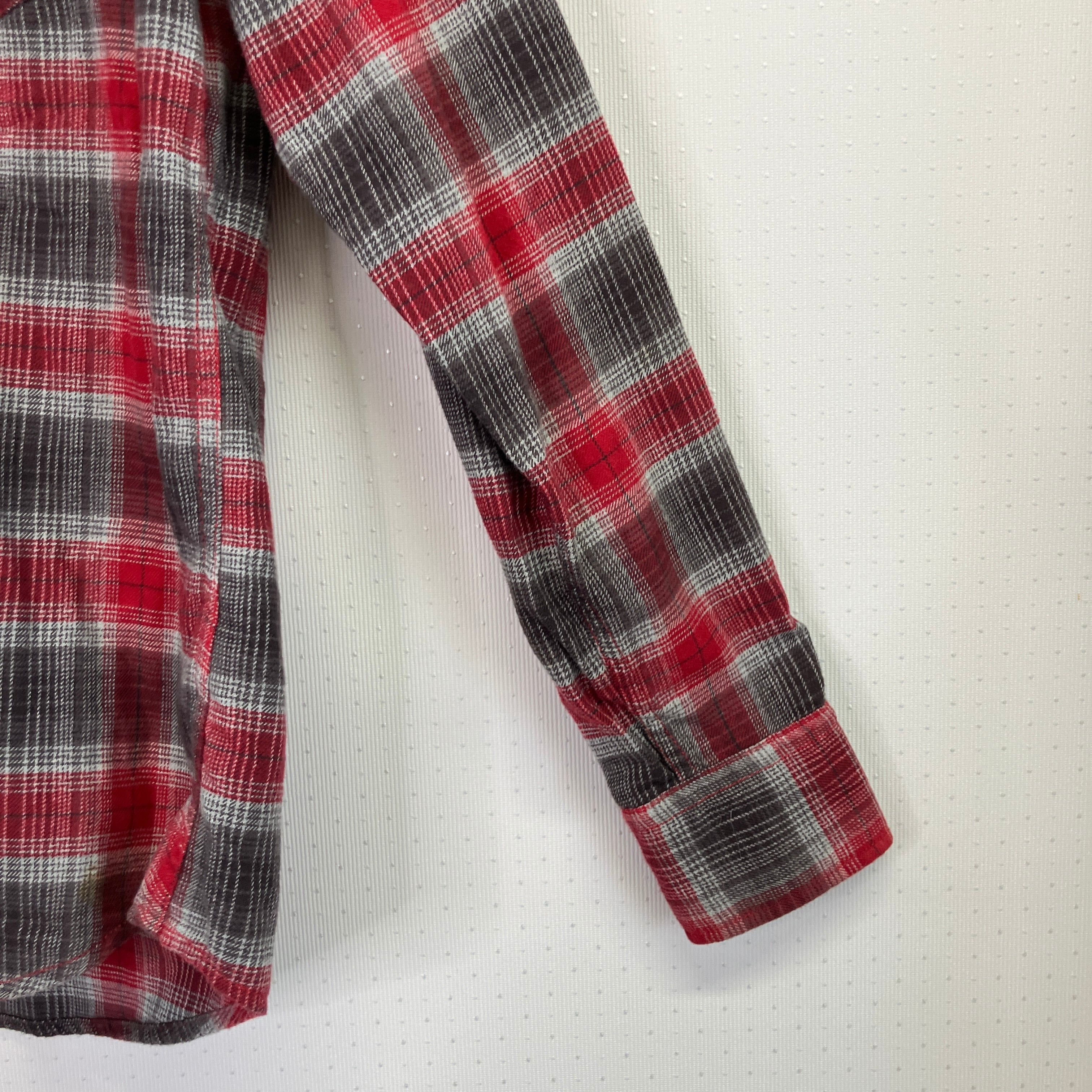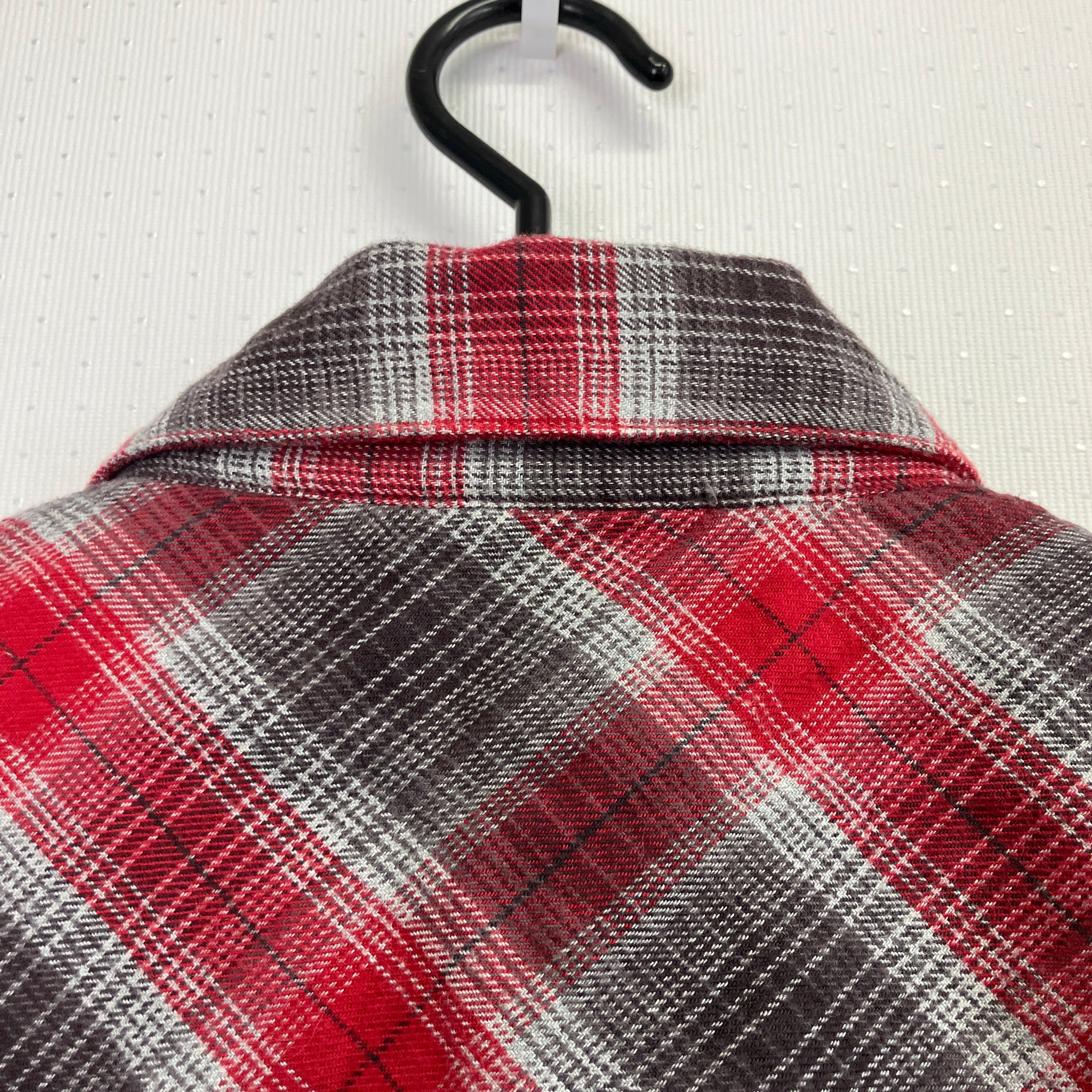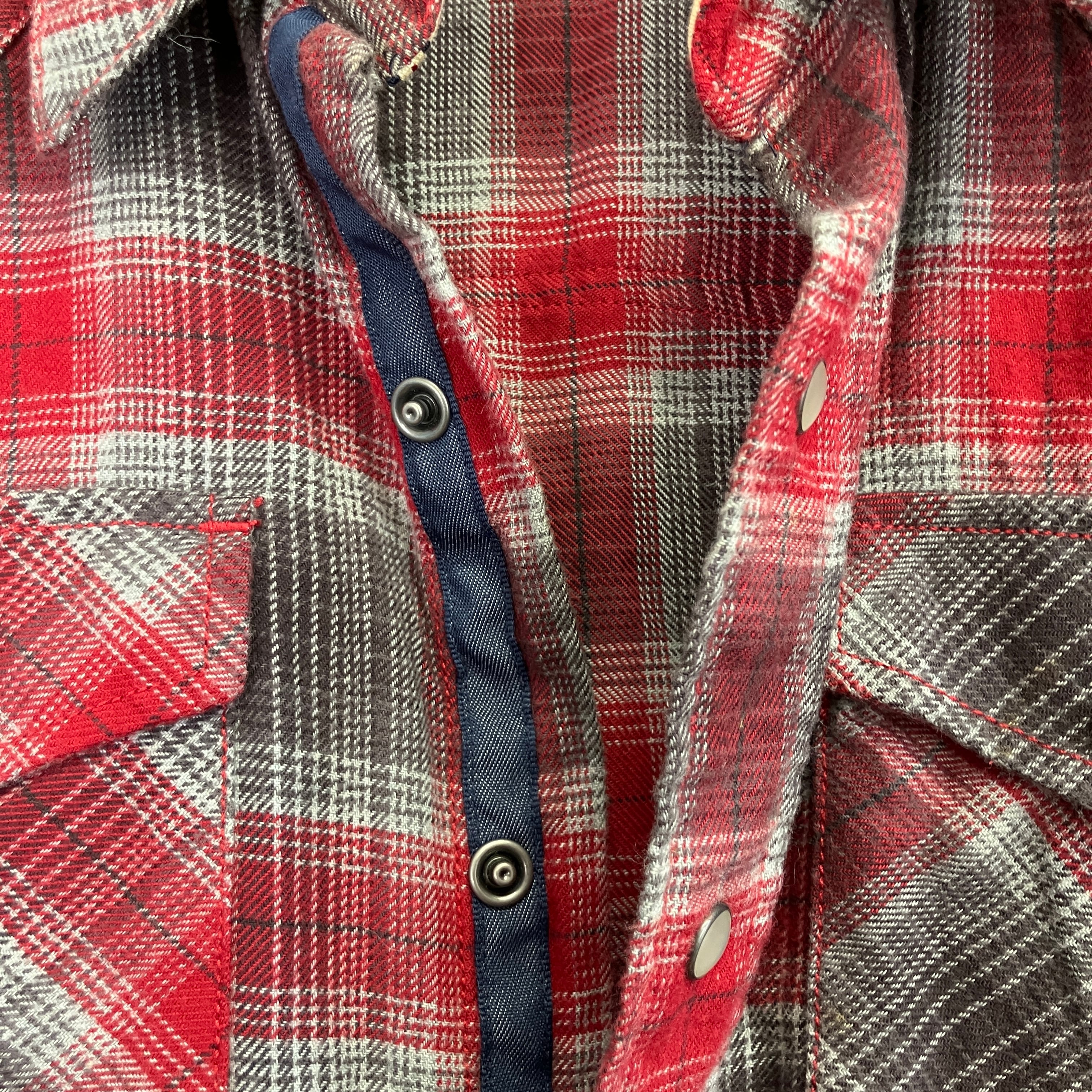 赤、黒、グレー、白を組み合わせたチェック柄で、カジュアルなアメカジスタイルにぴったりです。