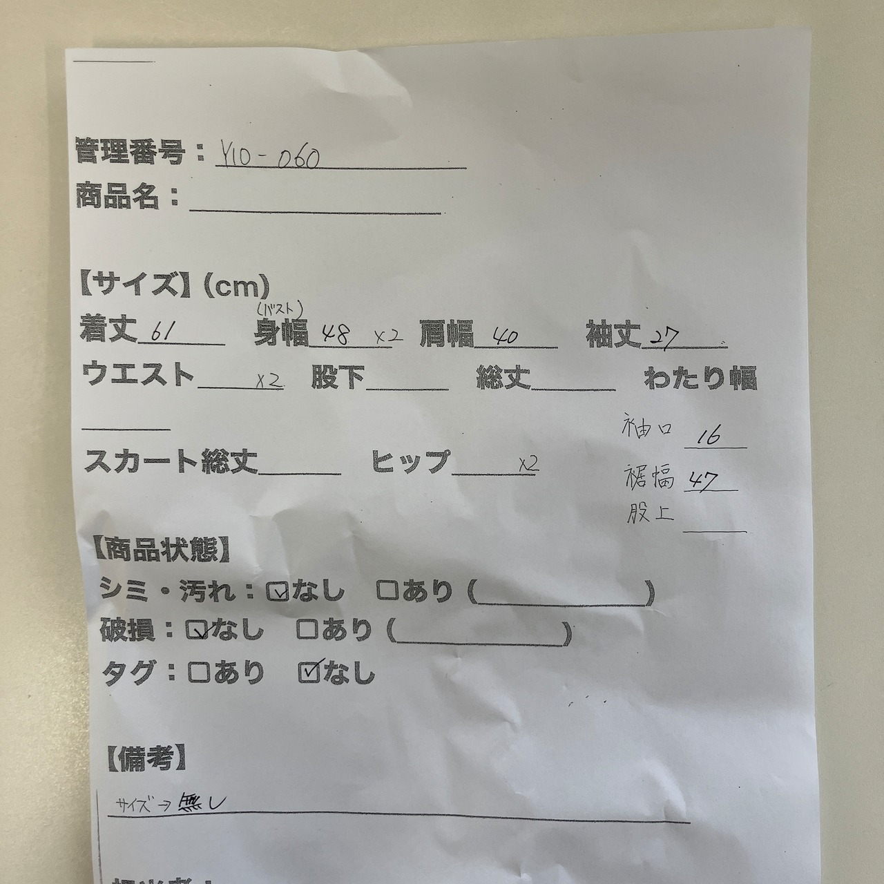 管理番号:Y10-060#てまいらずアパレル商品一覧