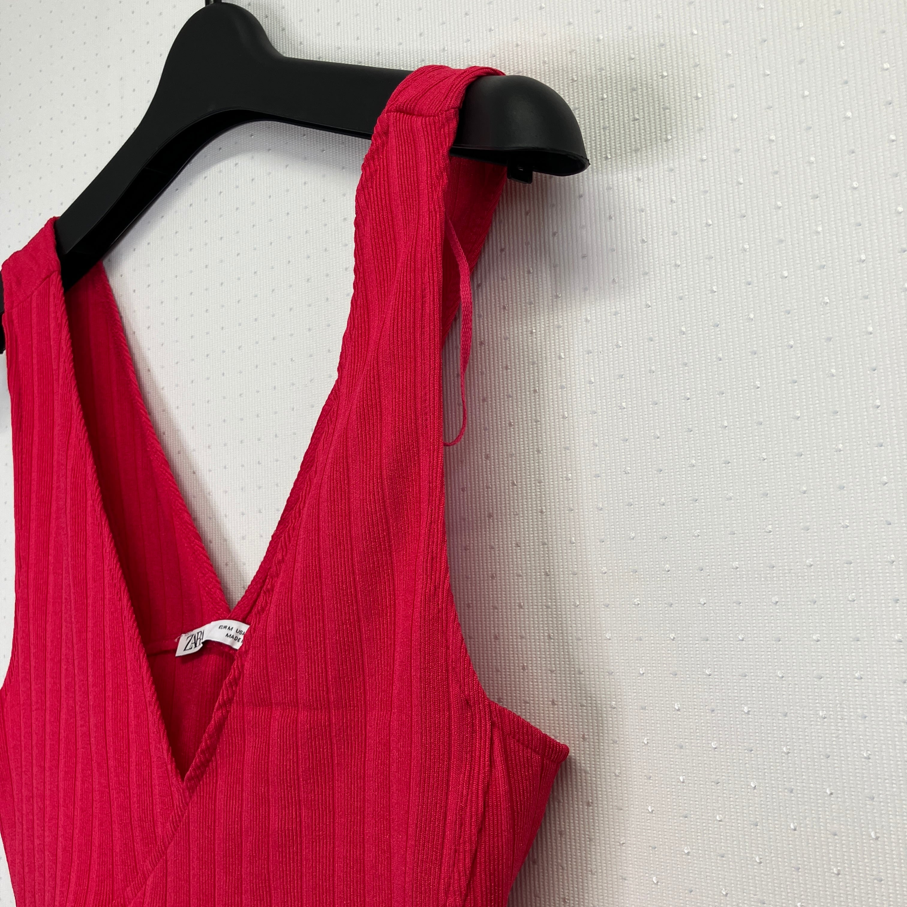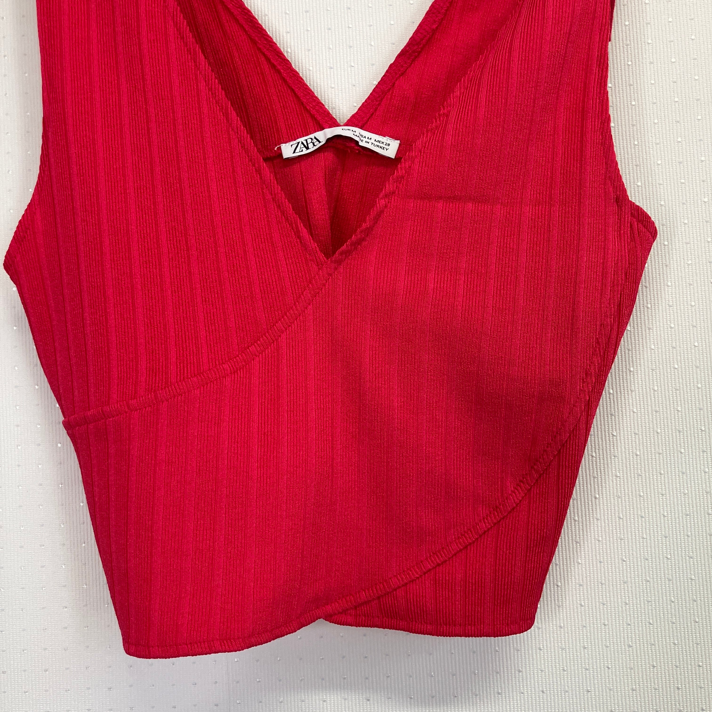 ZARA ザラ Vネック クロップド リブニット キャミソール ビスチェ 赤 M