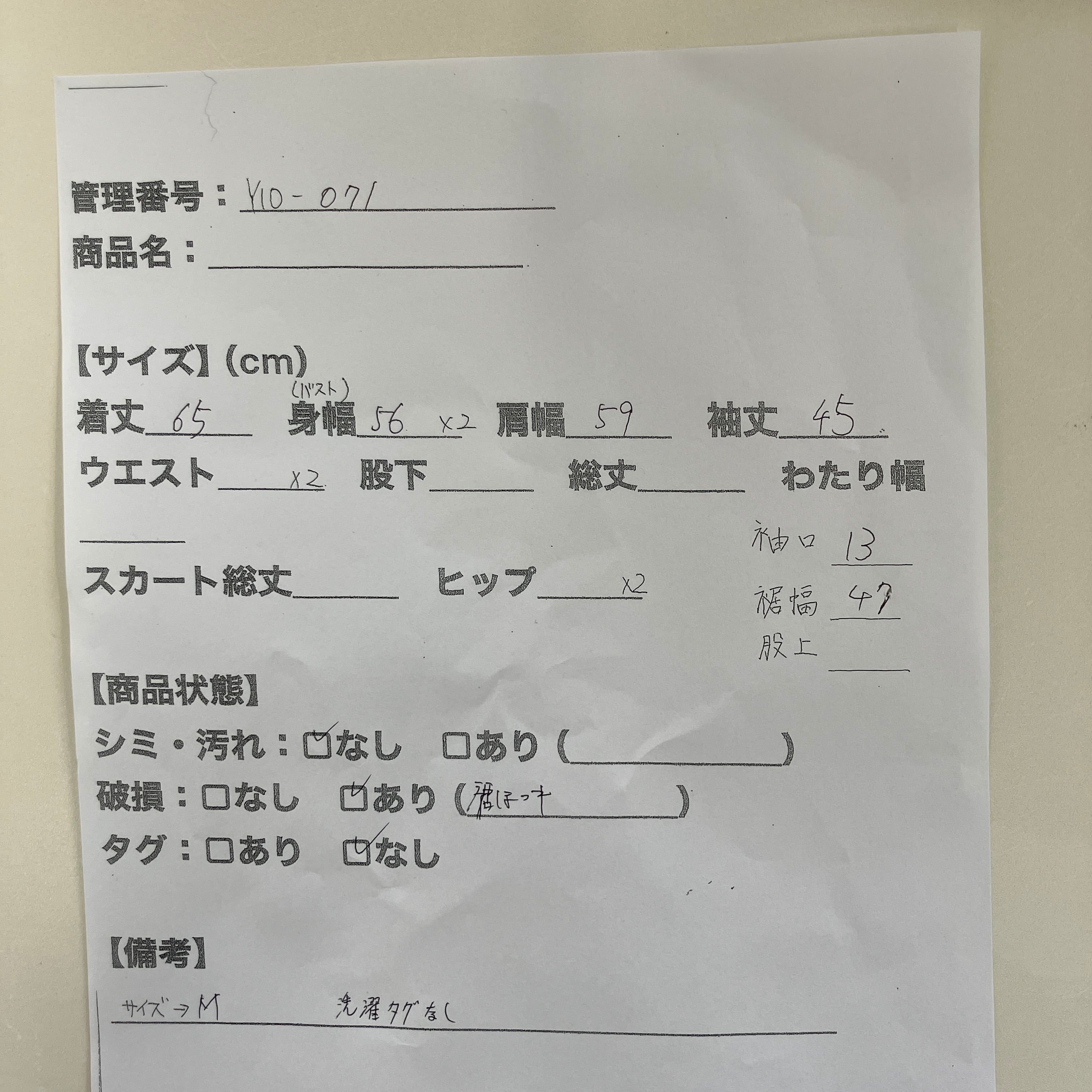 管理番号:Y10-071#てまいらずアパレル商品一覧