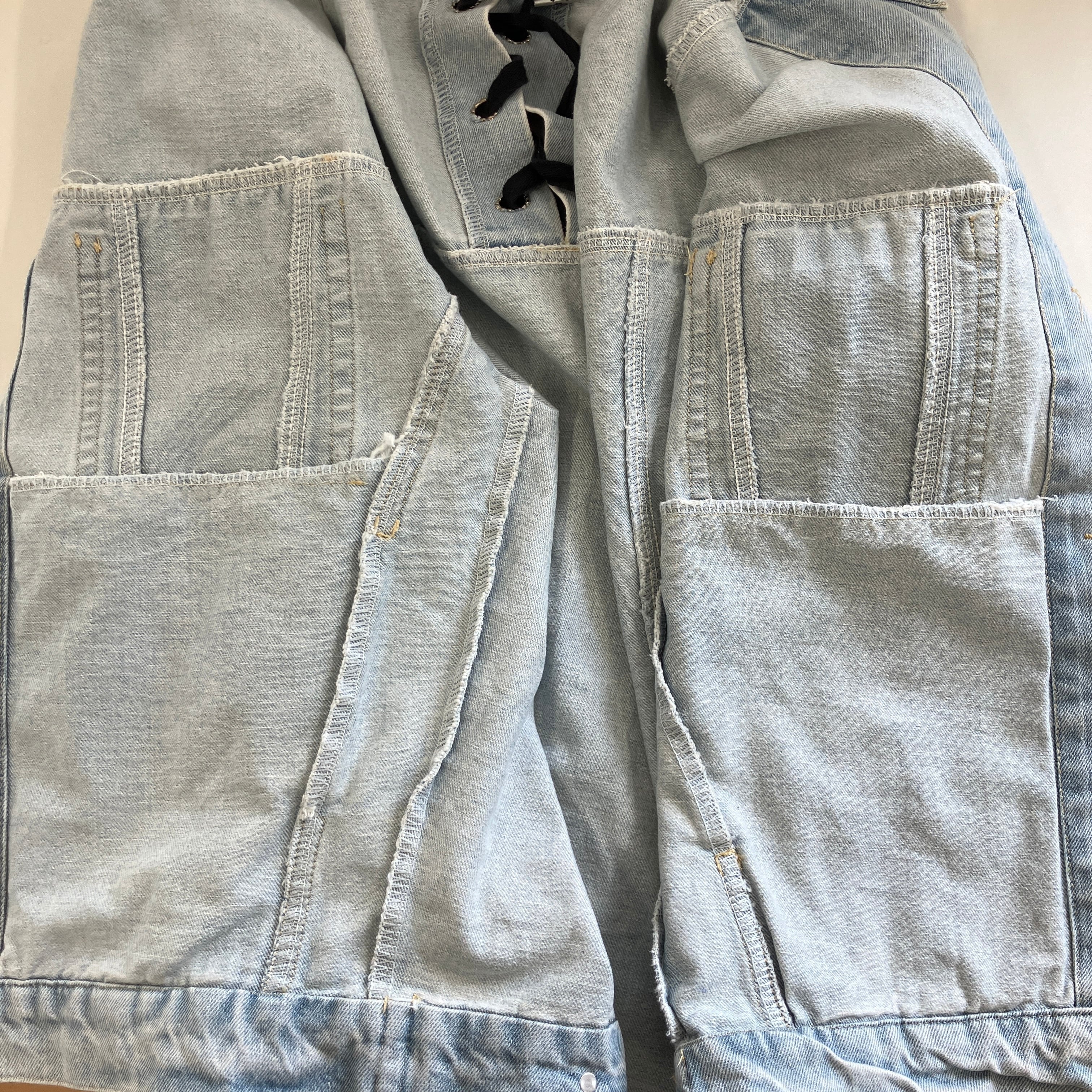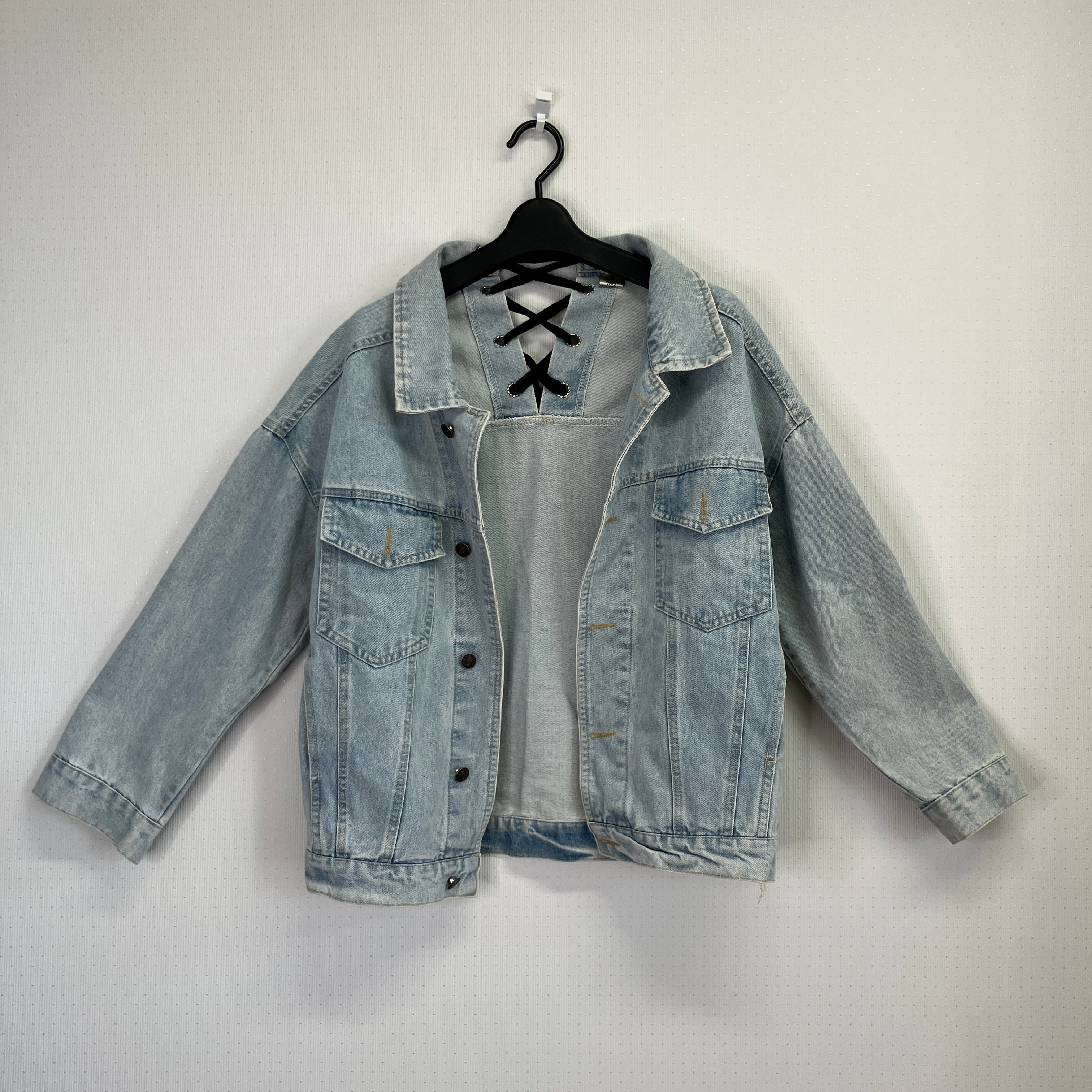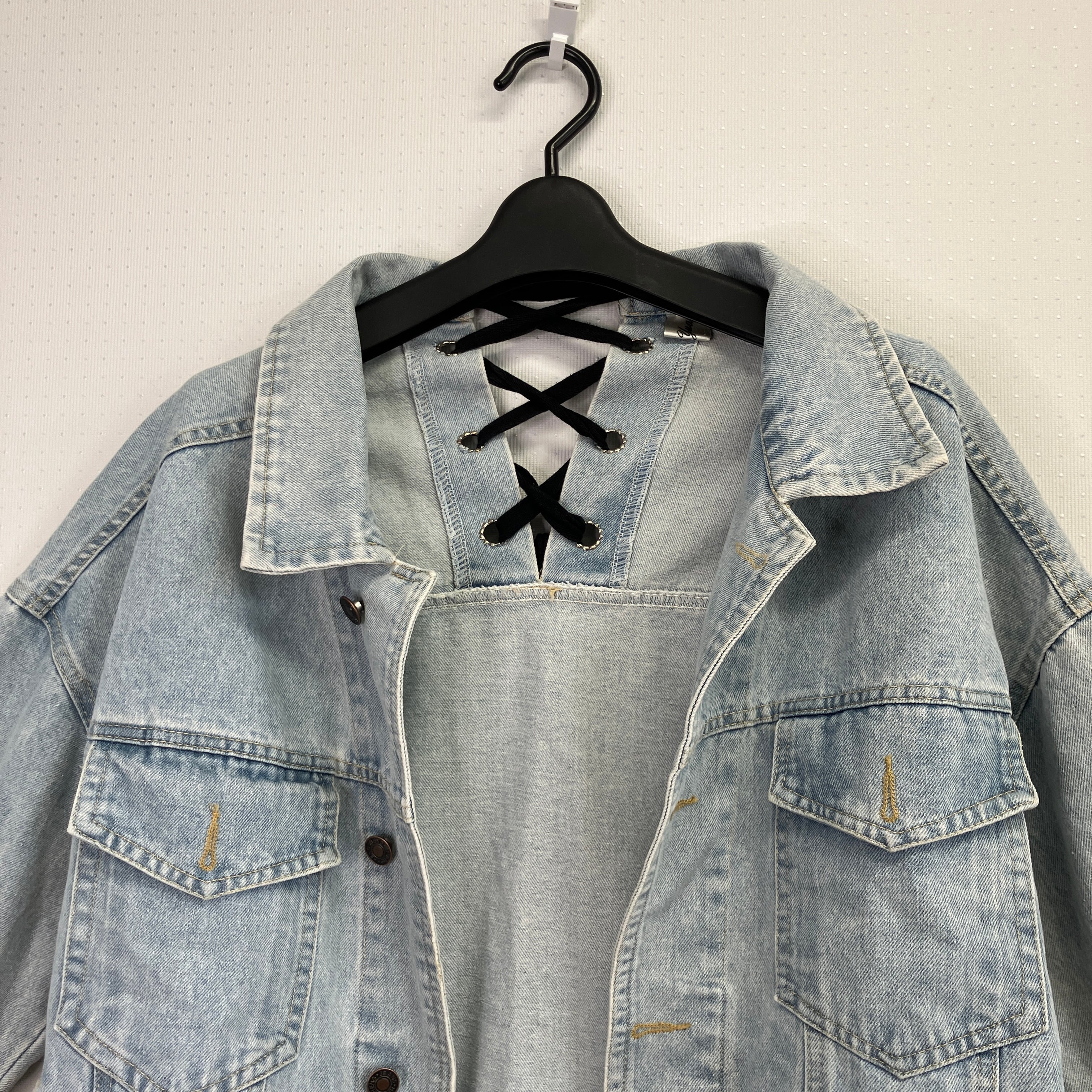 yuanyuan バックレースアップ デニムジャケット Gジャン Mサイズ ライトブルー