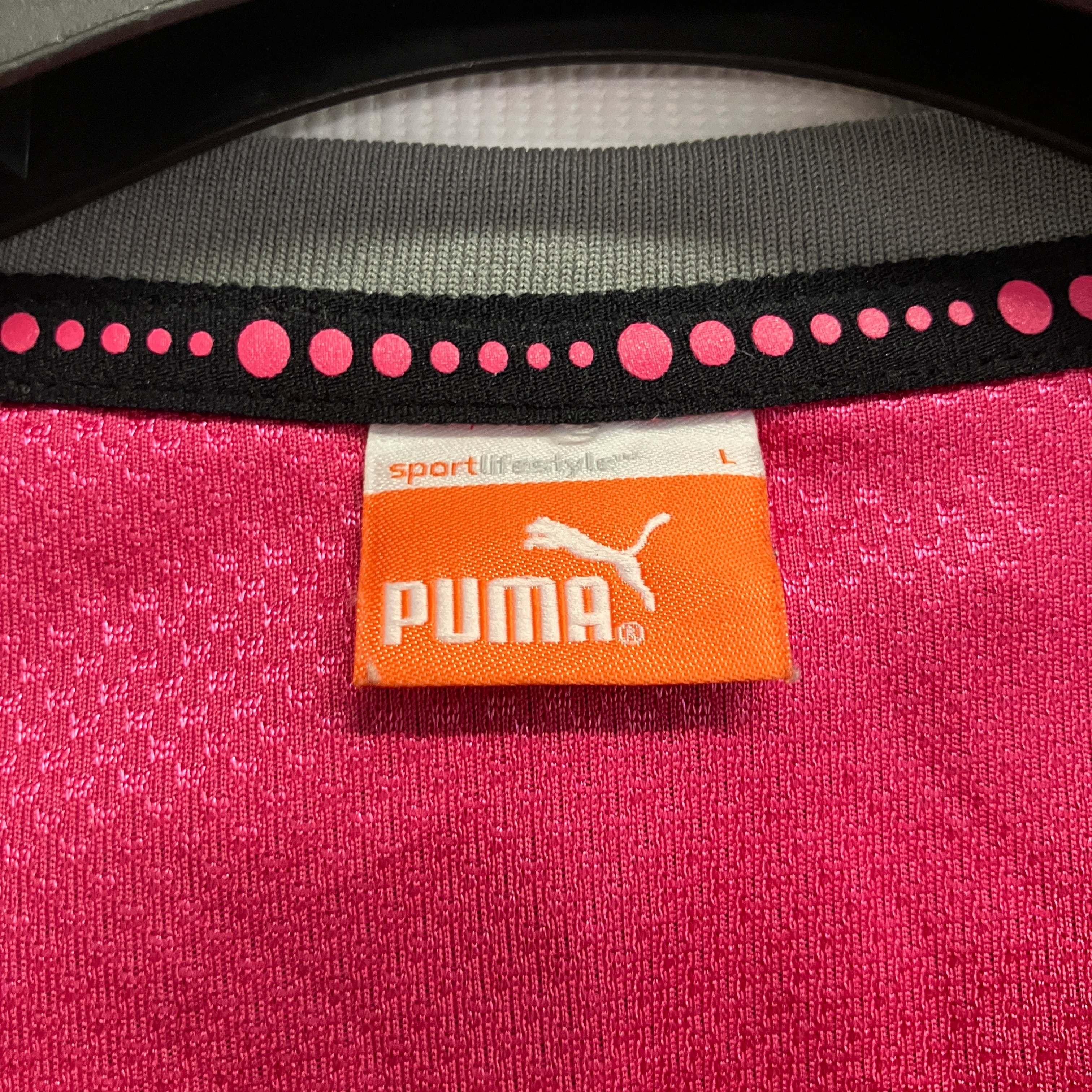 PUMA プーマ スポーツ Tシャツ Vネック Lサイズ 黒 蛍光ピンク メッシュ素材