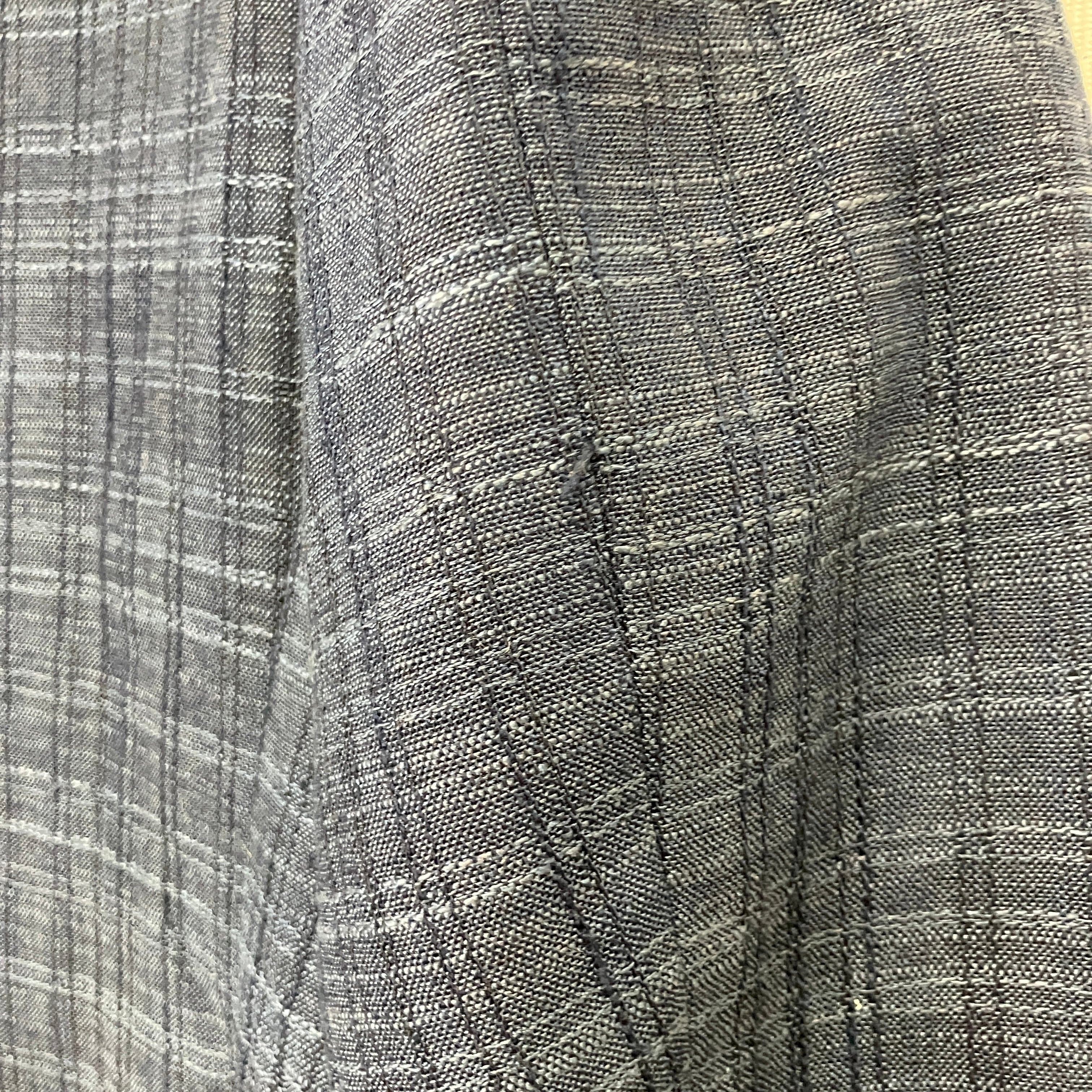 麻(リネン)が23% 含まれた素材で、ポリエステルと混紡されているため、軽量で春から秋にかけて着用いただけます。