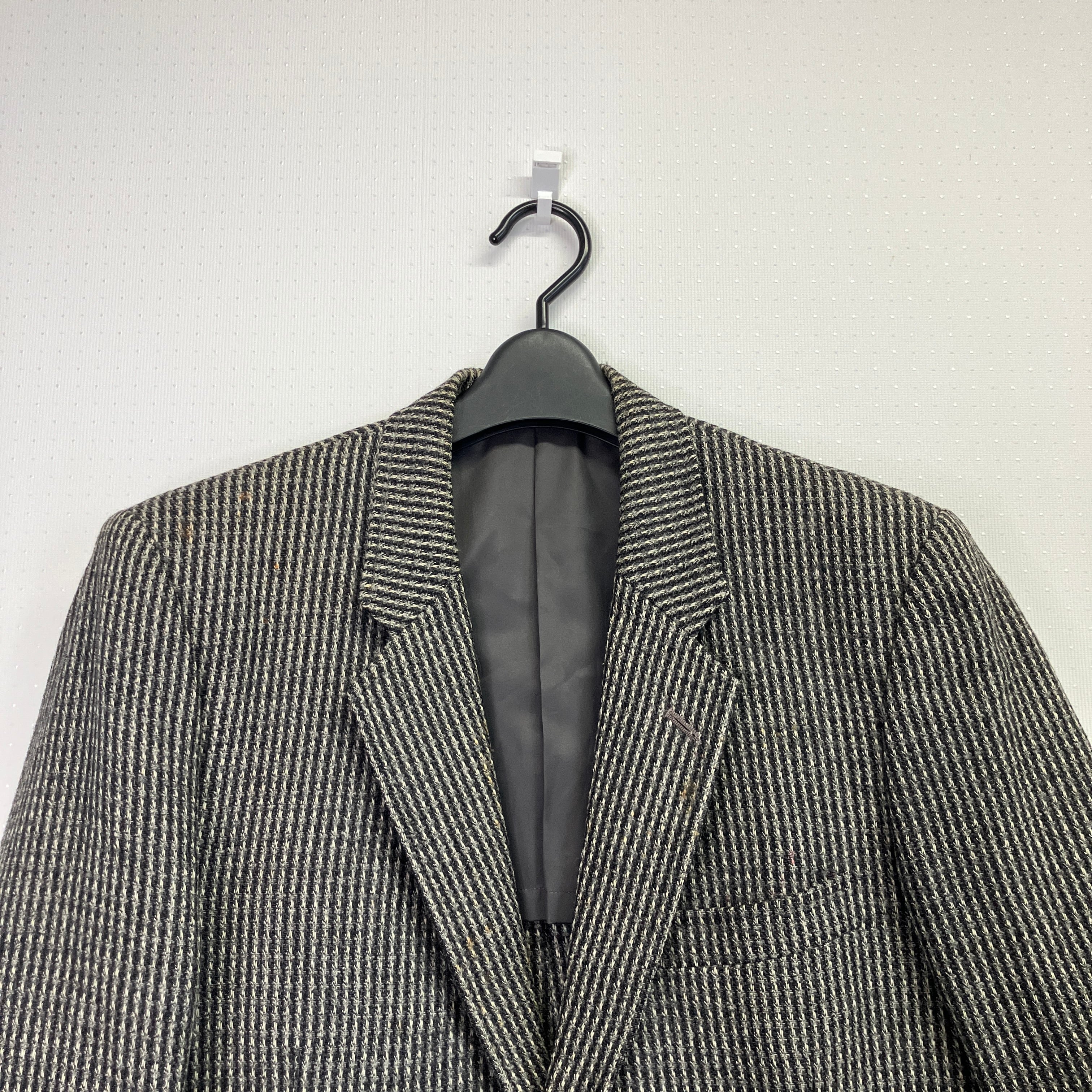 中古品にご理解いただける方のみご購入をお願いいたします。ストライプデザインのテーラードジャケット、ウール混紡素材でカジュアルに最適。