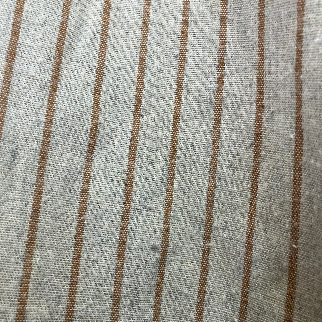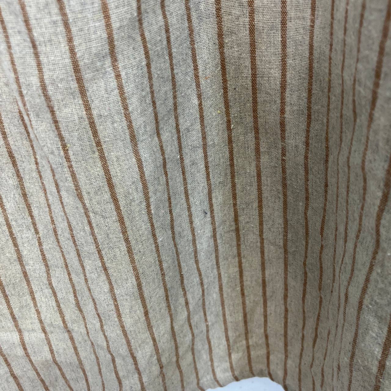 ベージュ系の生地にブラウンの細いストライプ柄が入ったデザイン。