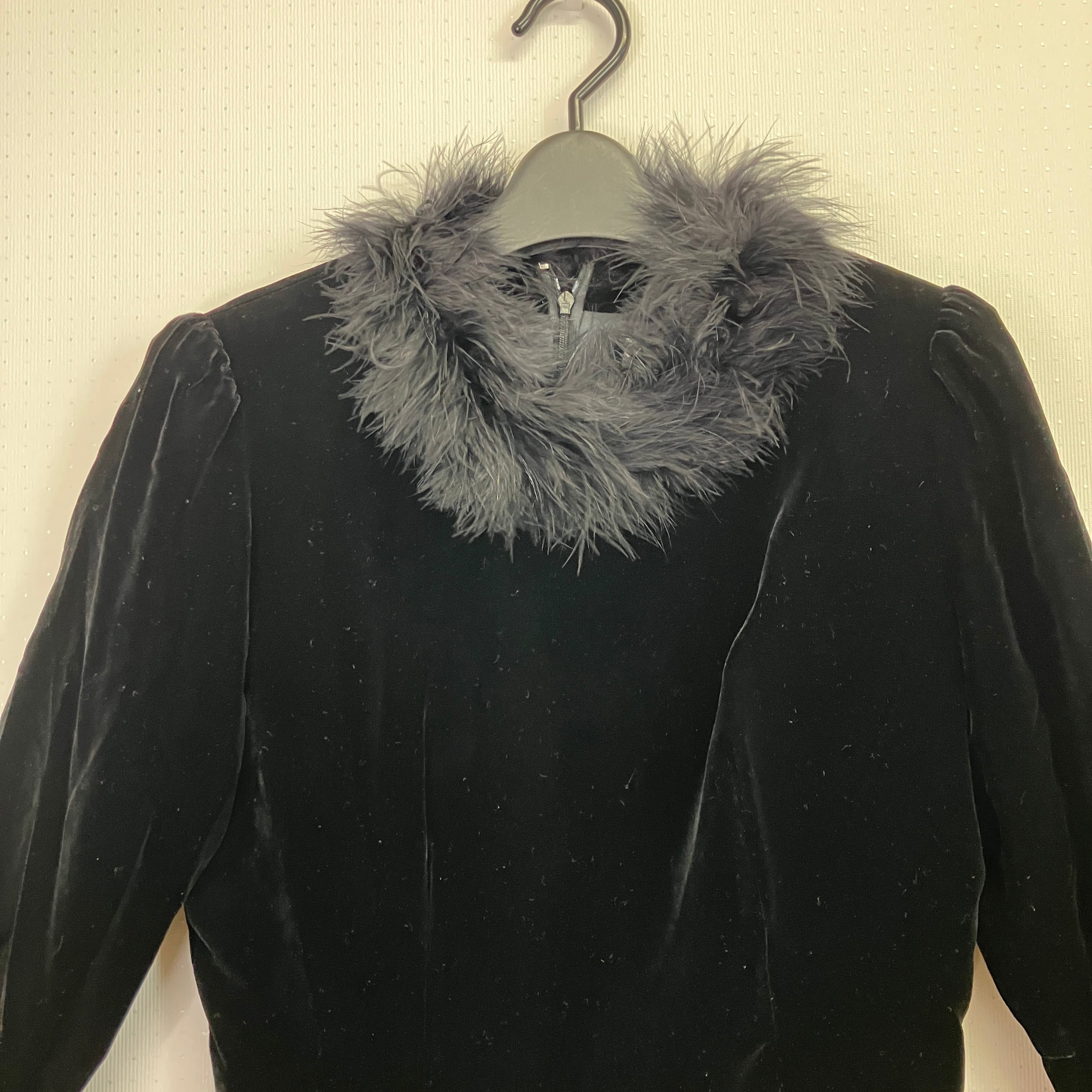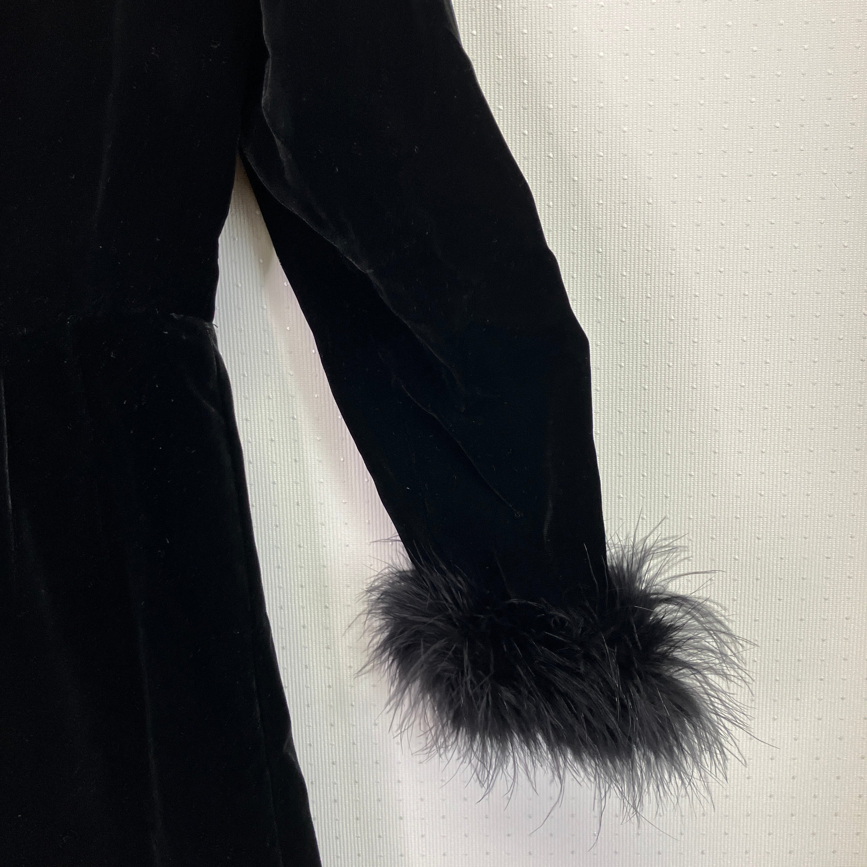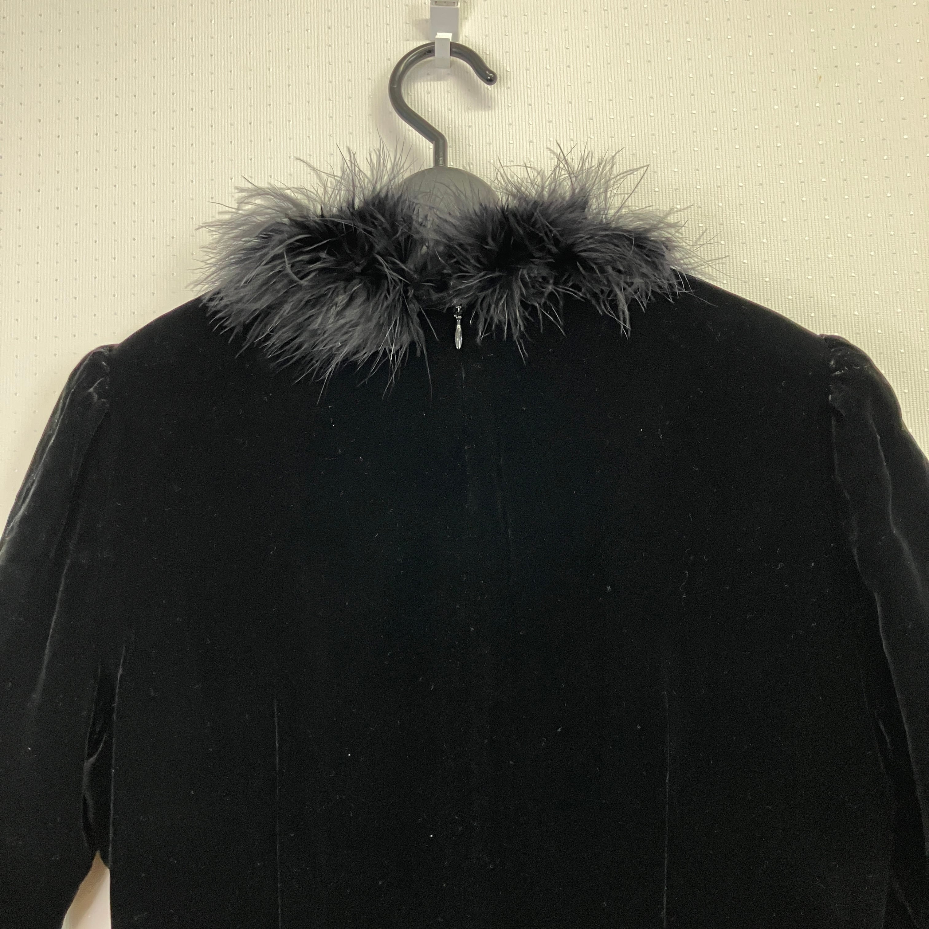 豪華なオーストリッチフェザー(ダチョウの羽毛)が襟元と袖口にあしらわれた、REGINA(レジーナ)のブラックドレス/ワンピースです。