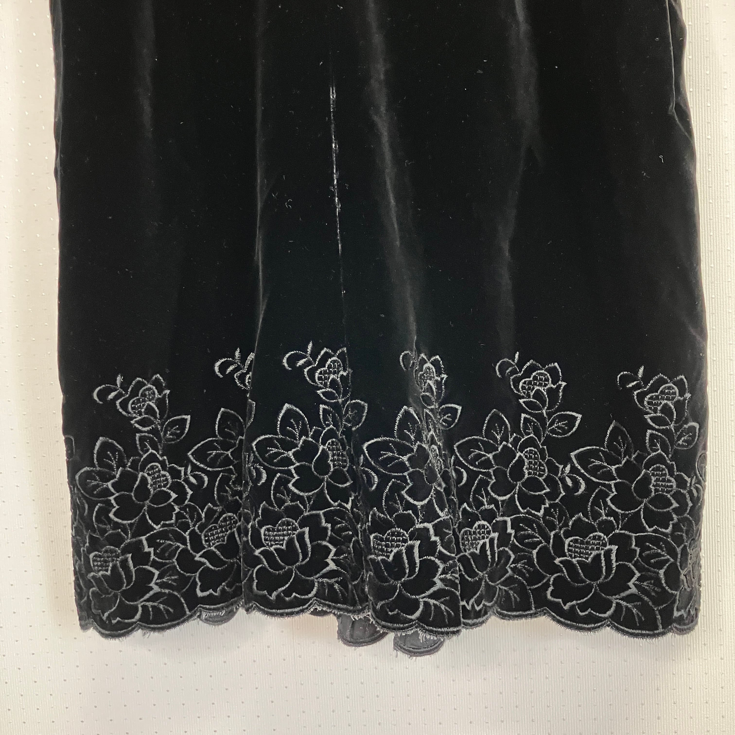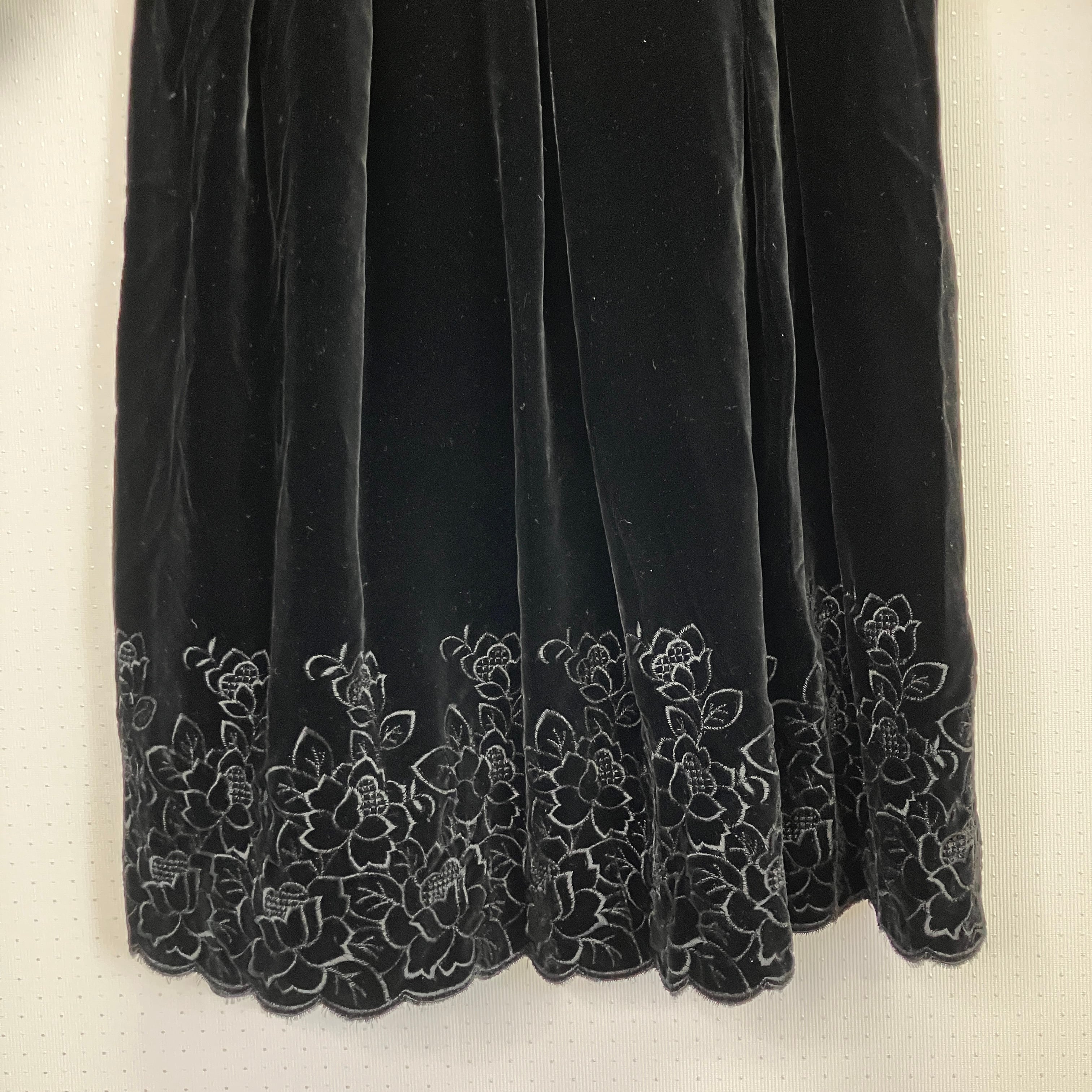 スカートの裾には、刺繍またはカットワークのような装飾が施されており、細部まで凝ったデザイン。