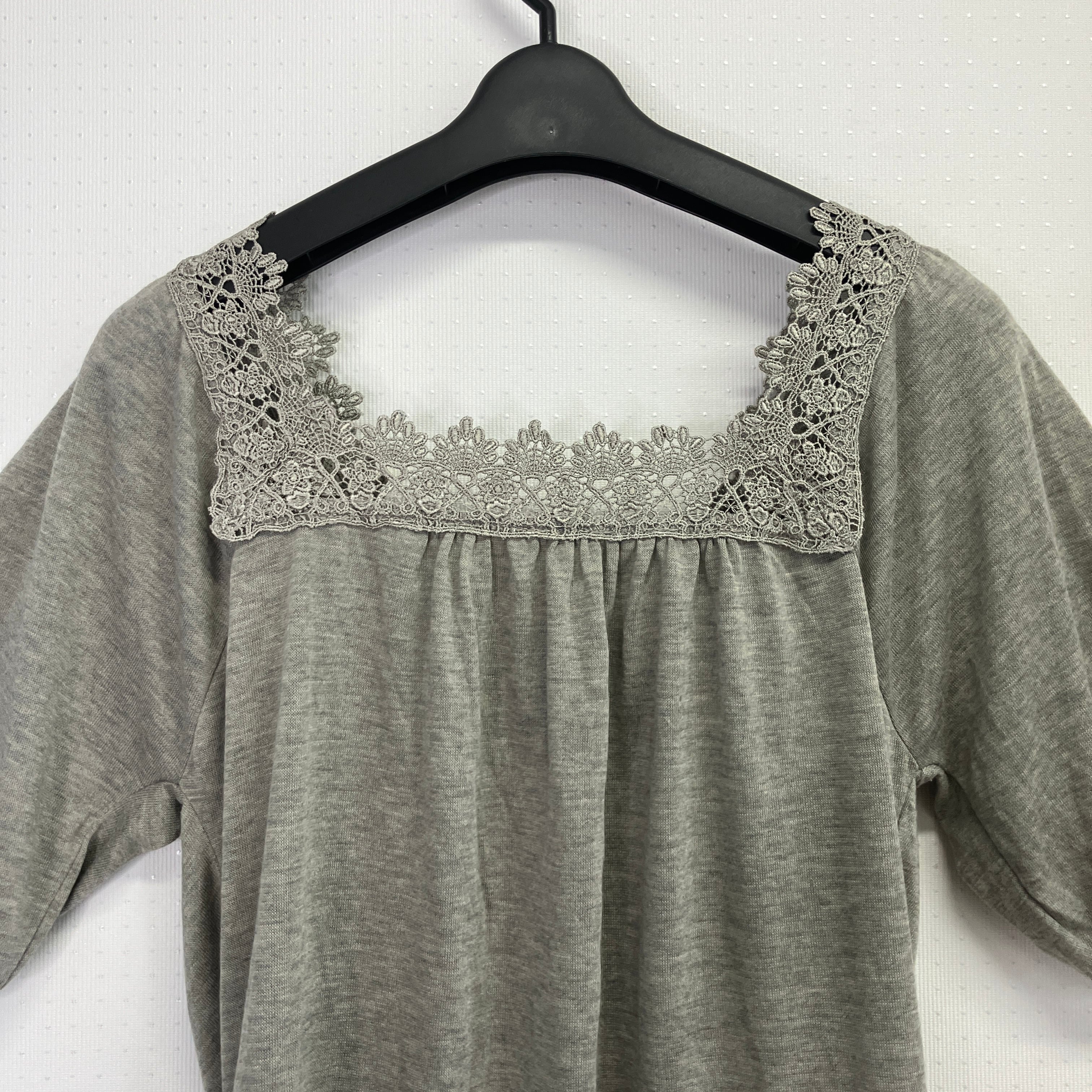 pink adobe ピンクアドベ レースネック スクエアネック カットソー チュニック グレー L