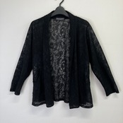 FASHION MESSAGE メッシュ レース調 ノーカラージャケット カーディガン 黒 サイズ : L