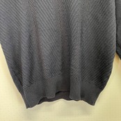 色はシックな濃紺(ダークネイビー/チャコールに近いダークトーン)で、Vネックの縁やリブ部分にブラウン系のラインが入ったおしゃれなデザインです。
