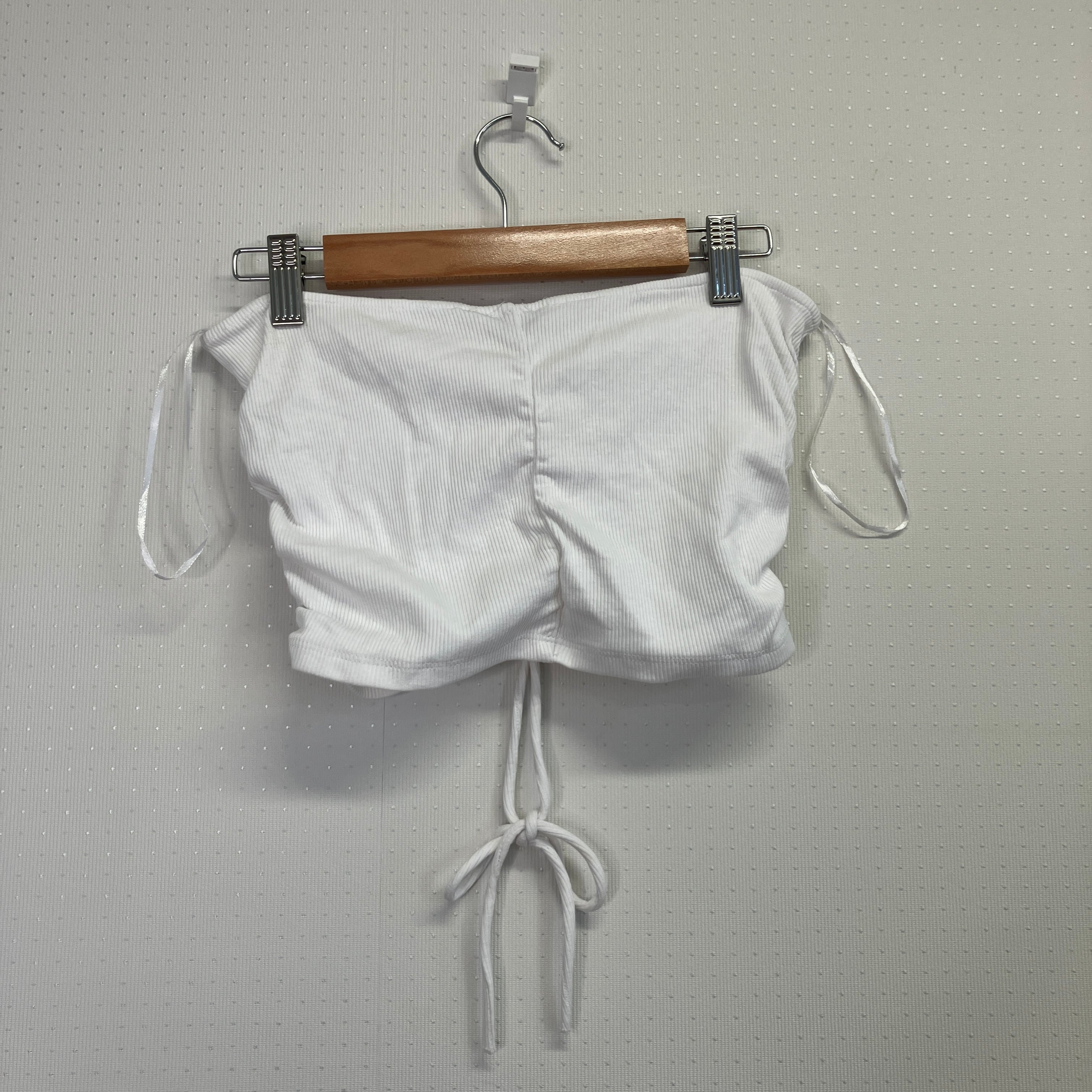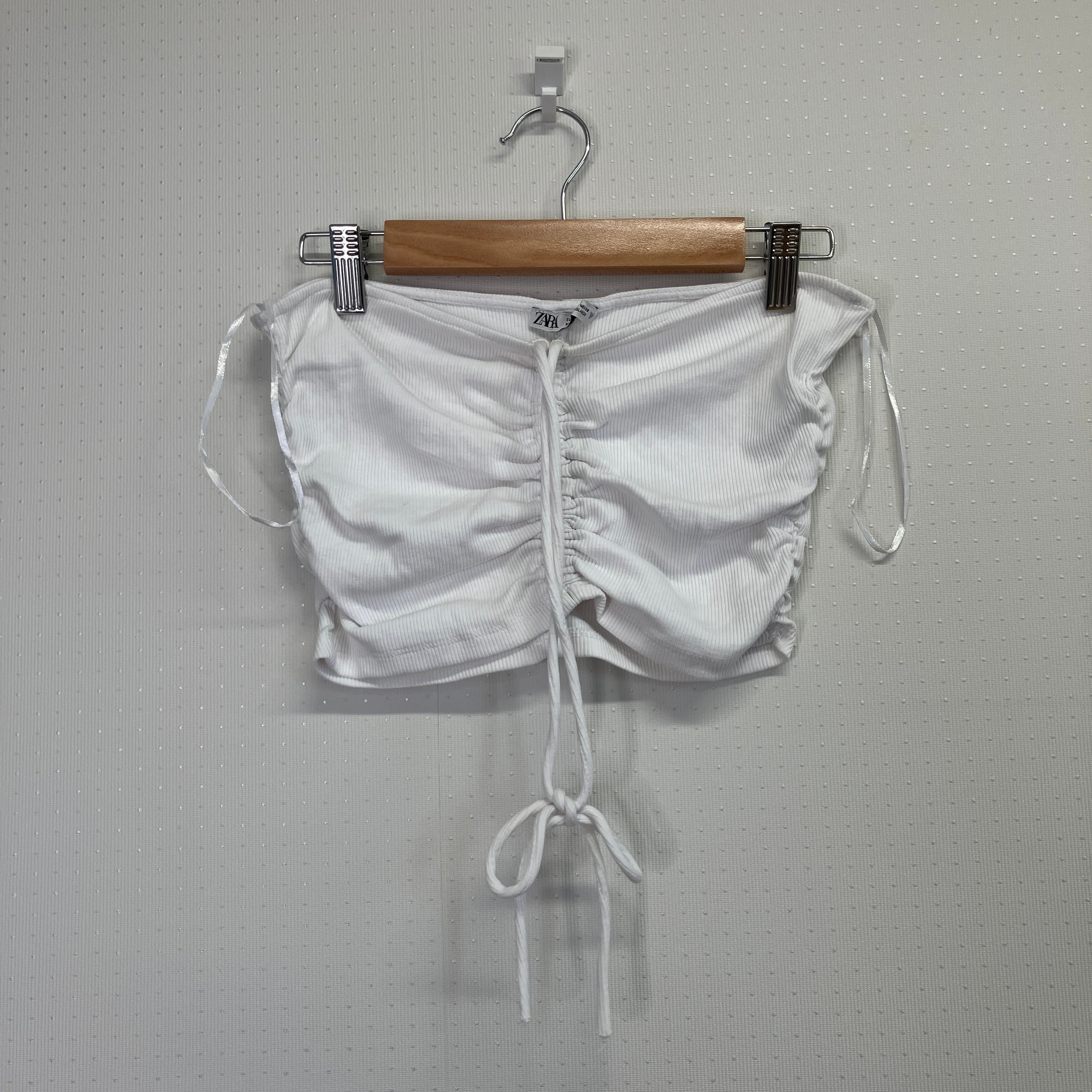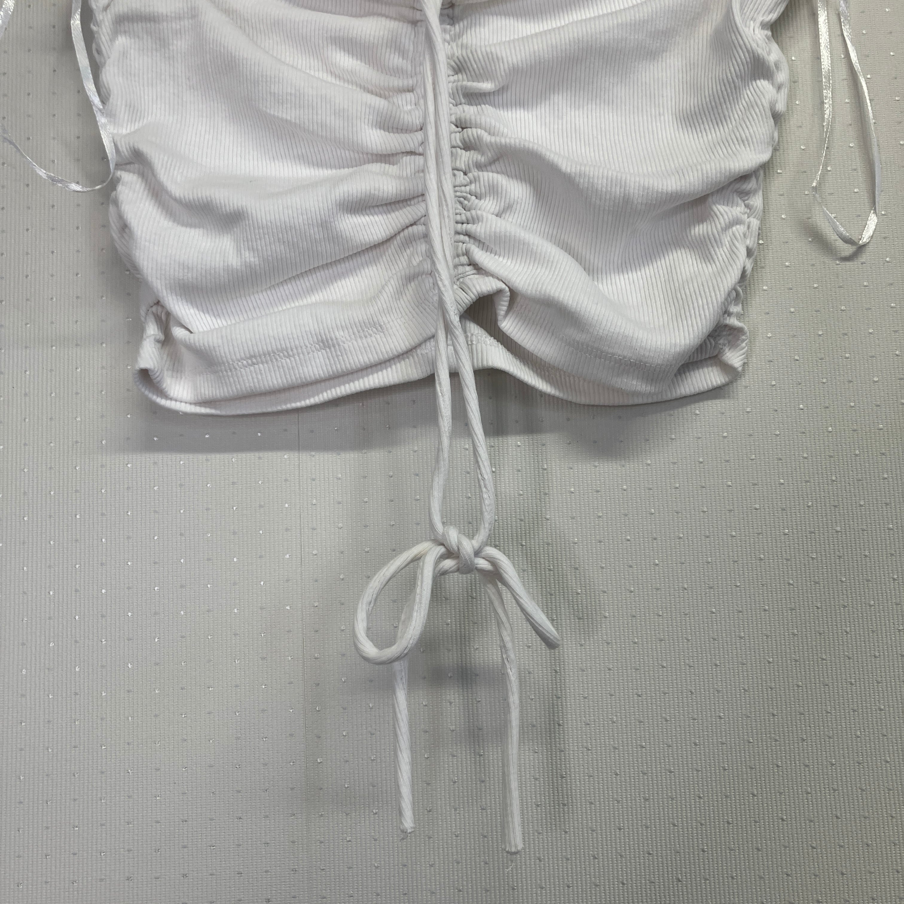 ZARA ザラ リブ素材 シャーリング ドローストリング クロップド丈 タンクトップ 白 Lサイズ