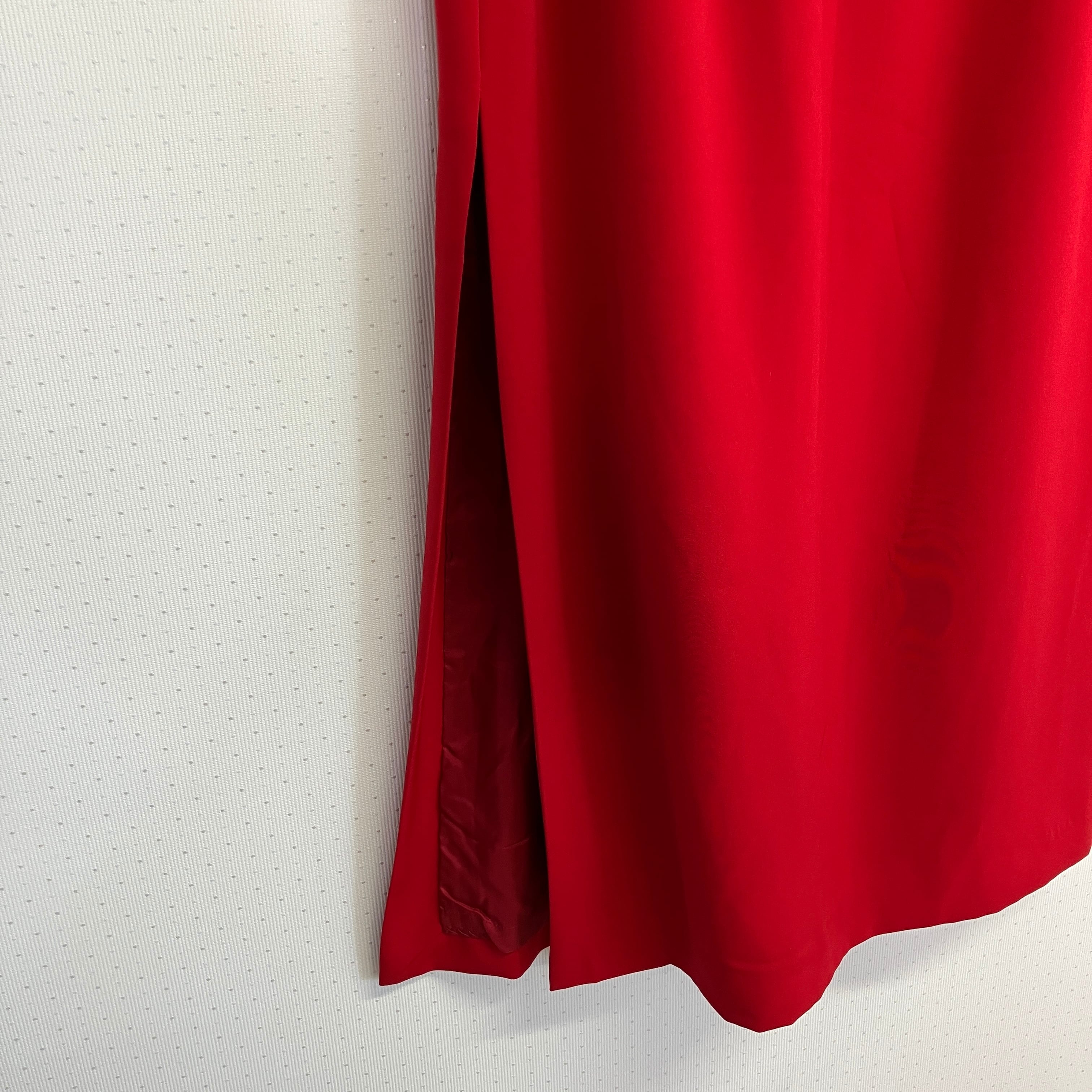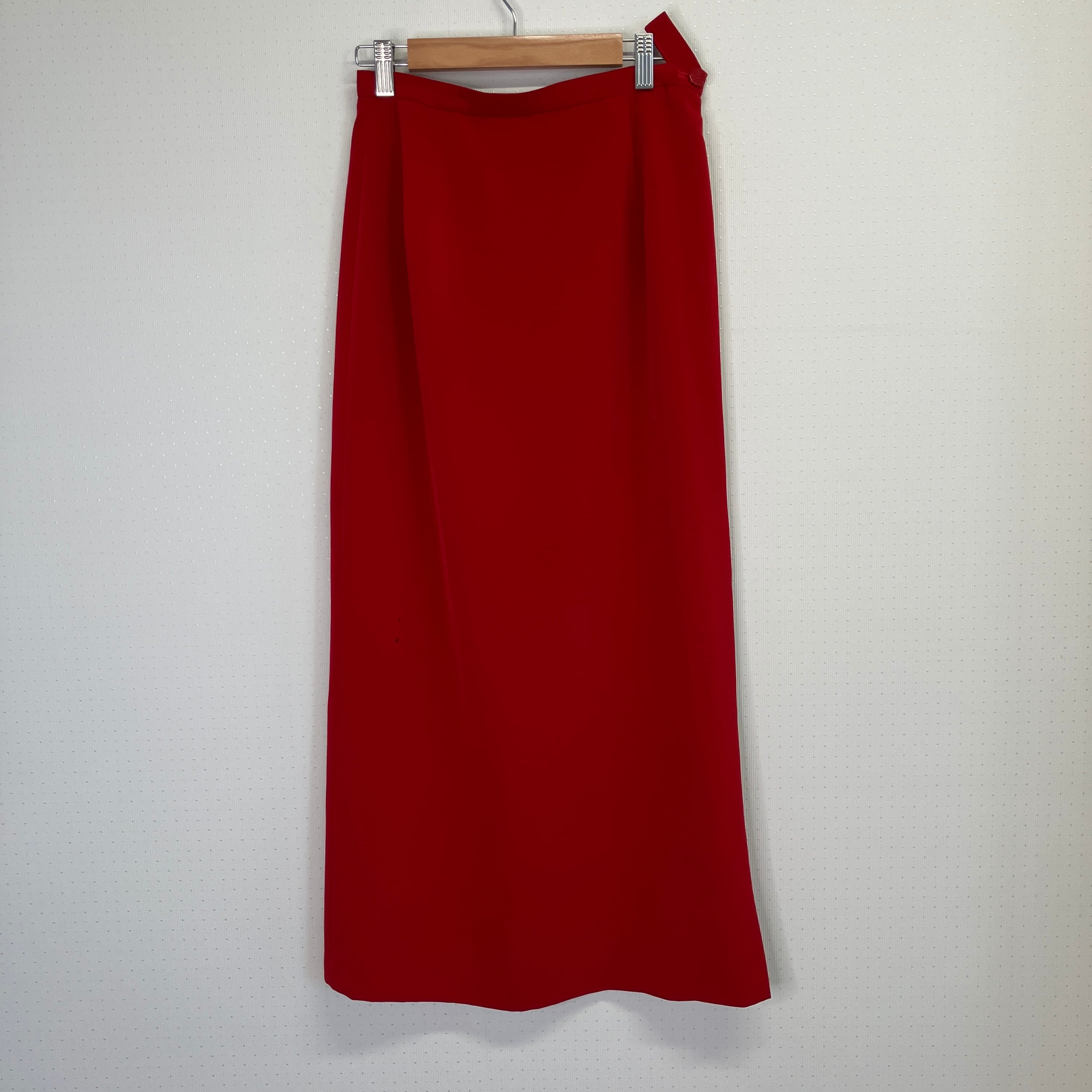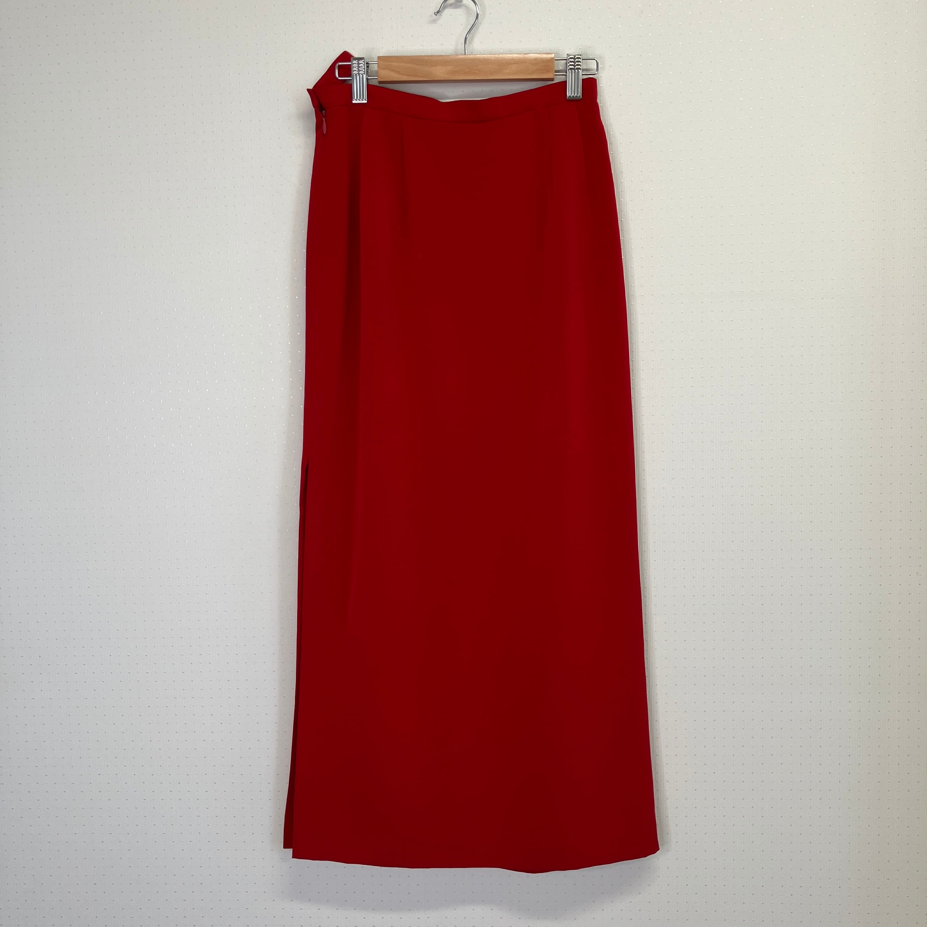 お手入れ: ドライクリーニング (ネット使用)鮮やかなレッドのロングスカート、サイズ11。