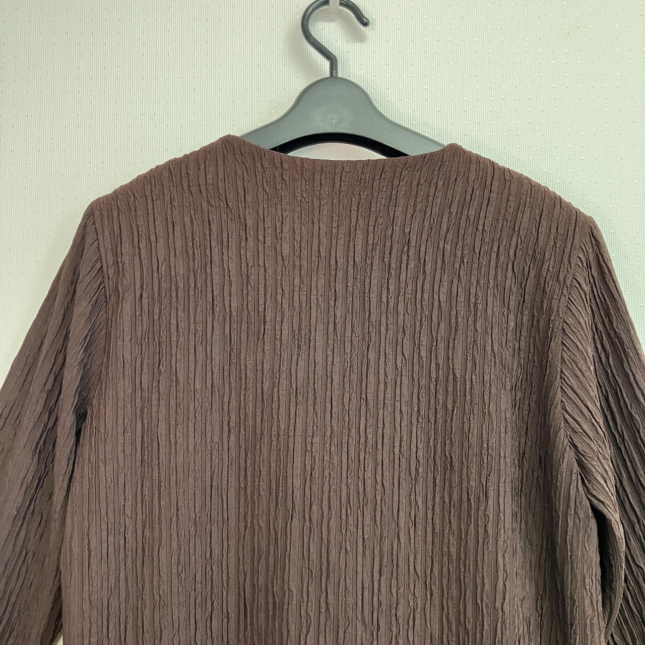 VIANTE ビアンテ ブラウン 凹凸プリーツ調 カーディガン ジャケット ノーカラー L相当 韓国製