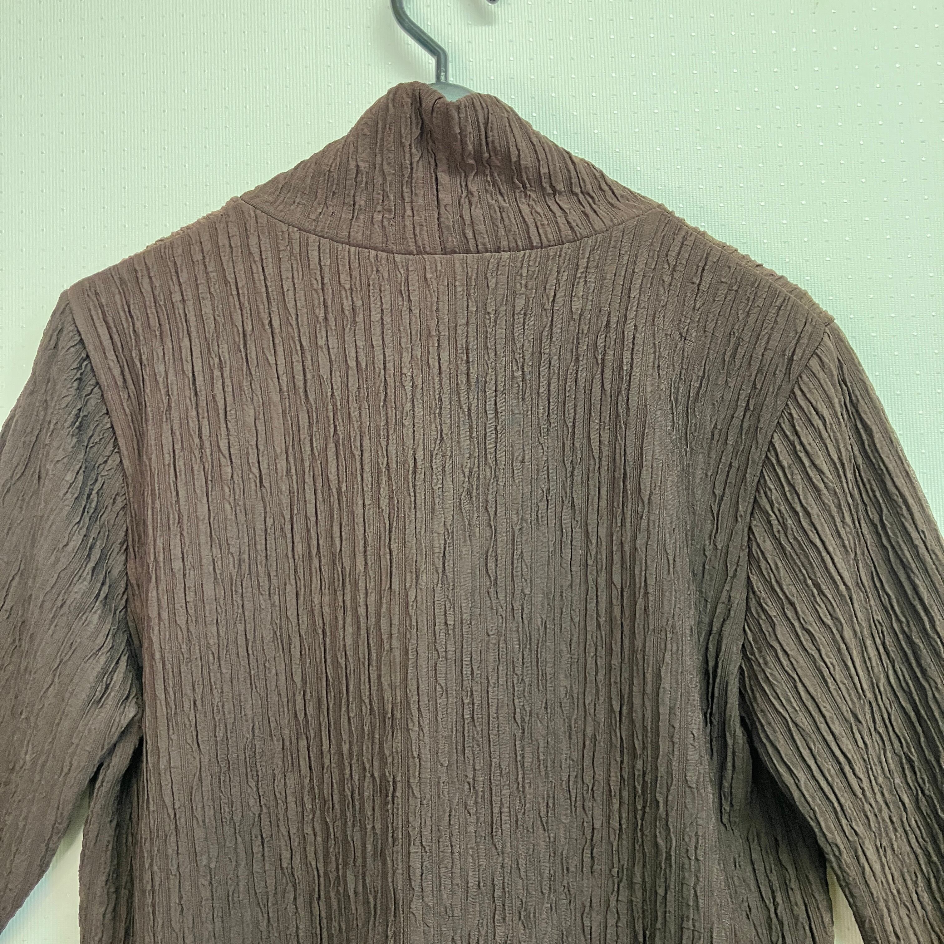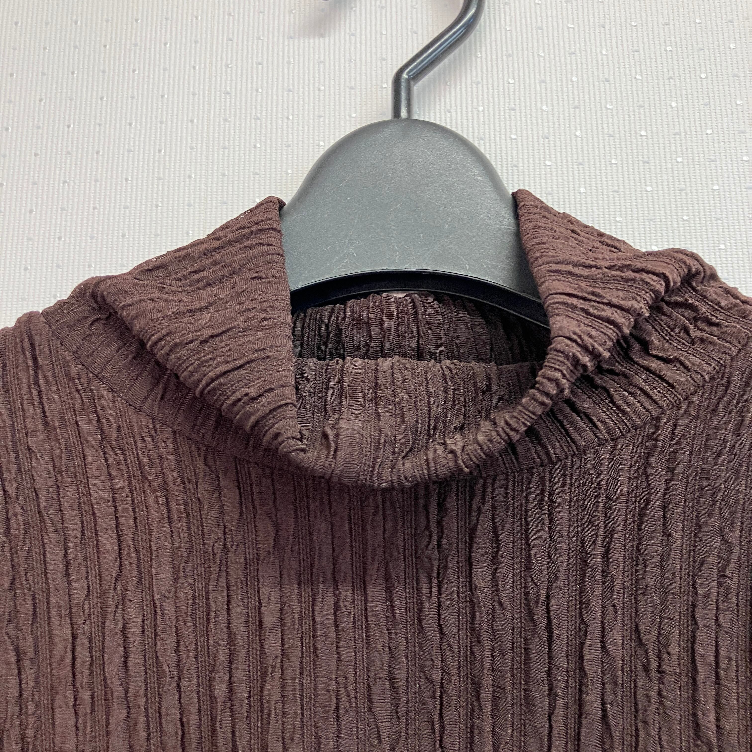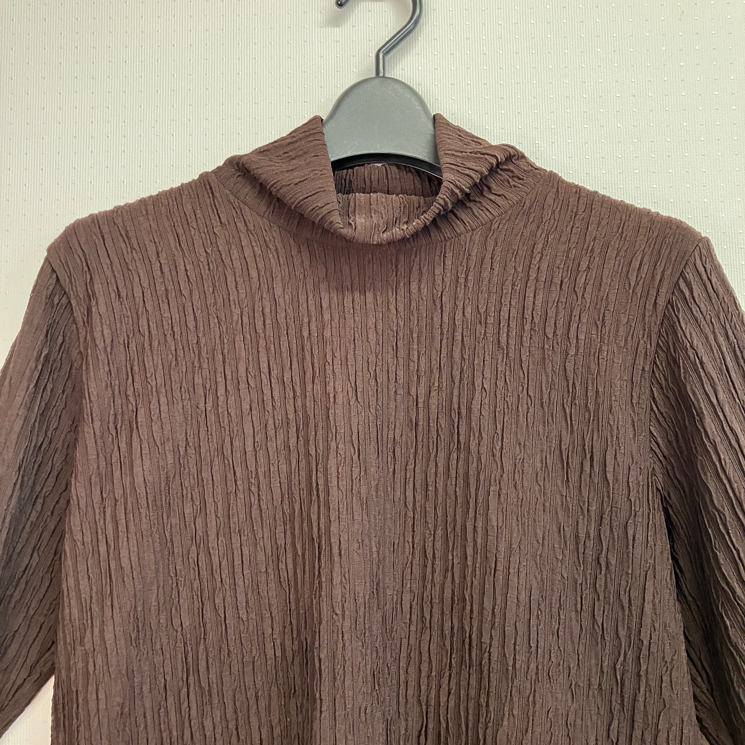 VIANTE ビアンテ ブラウン 凹凸プリーツ調 タートルネック プルオーバー M〜L相当 韓国製