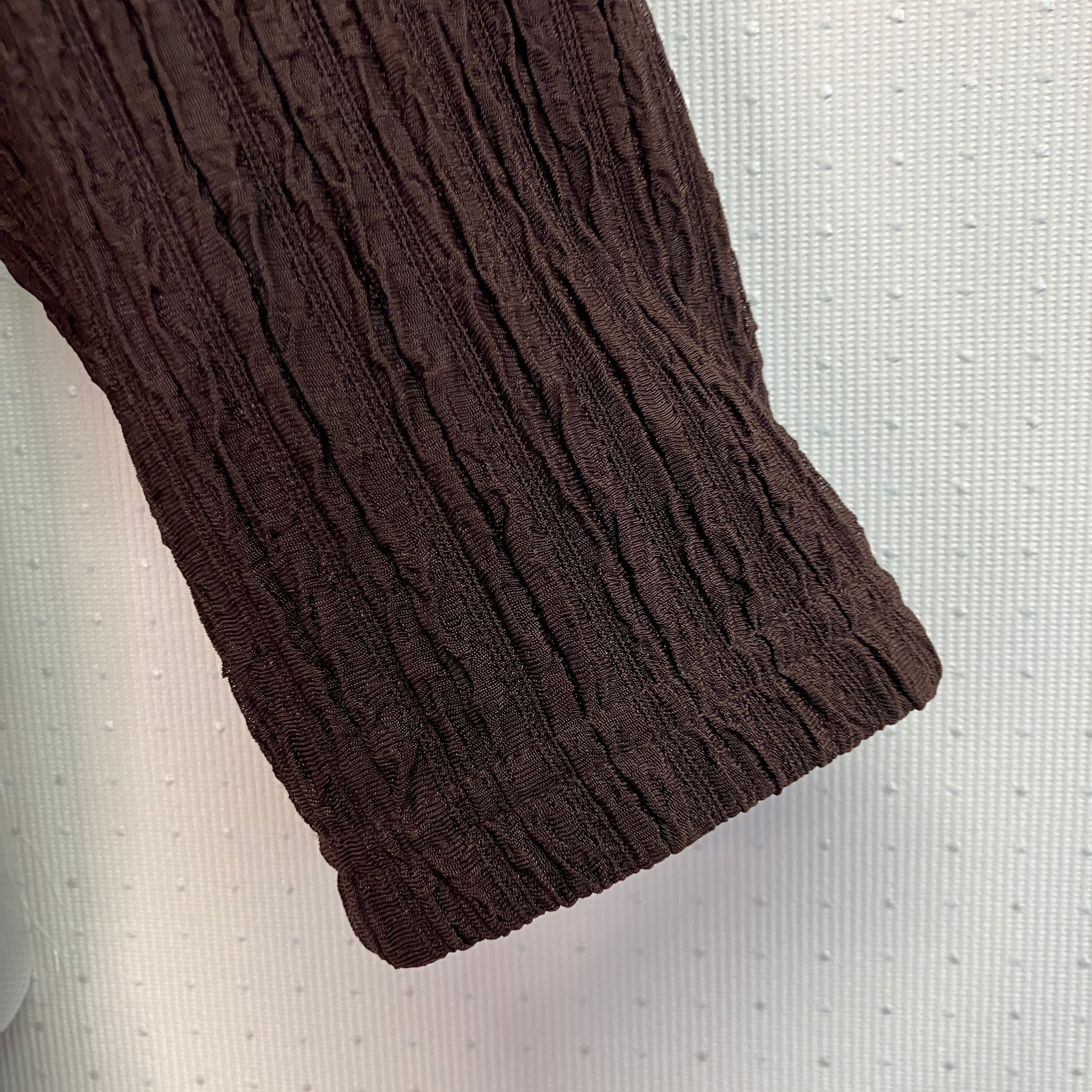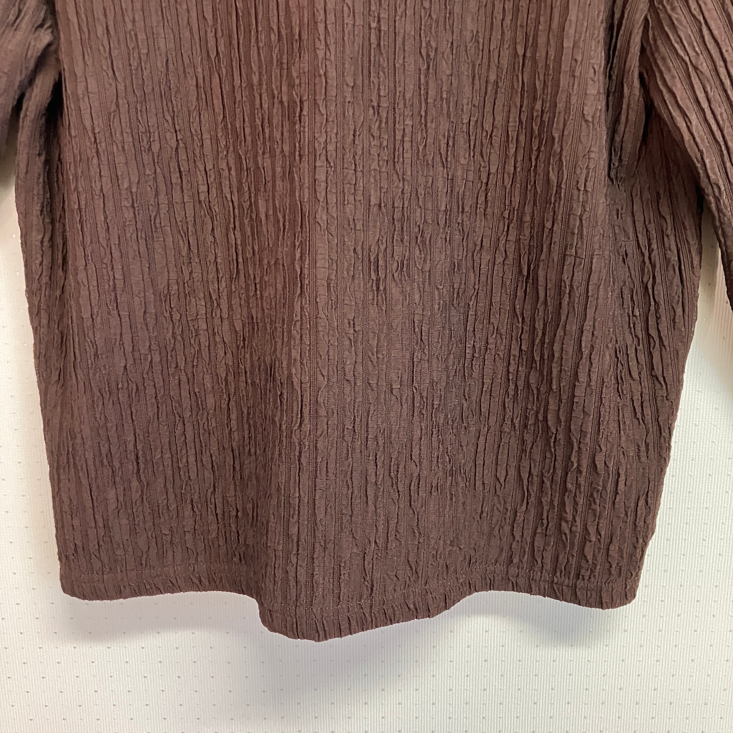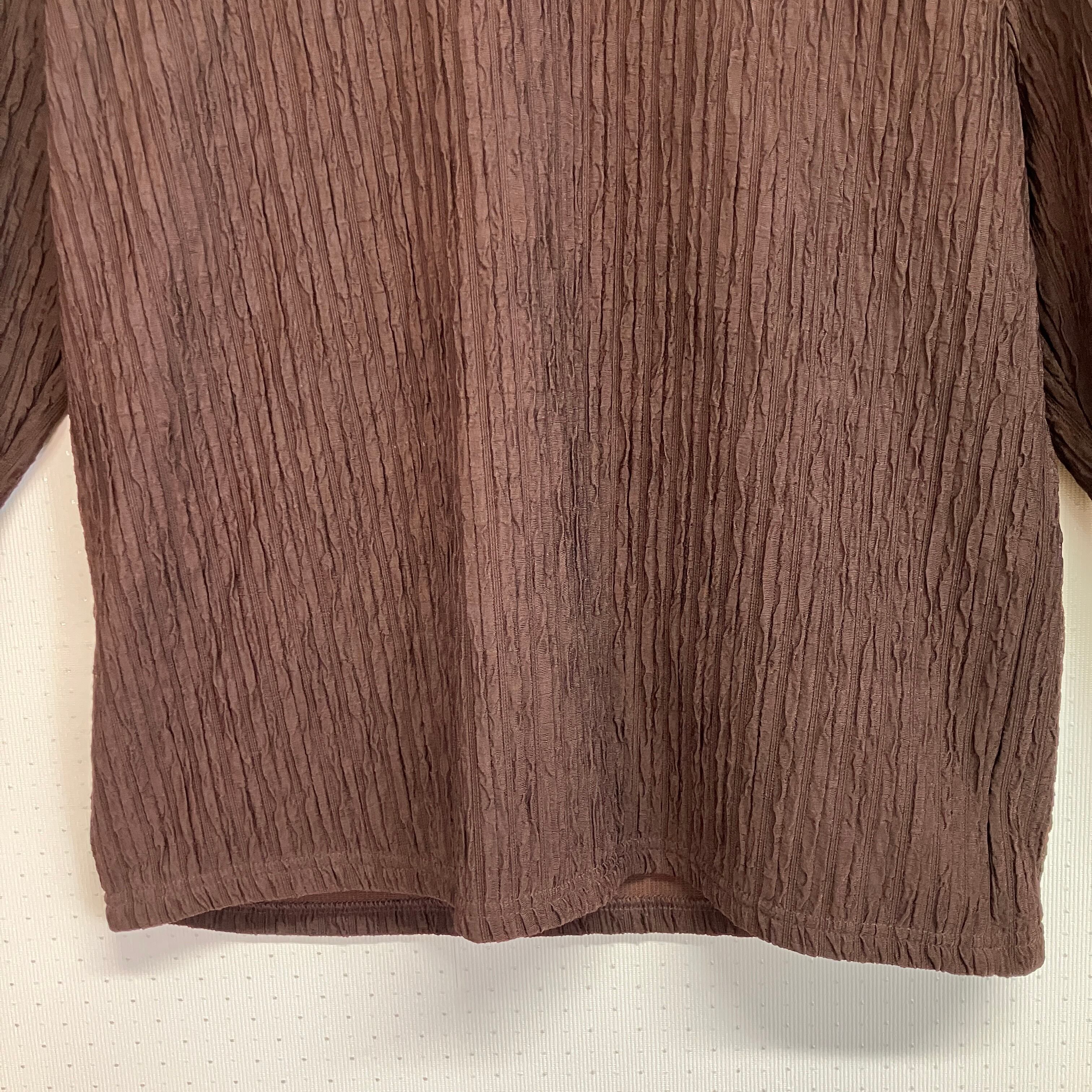 深みのあるブラウンで、細かな凹凸のあるプリーツ調の生地が特徴的です。