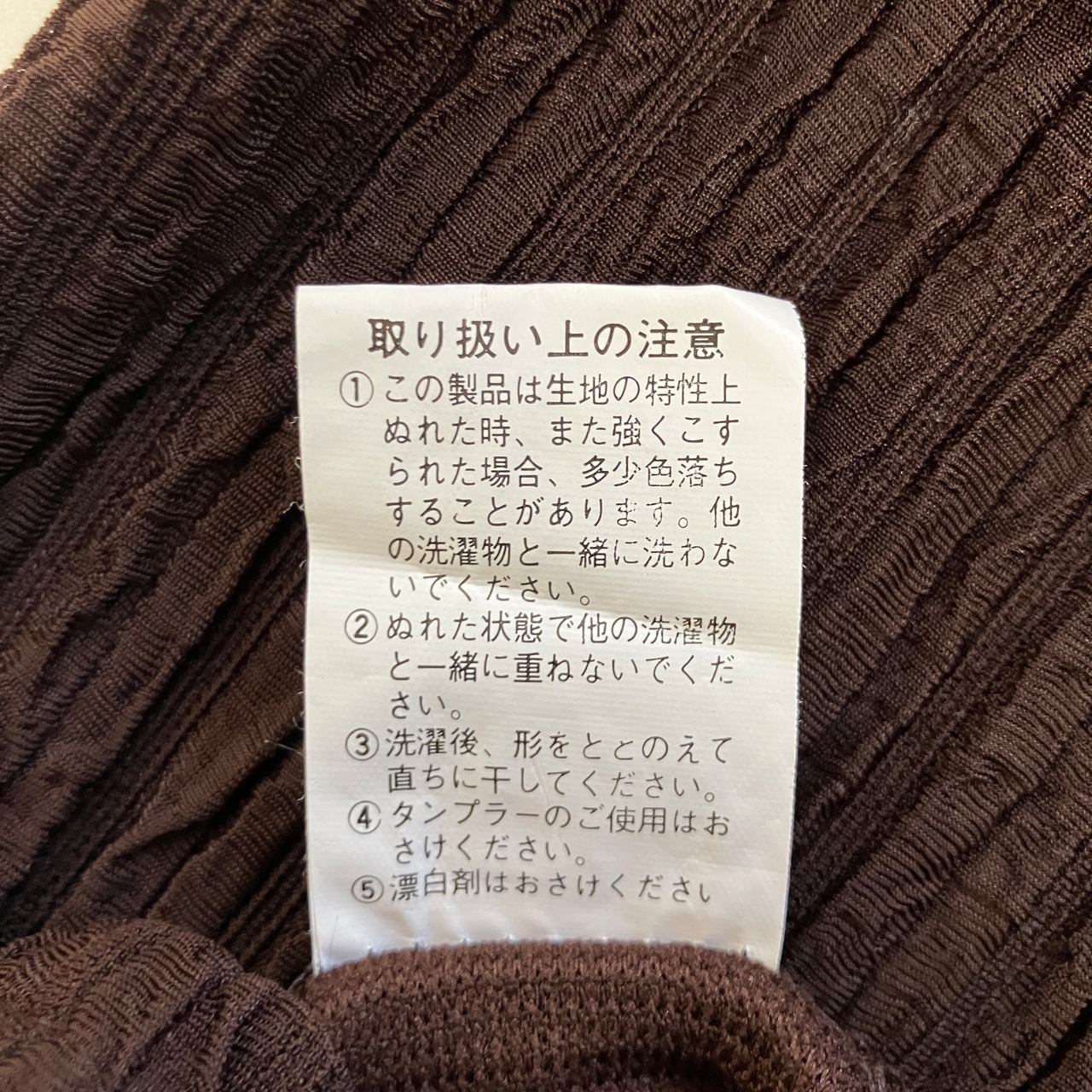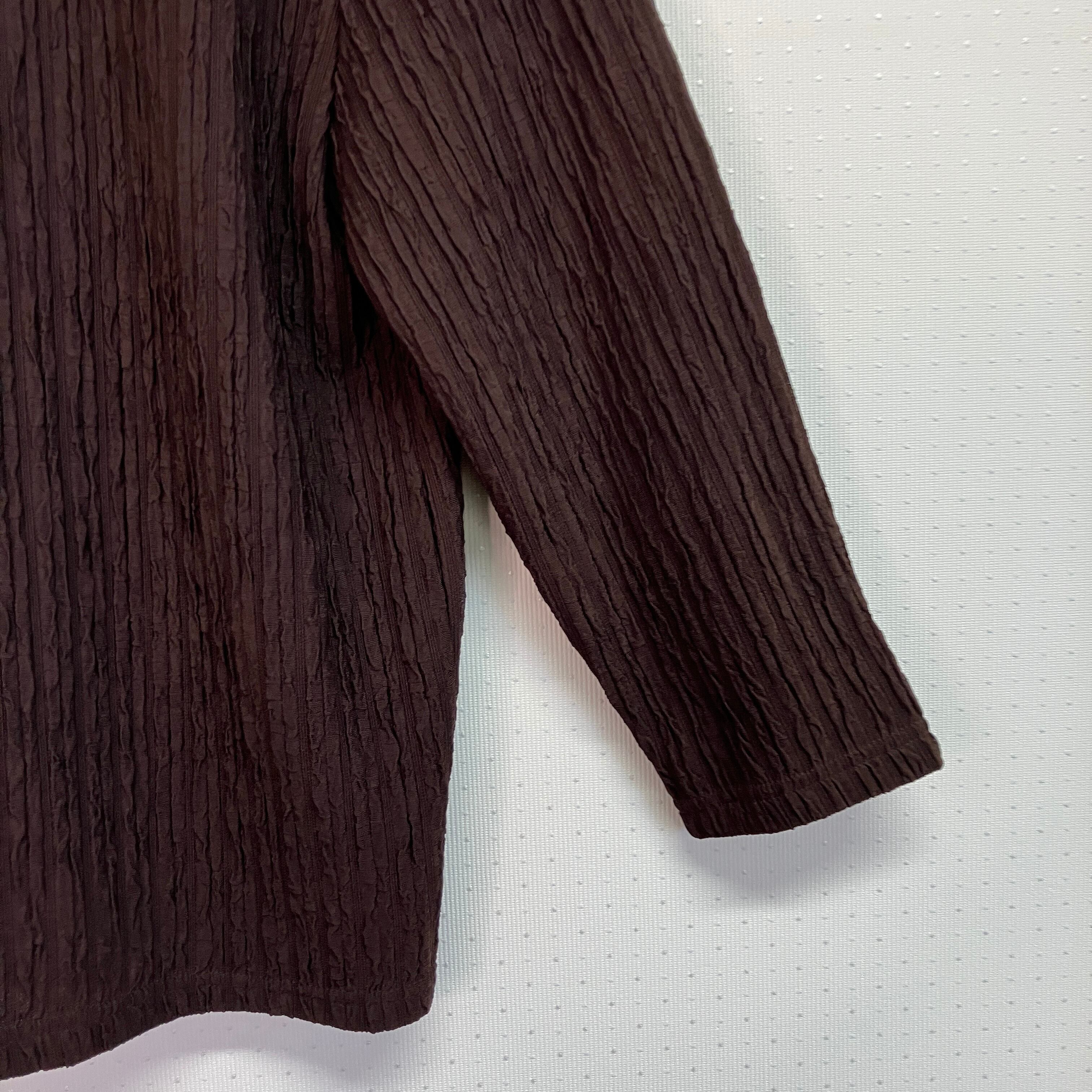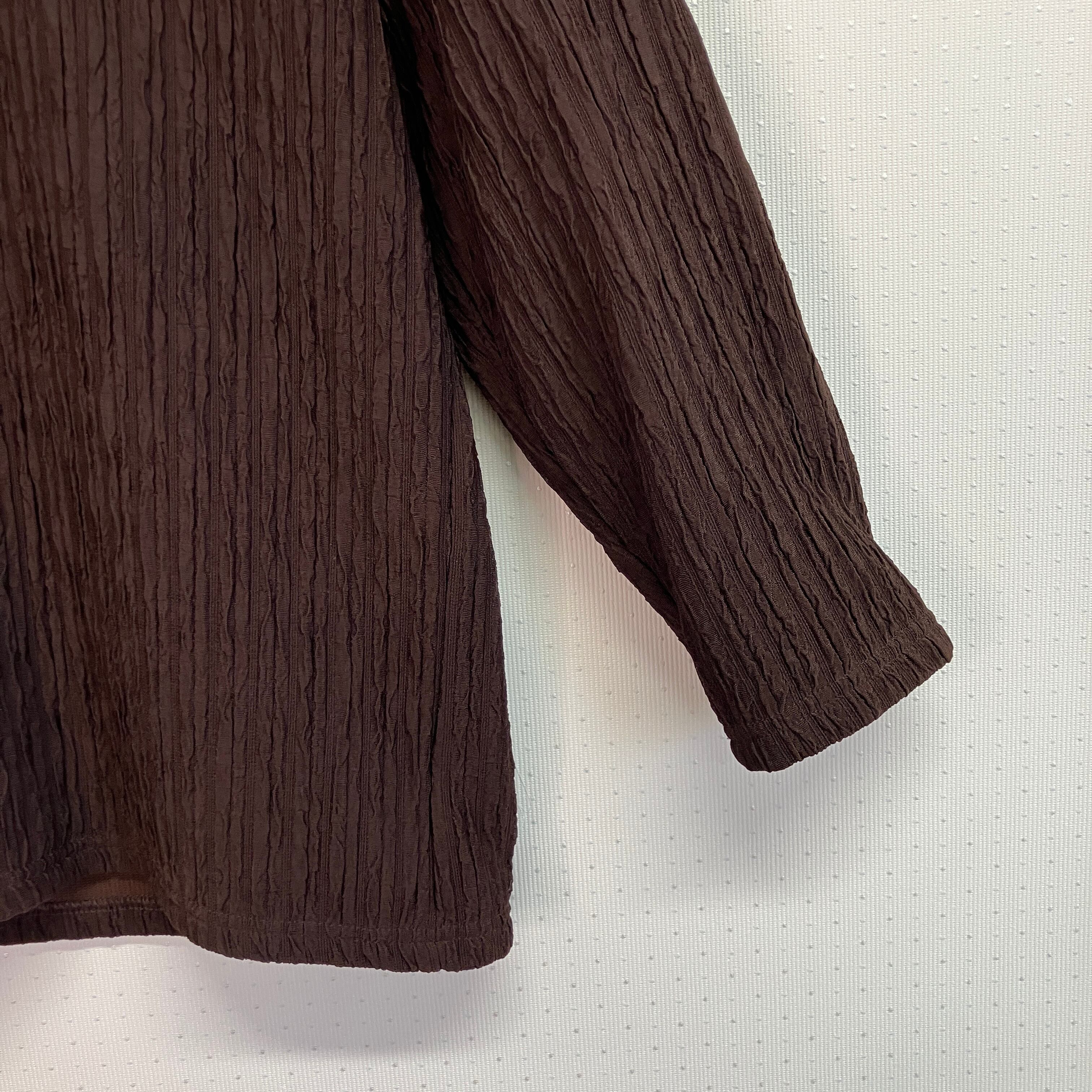 深みのあるブラウンで、細かな凹凸のあるプリーツ調の生地が特徴的です。