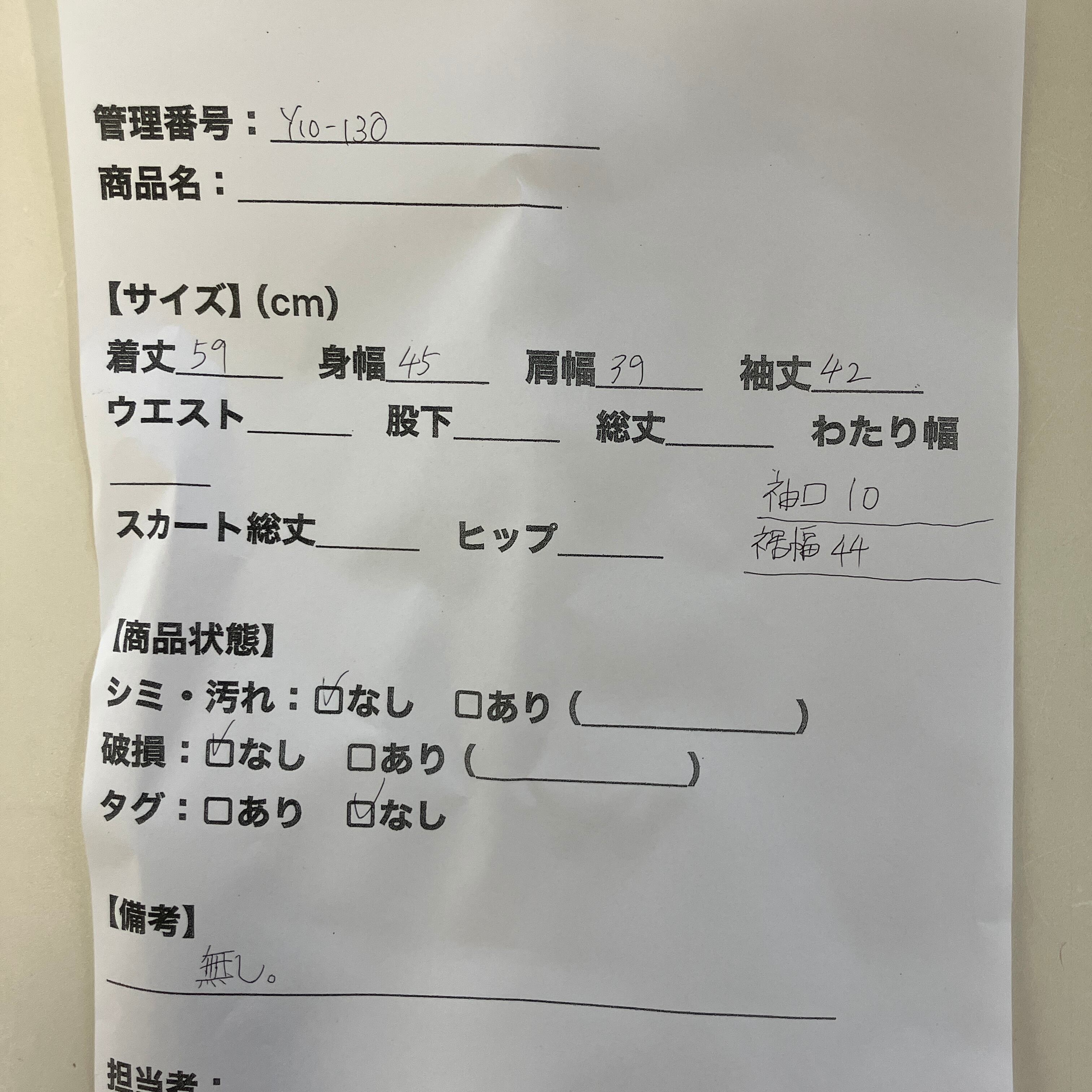 管理番号:Y10-130#てまいらずアパレル商品一覧