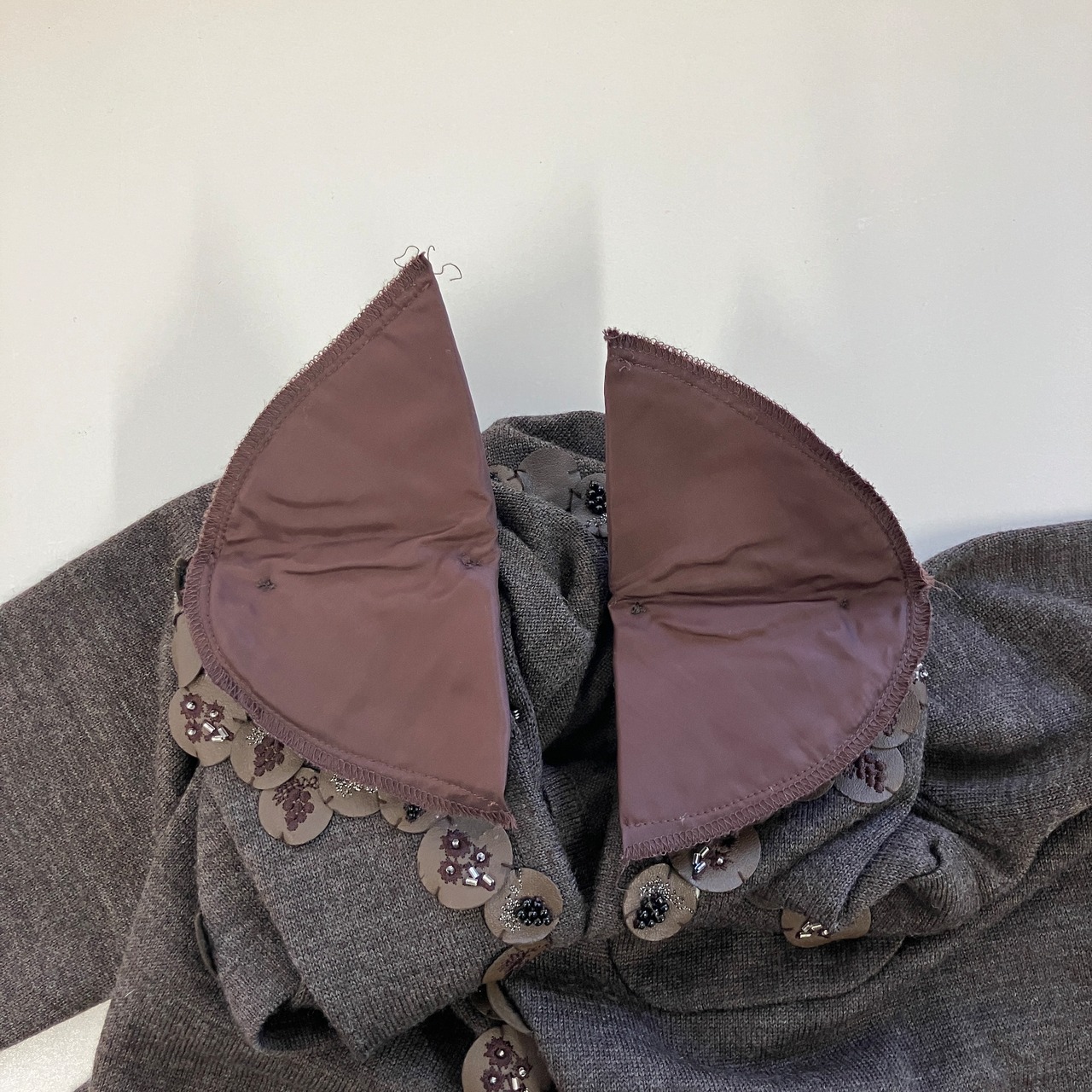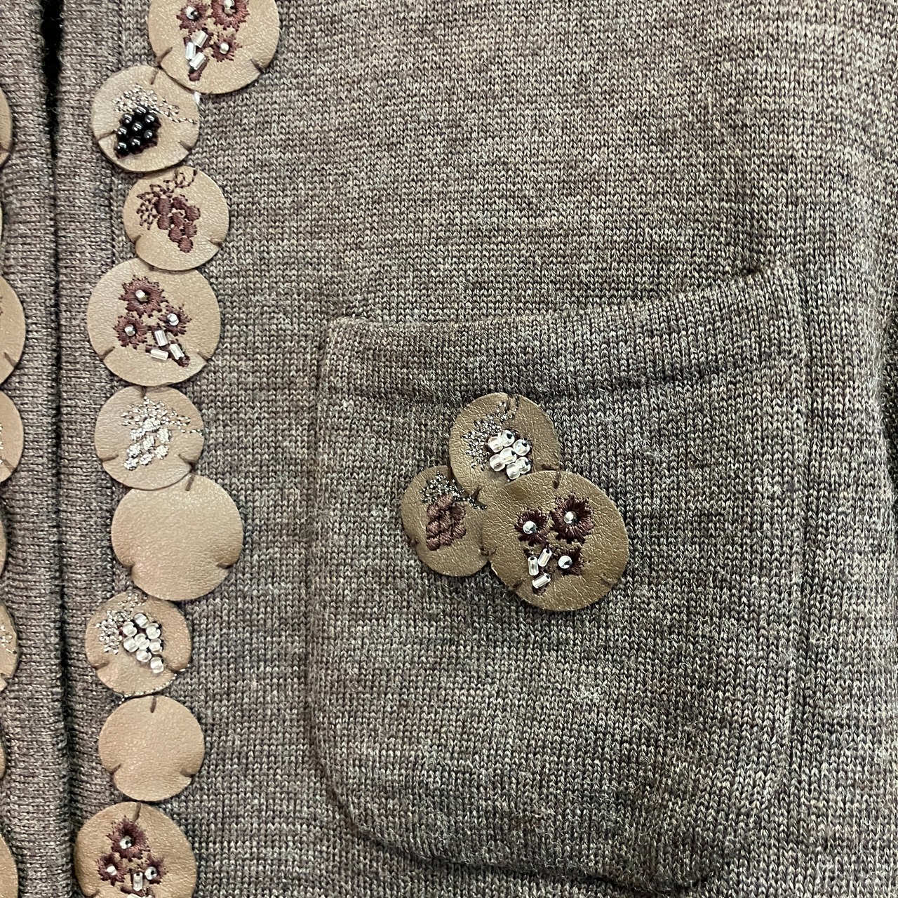 Leilian original レリアン 飾り付 ウール100% ニットジャケット カーディガン 9号 M ブラウン