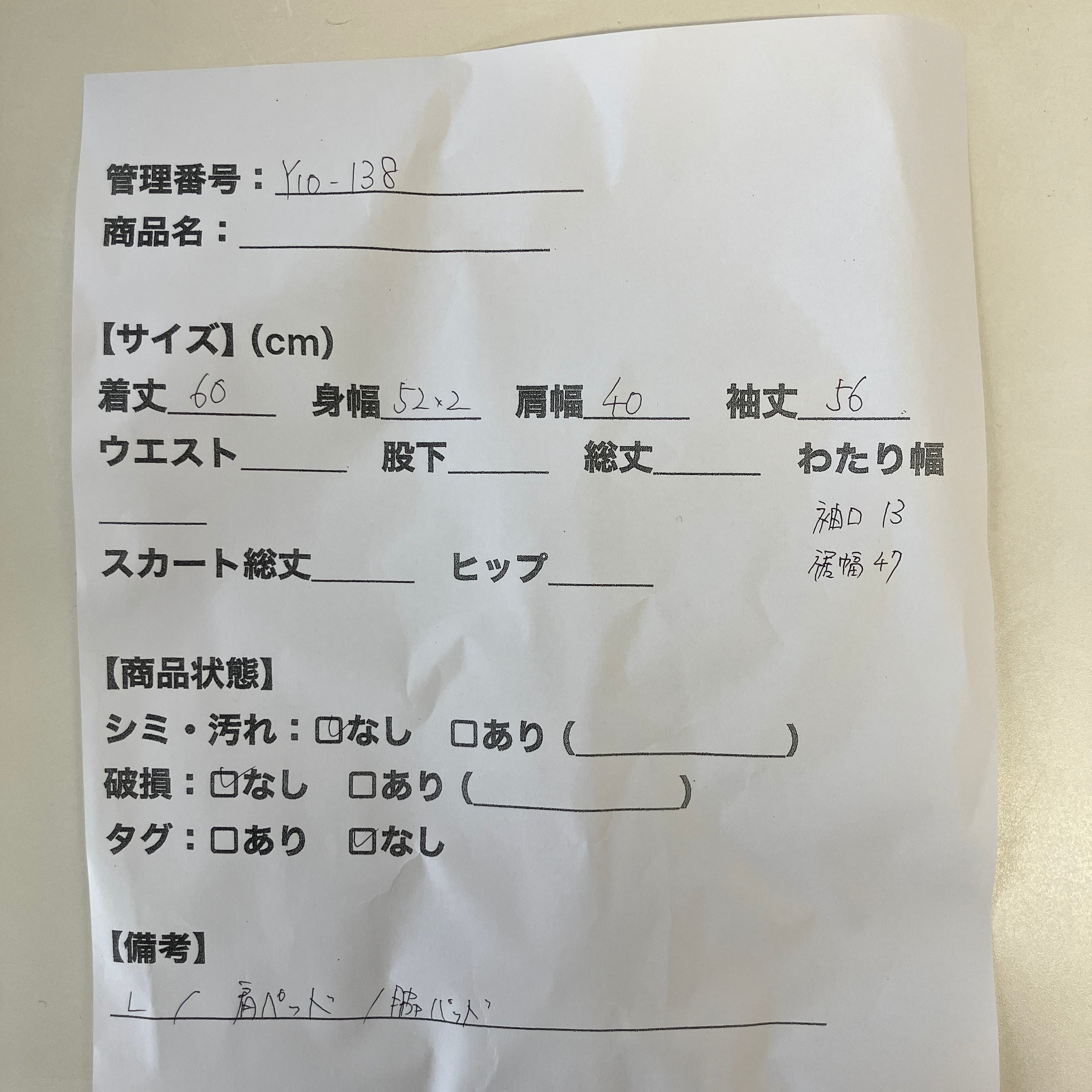 管理番号:Y10-138#てまいらずアパレル商品一覧