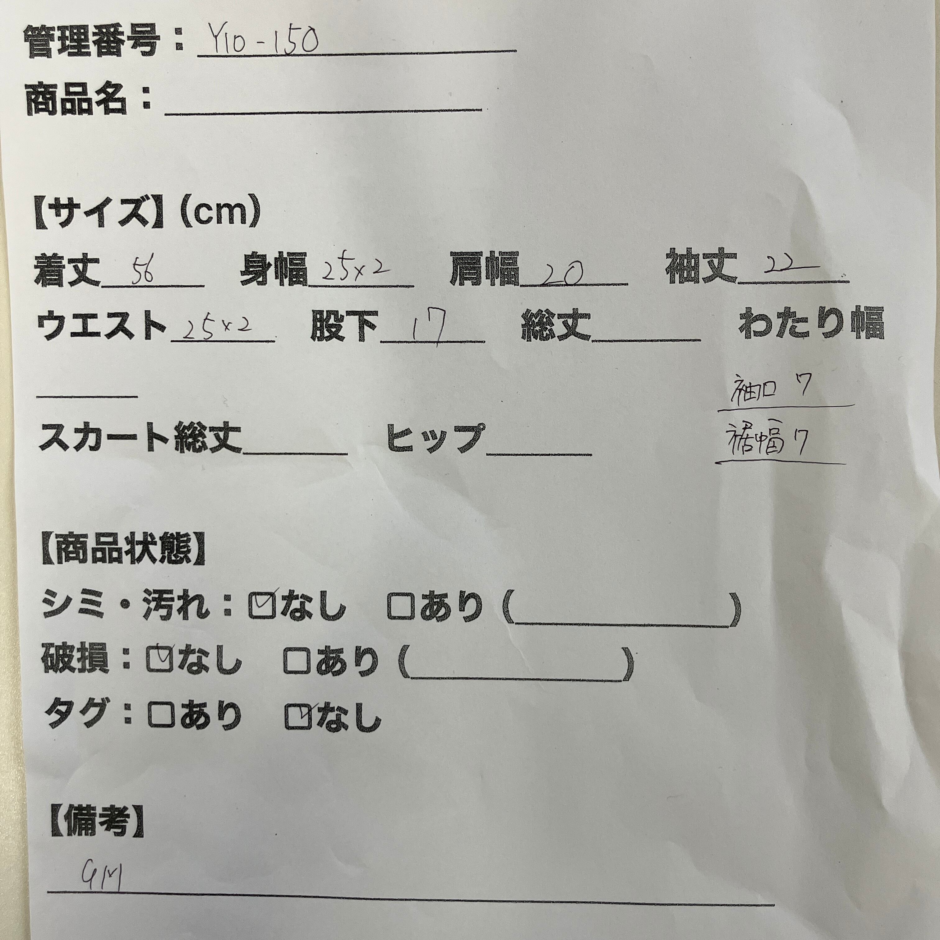 管理番号:Y10-150#てまいらずアパレル商品一覧