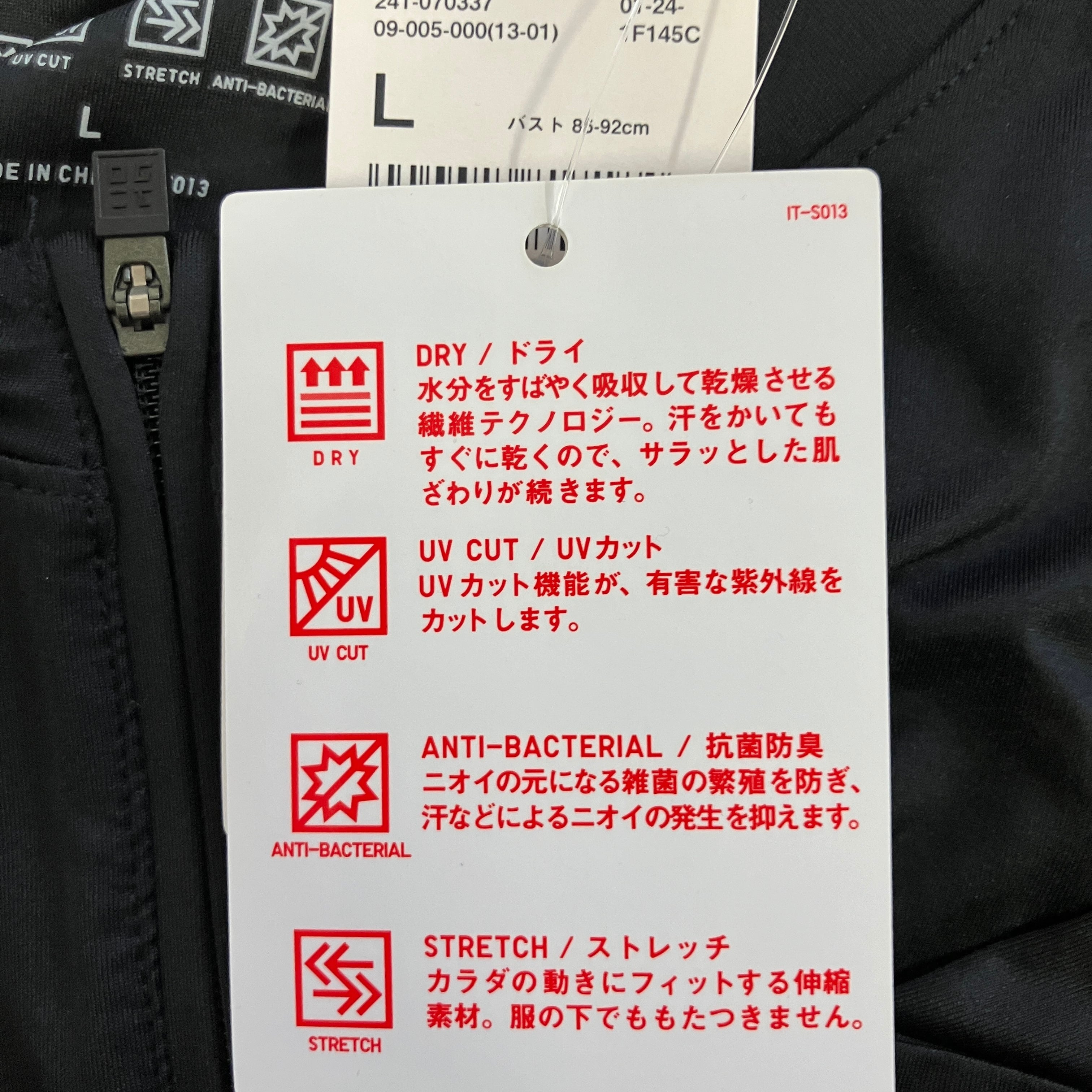 - 機能: ドライ, UVカット, ストレッチ, 抗菌