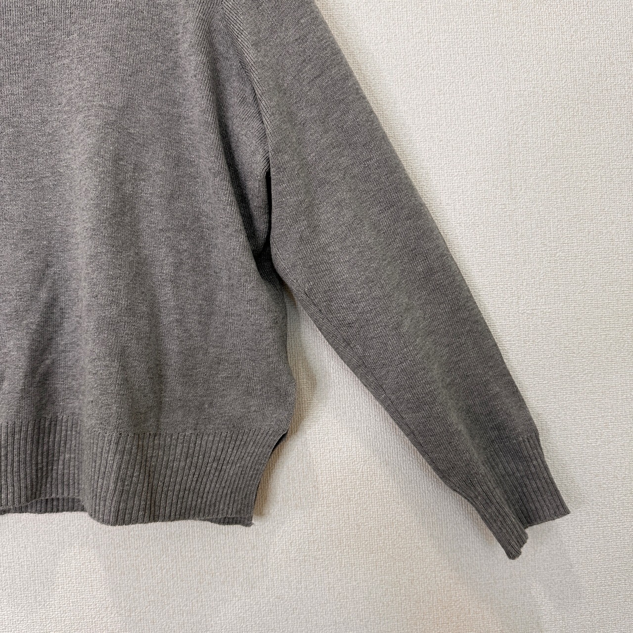 目立った傷や汚れはありませんが、中古品にご理解いただける方のみご購入をお願いいたします。シンプルなグレーのクルーネックセーター、長袖でリブ編みの裾が特徴。