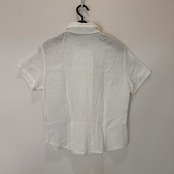 ※第2ボタン第3ボタンの間に染みがある旨、ご留意ください。クレープ素材のホワイト半袖シャツ、ボタン付きデザイン。