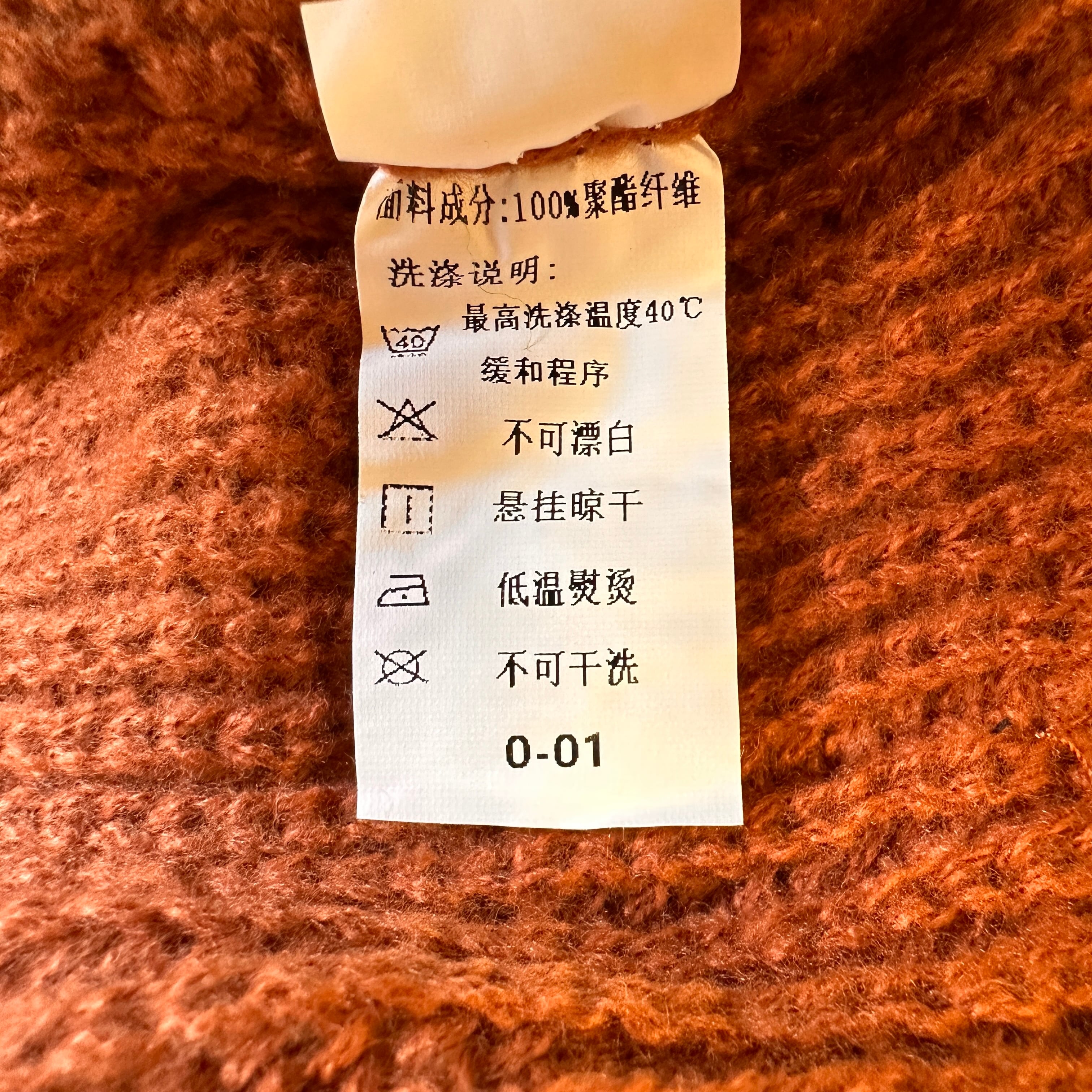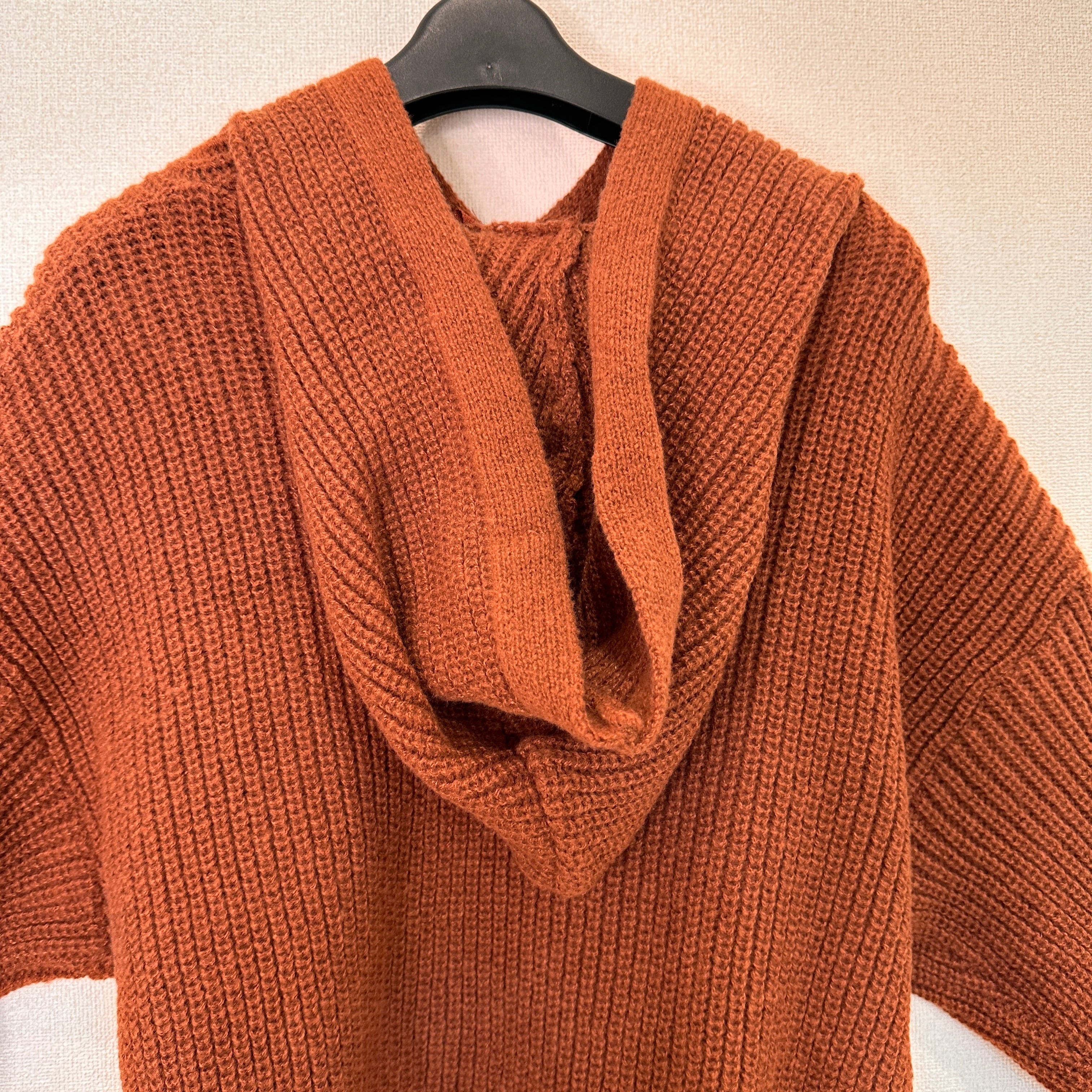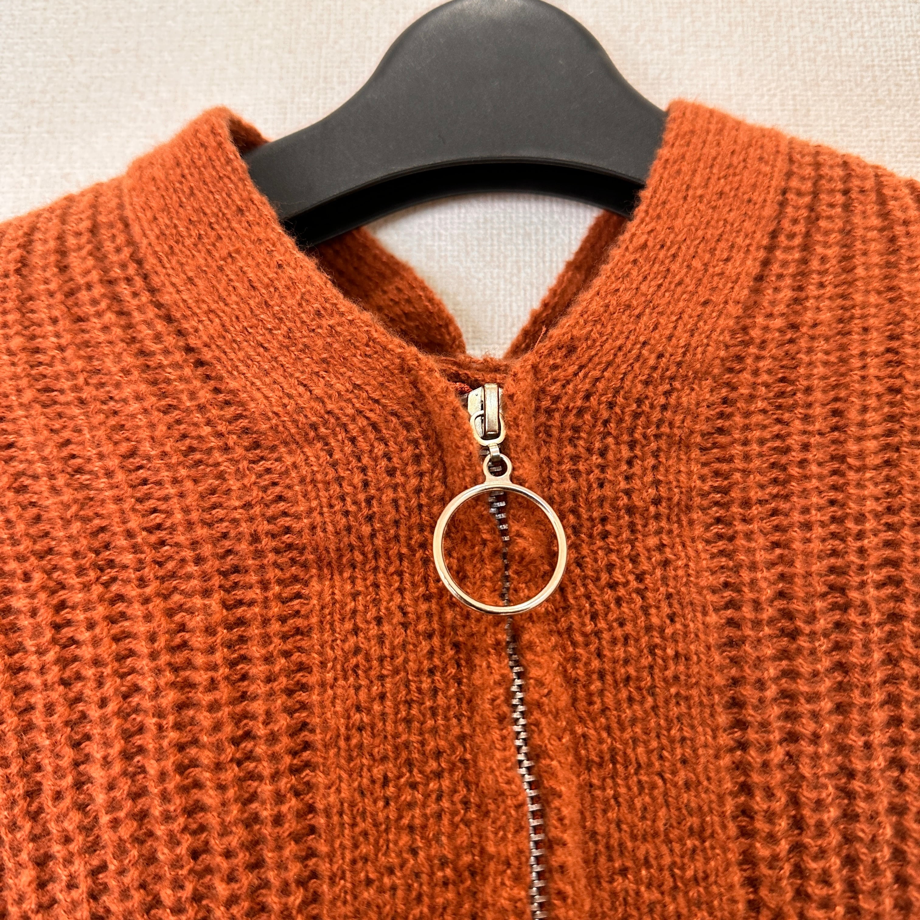 リングジップ ハーフジップ チャンキーニットセーター テラコッタ リブ編み サイズ : M