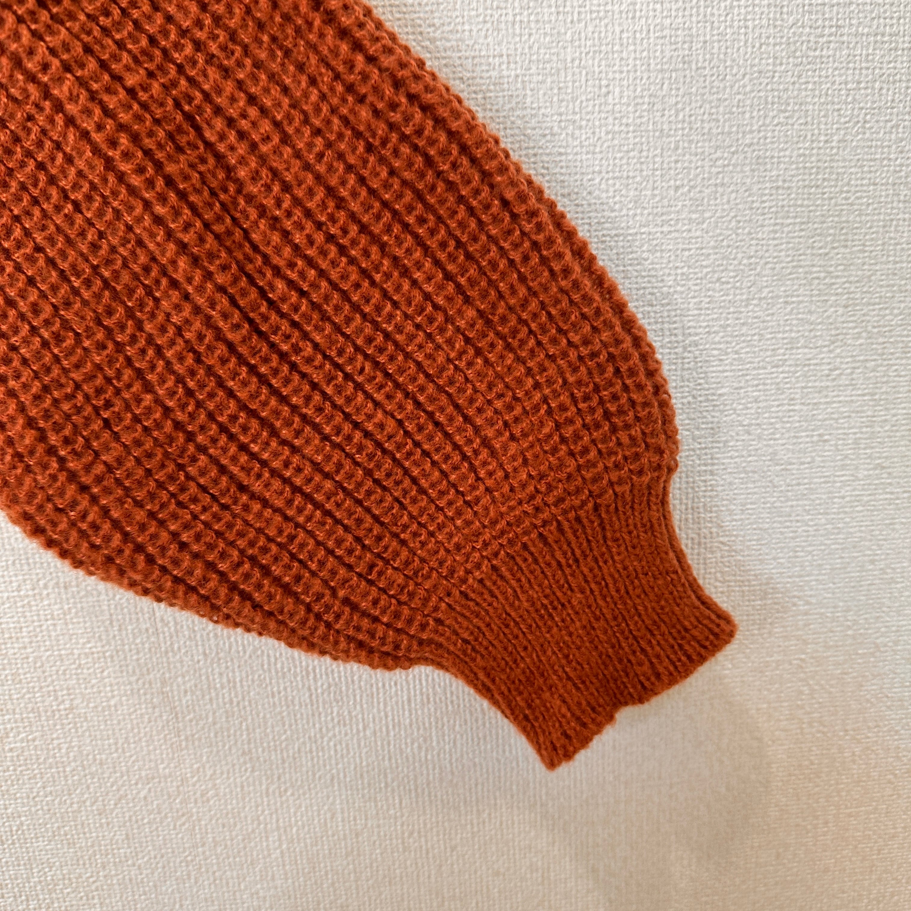 リングジップ ハーフジップ チャンキーニットセーター オレンジ/テラコッタ リブ編み