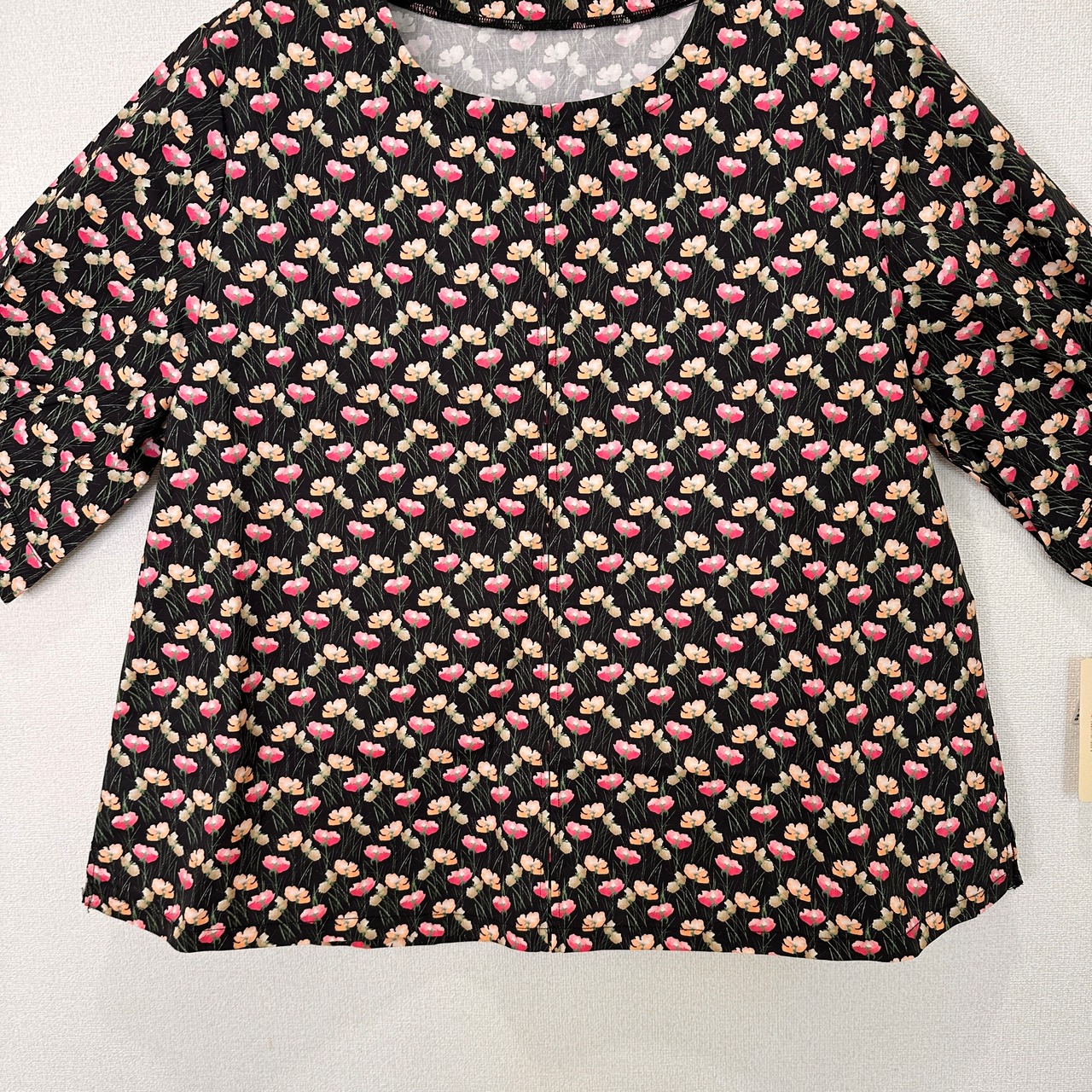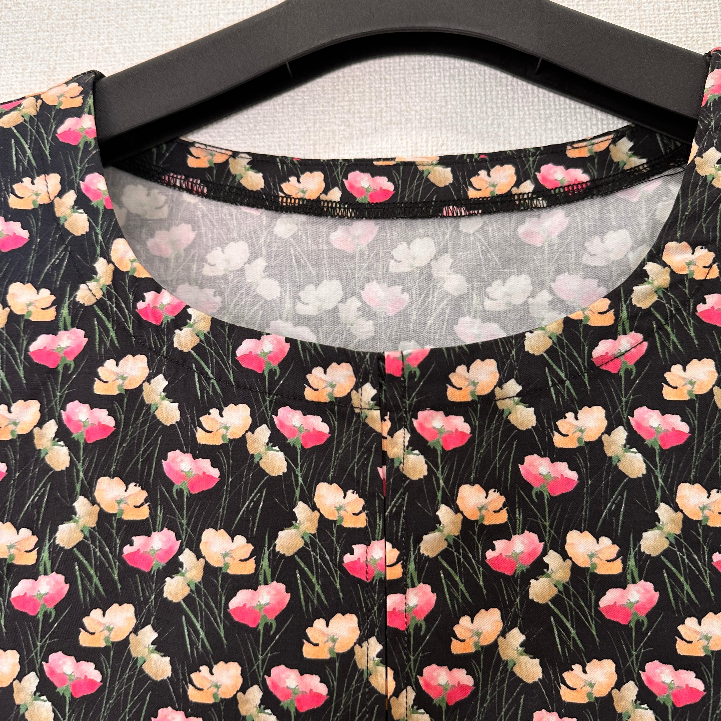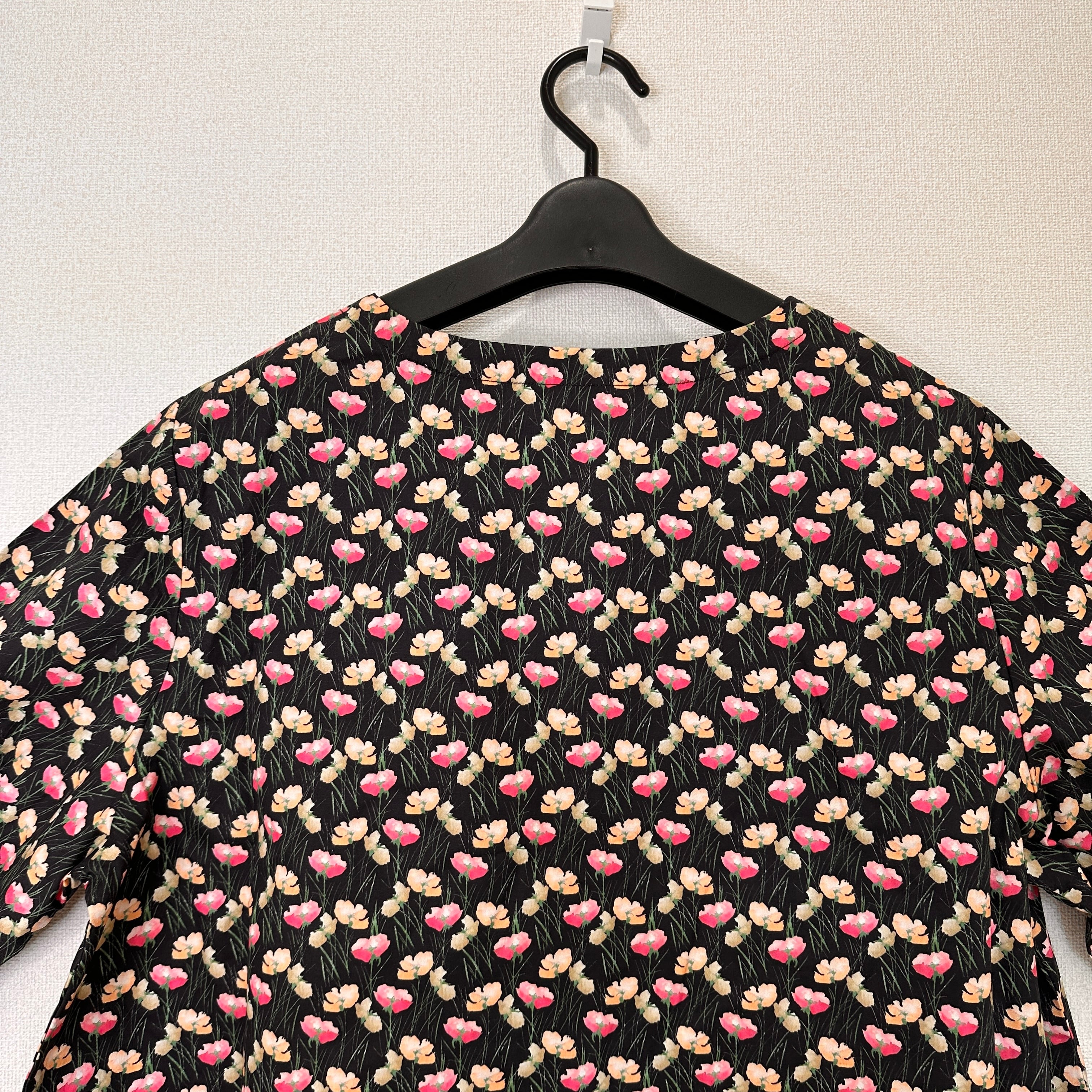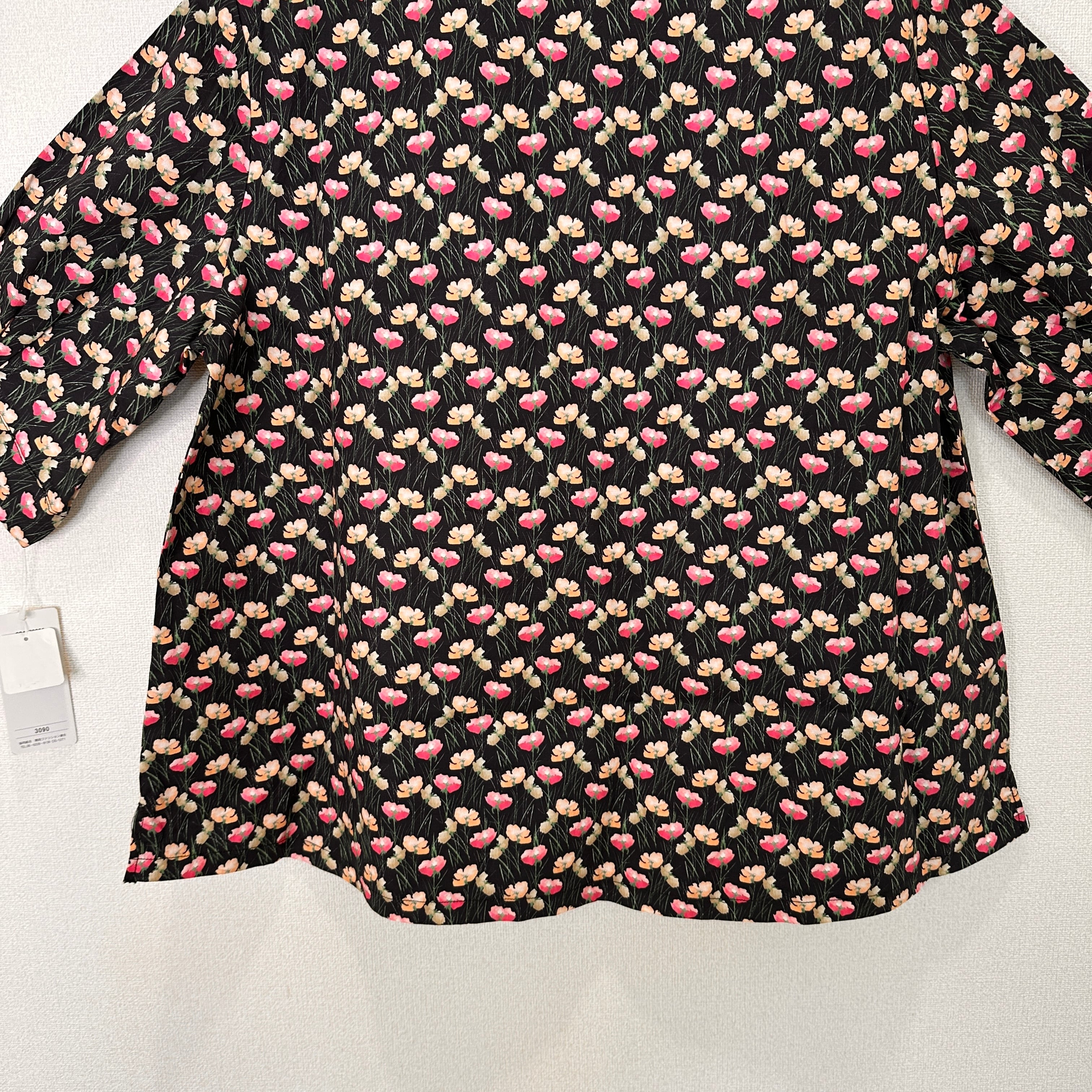 MILAKE 新品 綿100% 花柄プリント ブラウス/カットソー M〜L 黒 七分袖