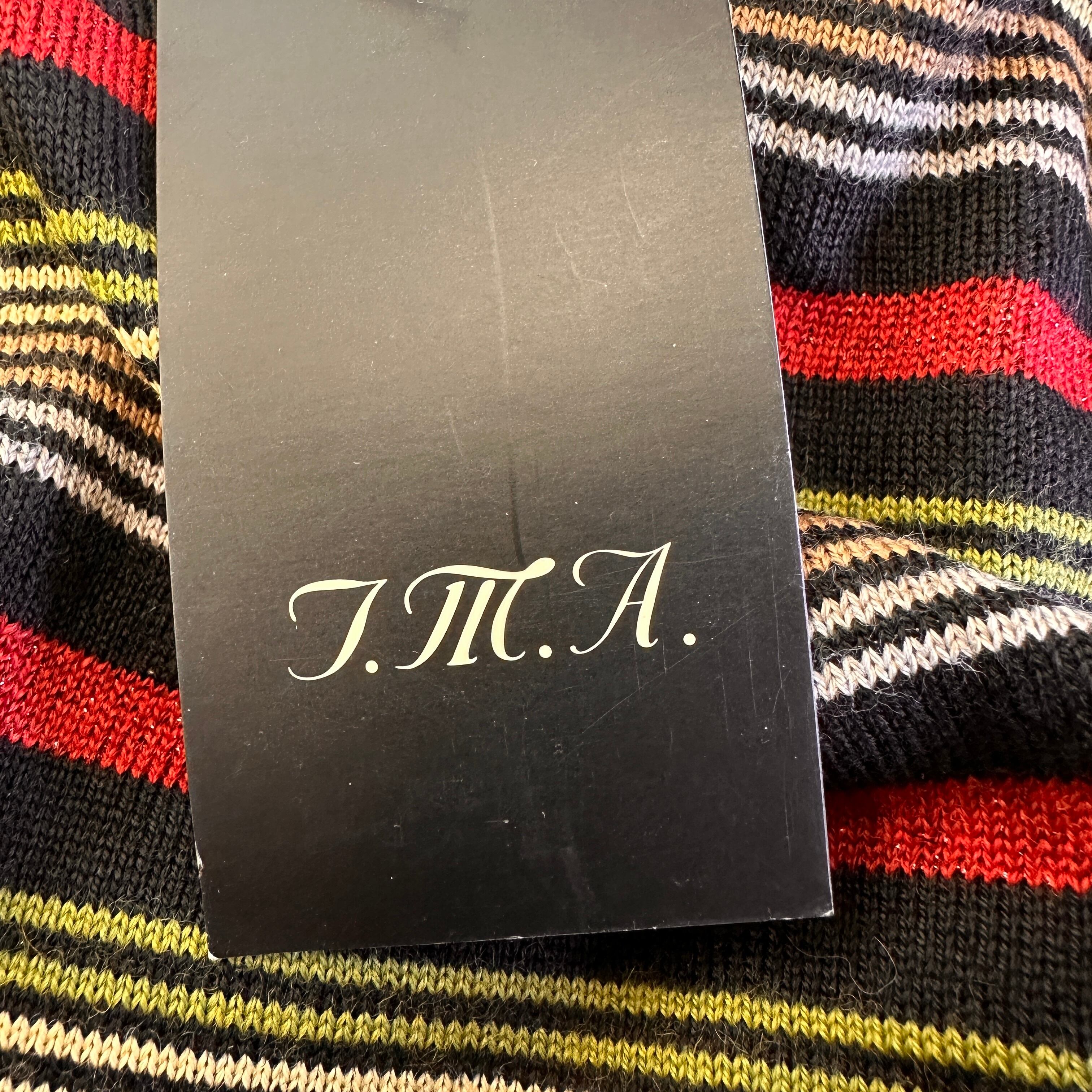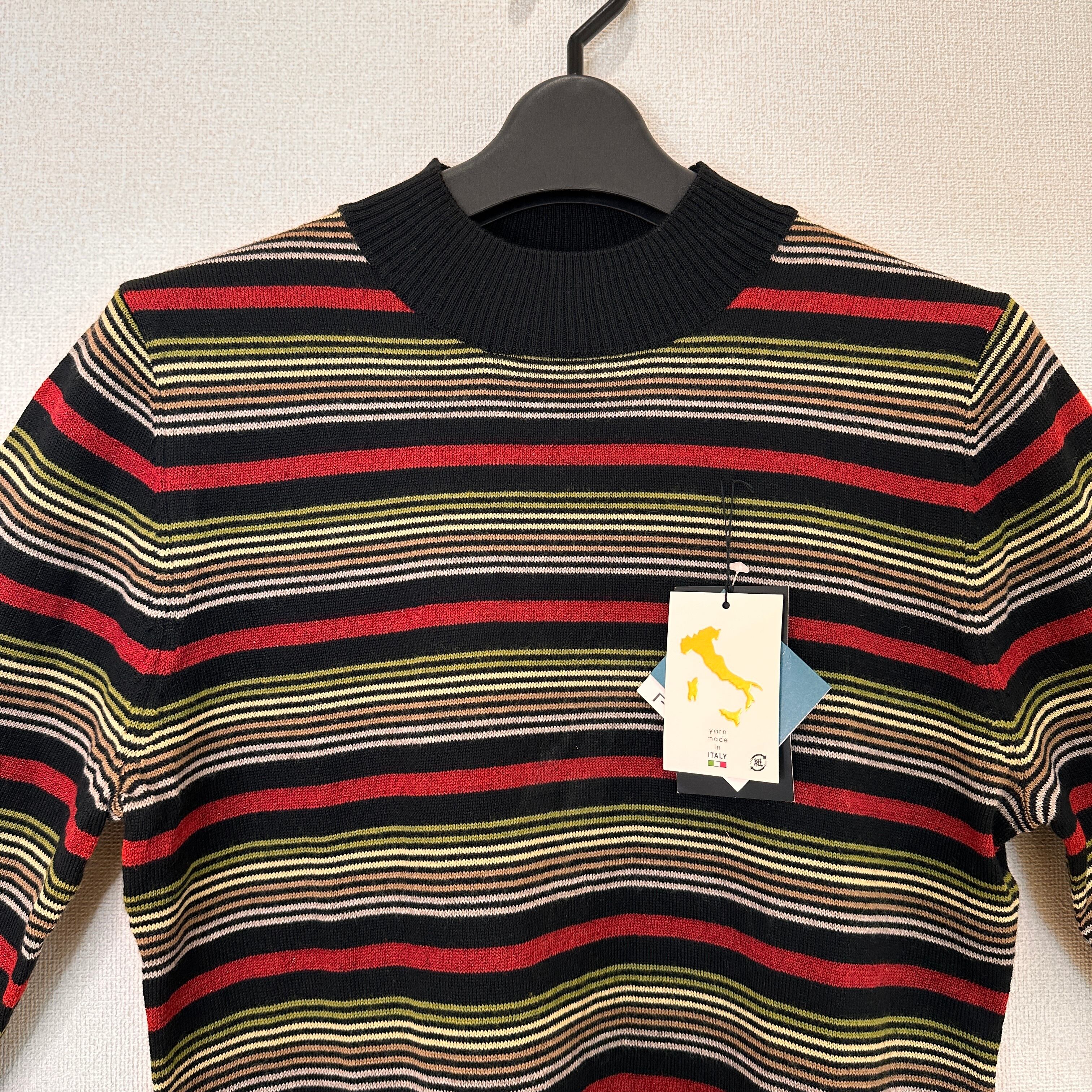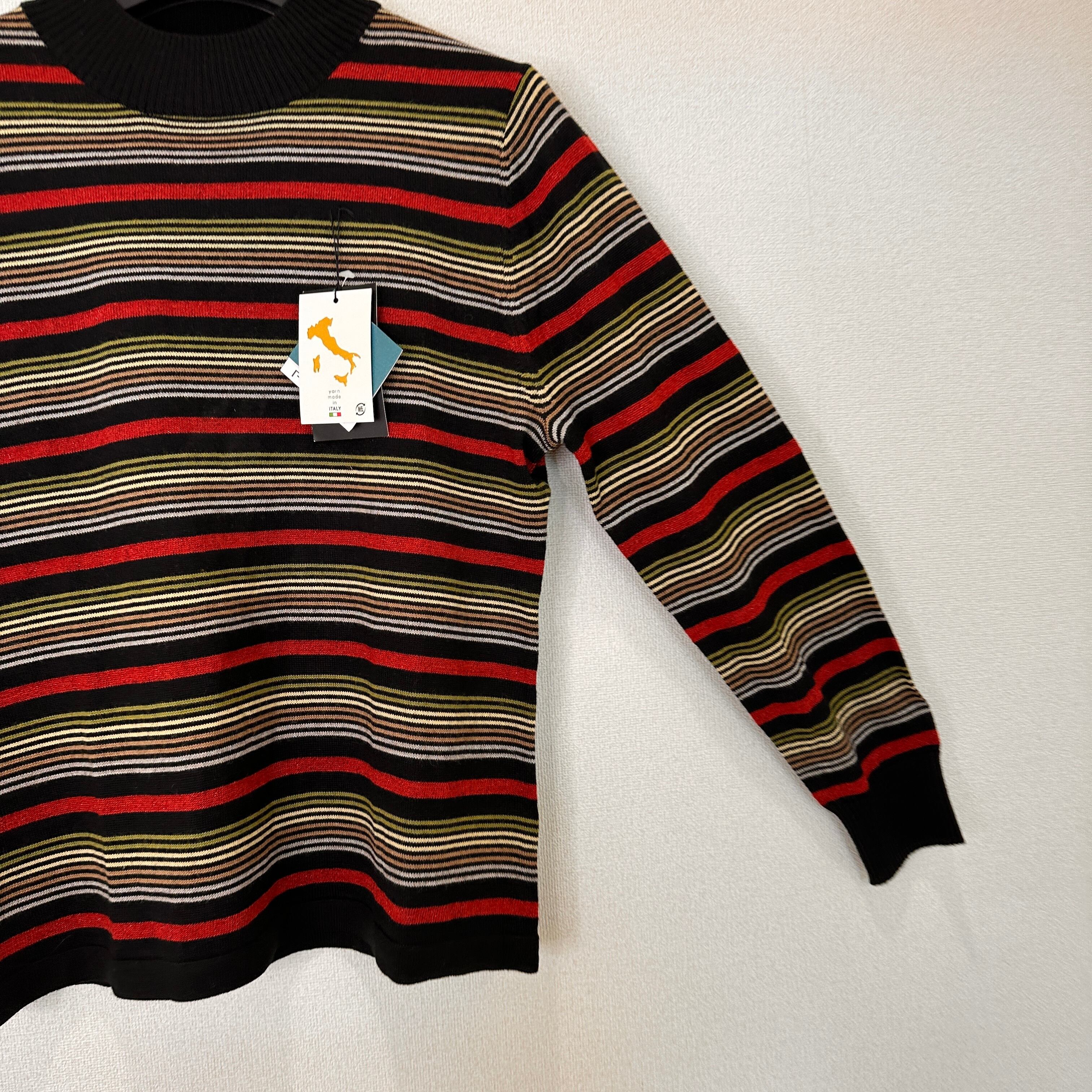 新品タグ付き T.M.A. イタリア糸使用 マルチボーダー ニット M~L モックネック/ハイネック