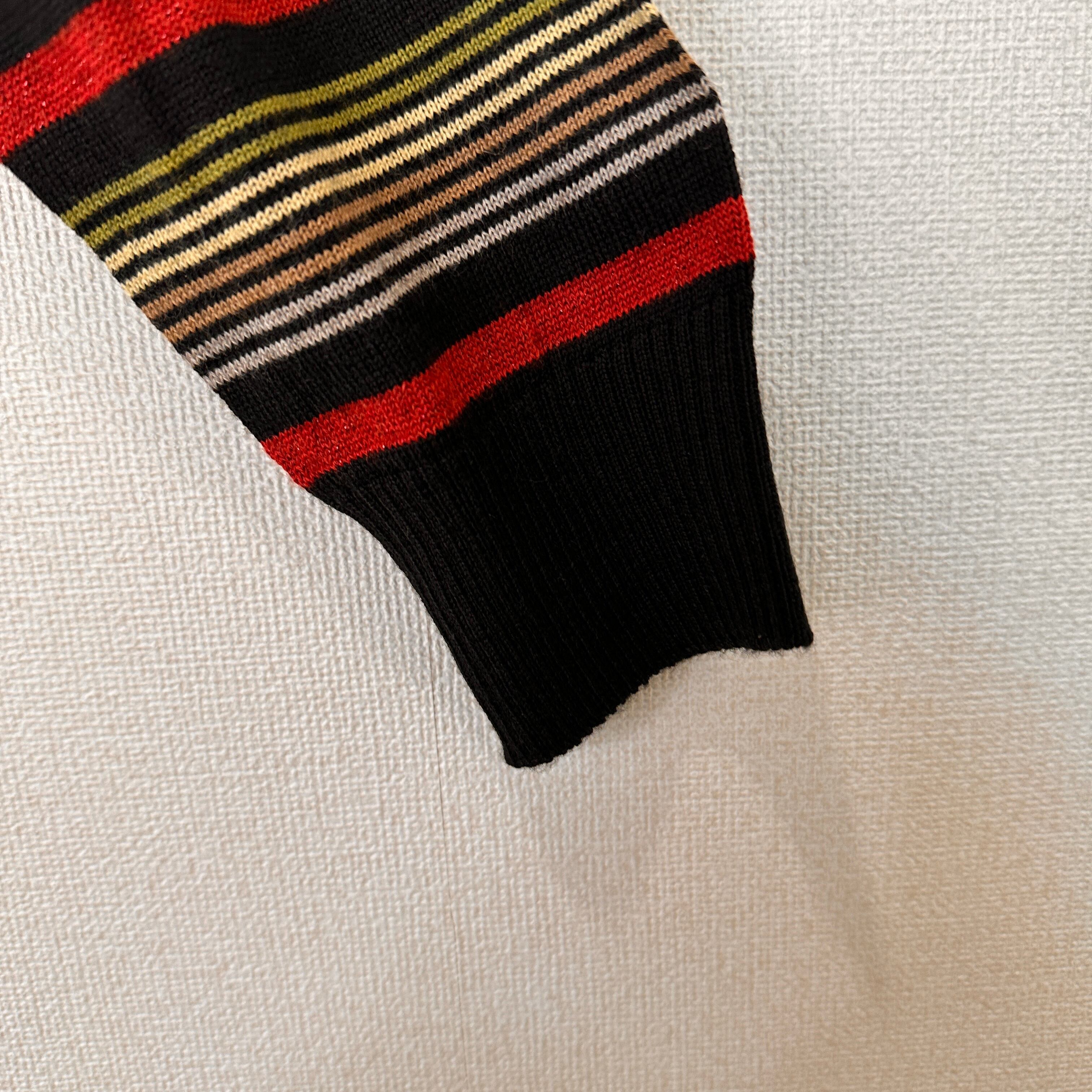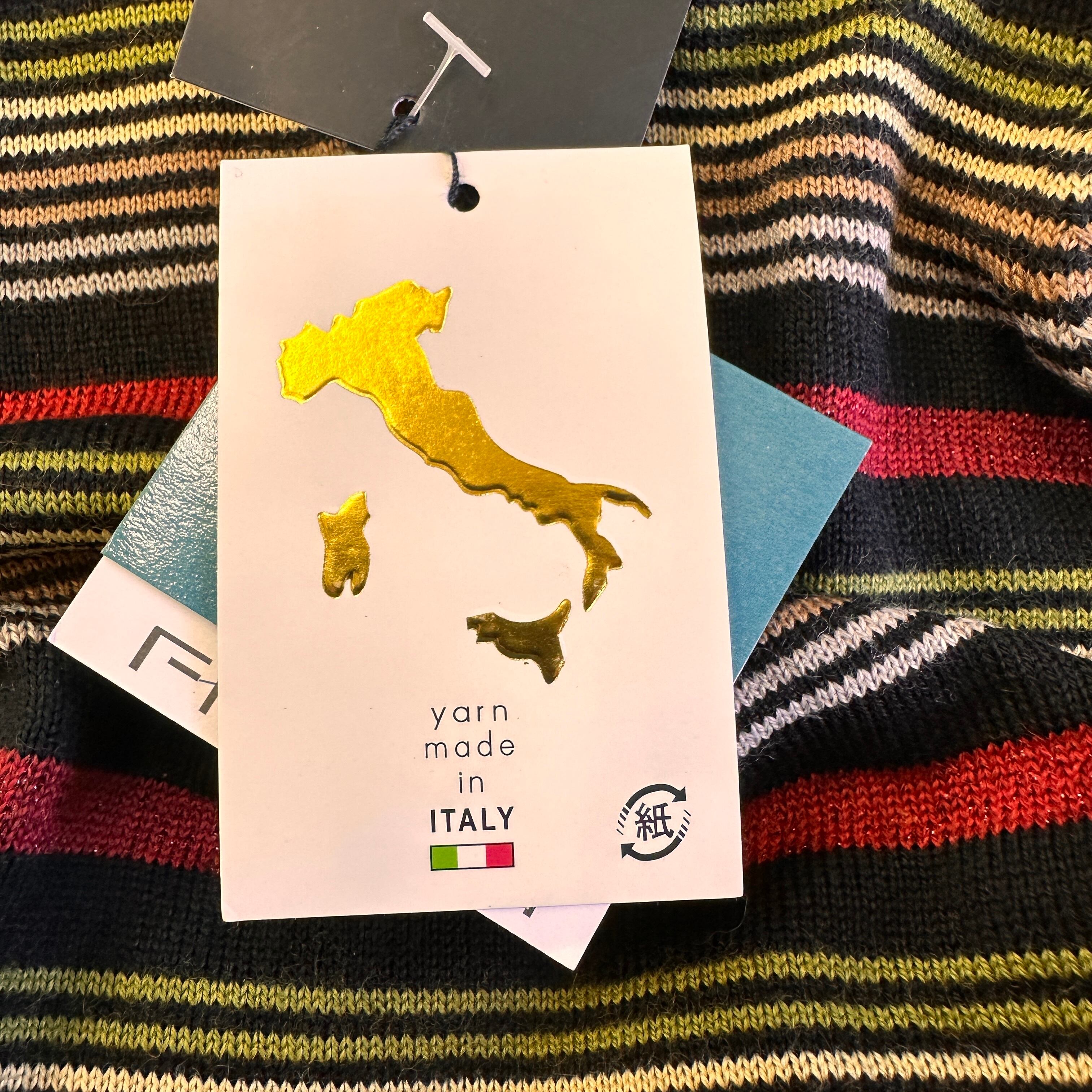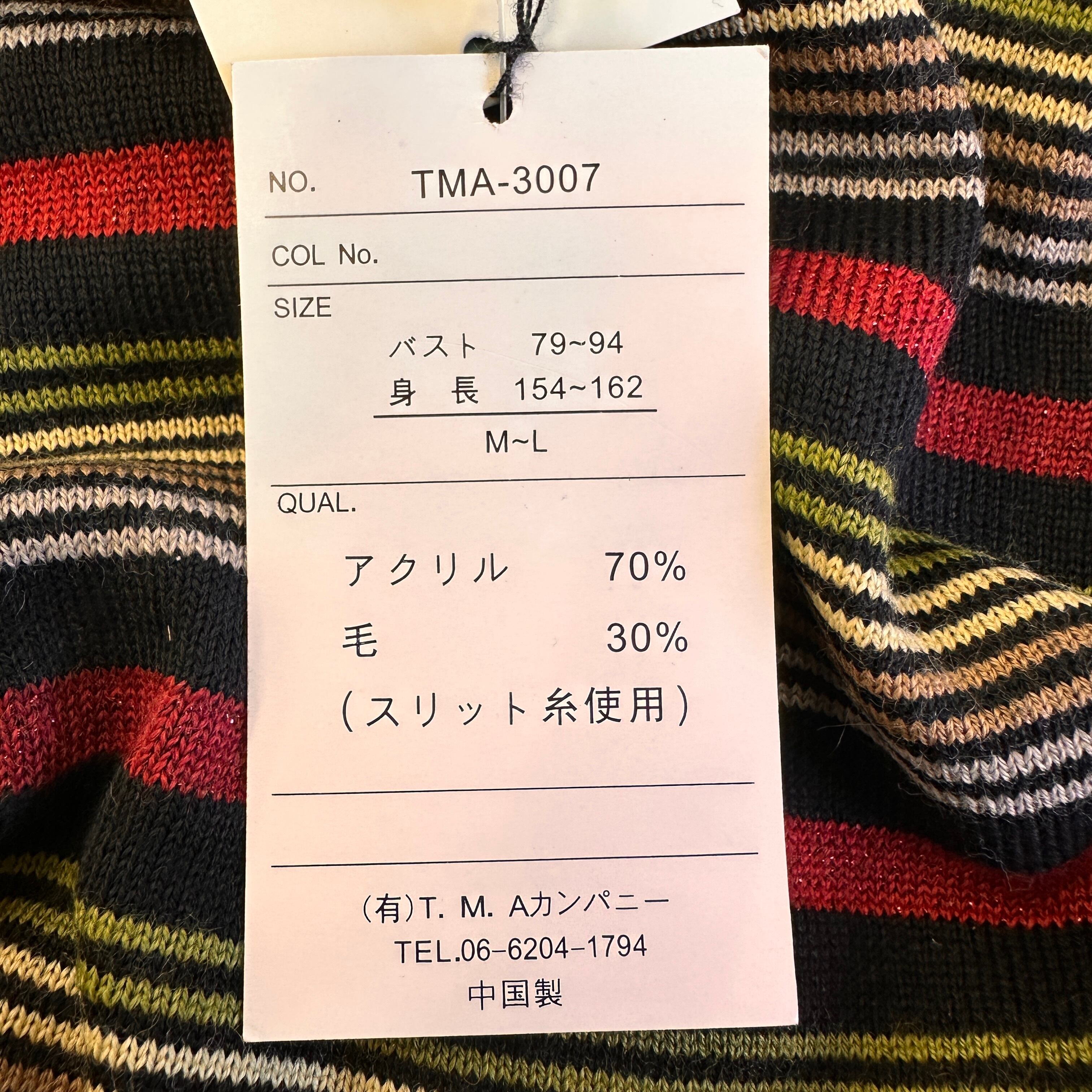 新品タグ付き T.M.A. イタリア糸使用 マルチボーダー ニット M~L モックネック/ハイネック