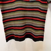 黒をベースに赤、黄色、カーキなどマルチカラーのボーダー柄が入っています。