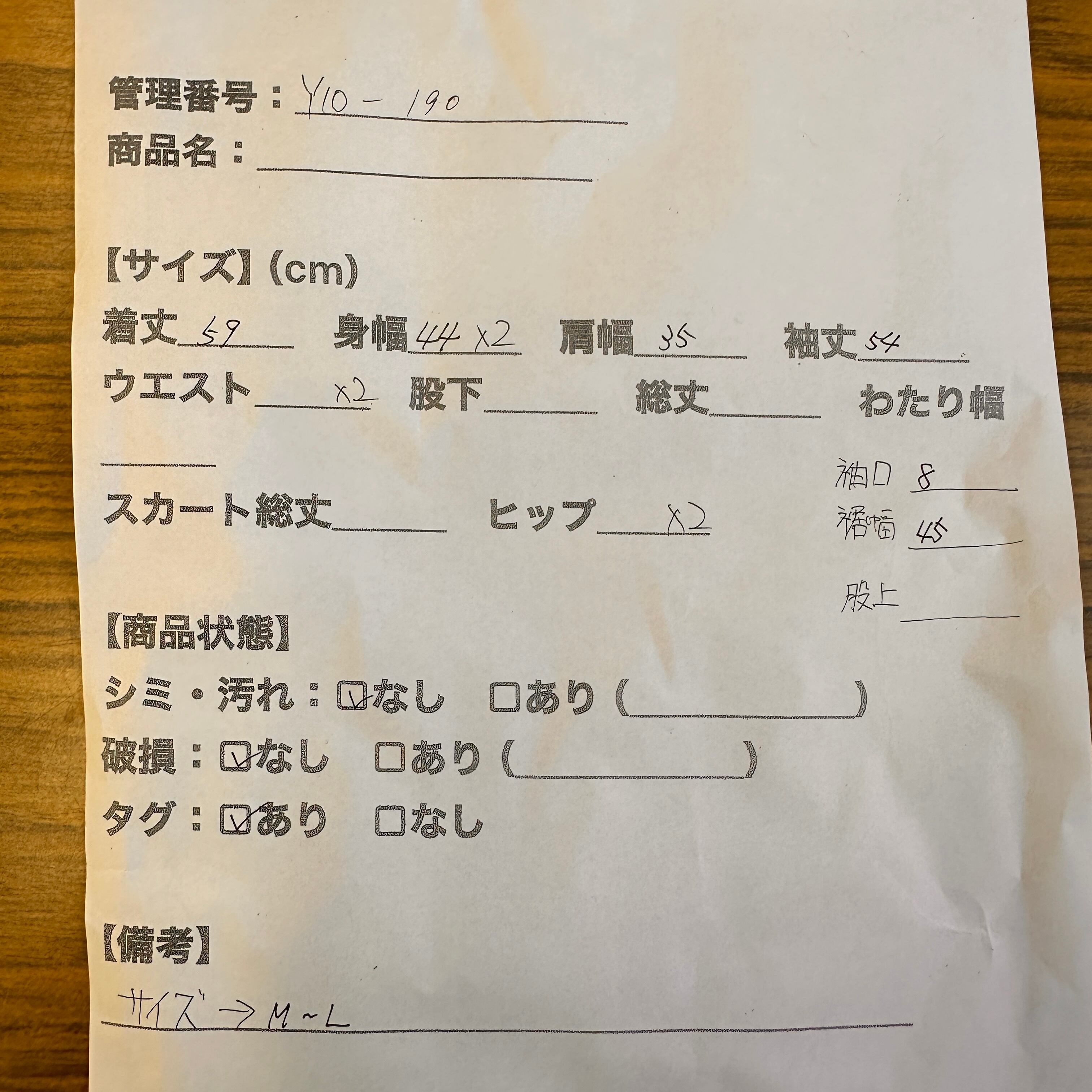 袖丈: 54