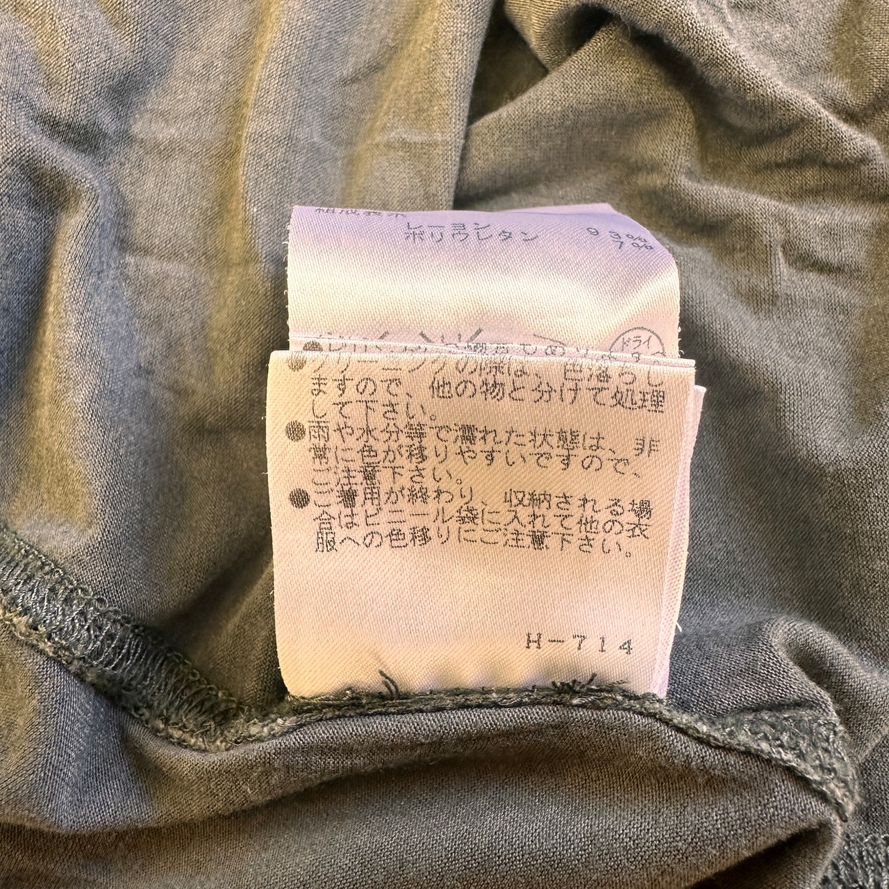 色は濃いチャコールグレーやカーキのような落ち着いた色味(タグにはCOL. 685と記載あり)です。